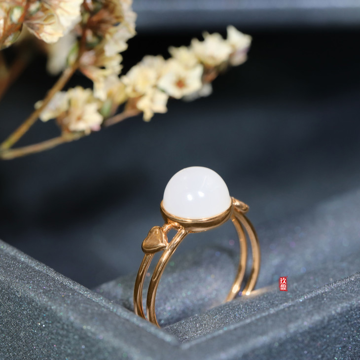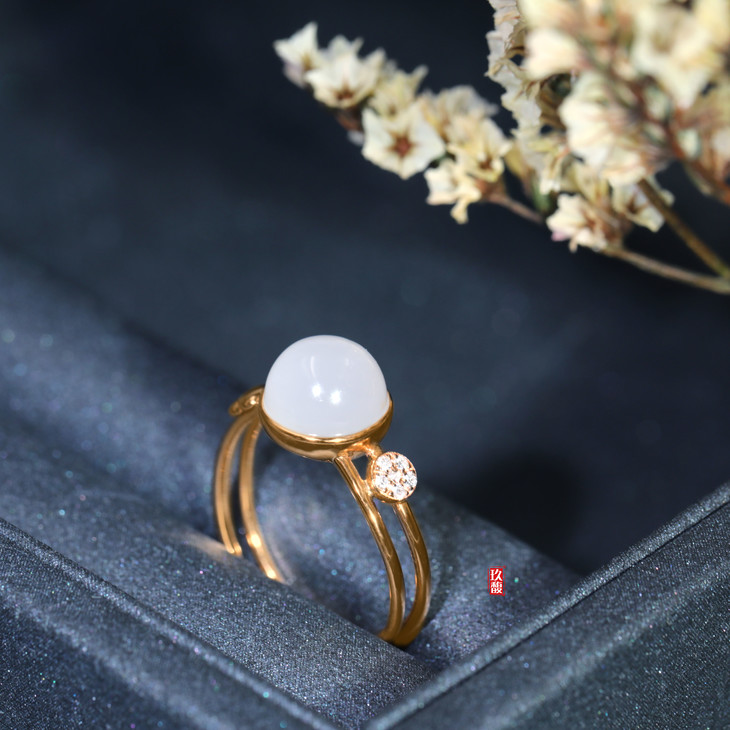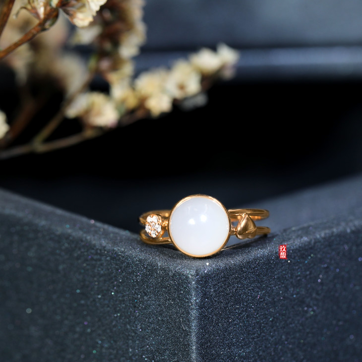 18K玫瑰金和田玉(白玉) 镶钻戒指