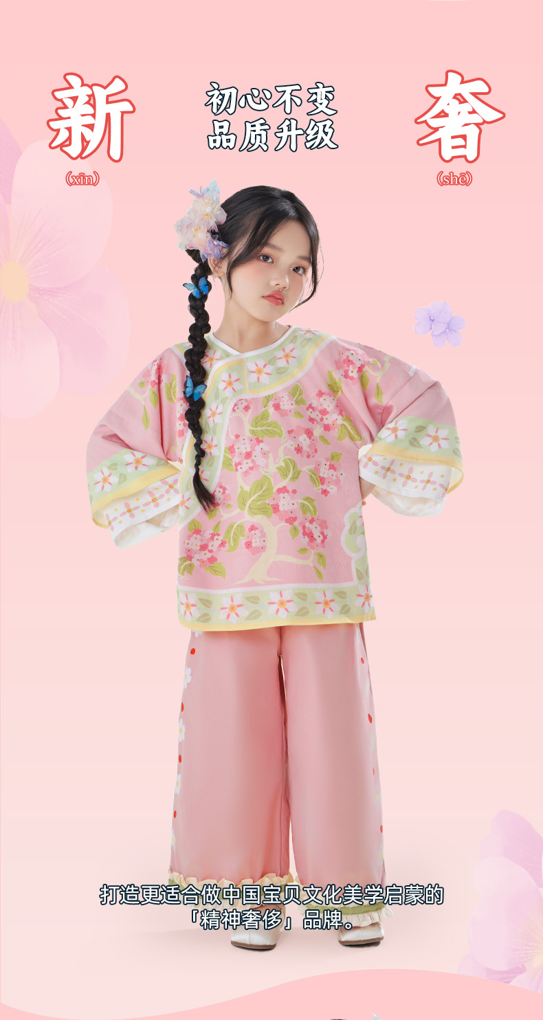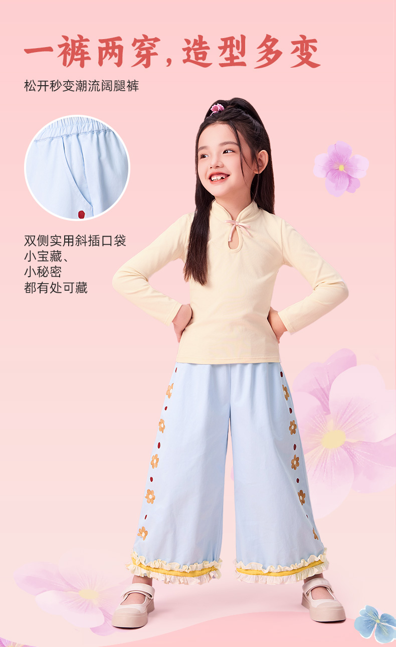 【年衣】童装女童长裤秋季新款儿童阔腿裤新中式国风甜美女孩休闲裤子花鼓隆咚长裤