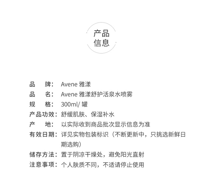 雅漾Avene 舒护活泉水喷雾300ml 双支装(2支装)