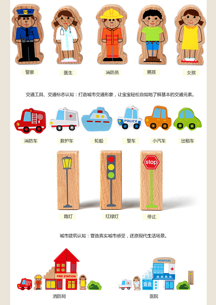 Hape大颗粒木质积木 生活趣味情景拼搭积木桶装早教玩具 E8029 125PCS城市情景积木