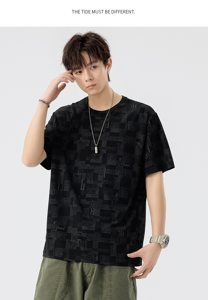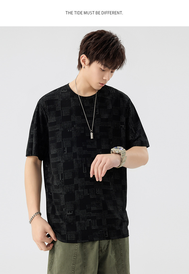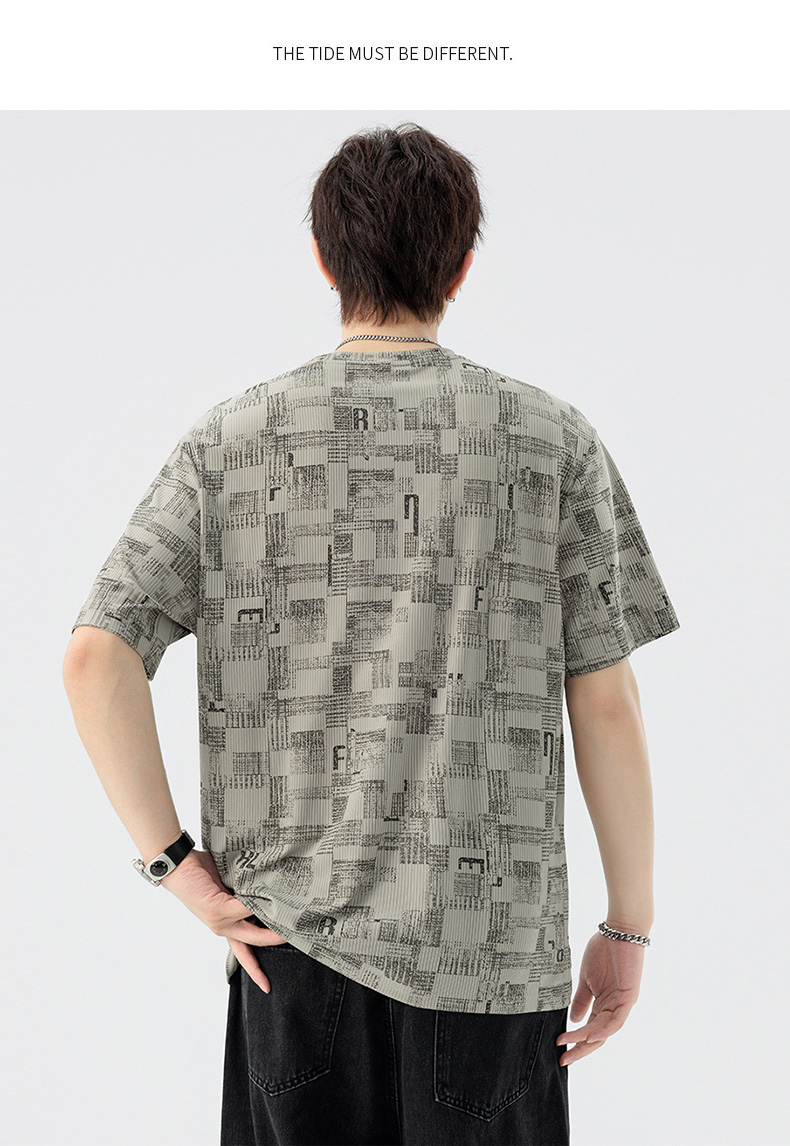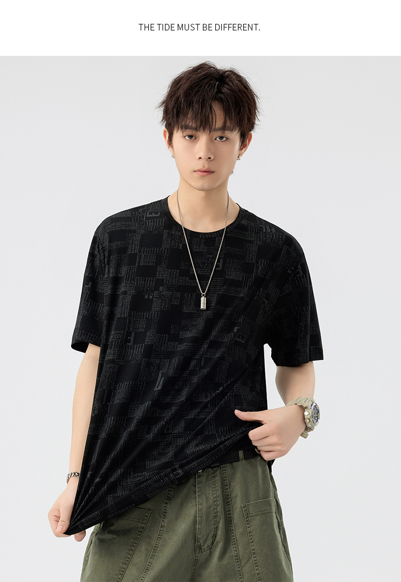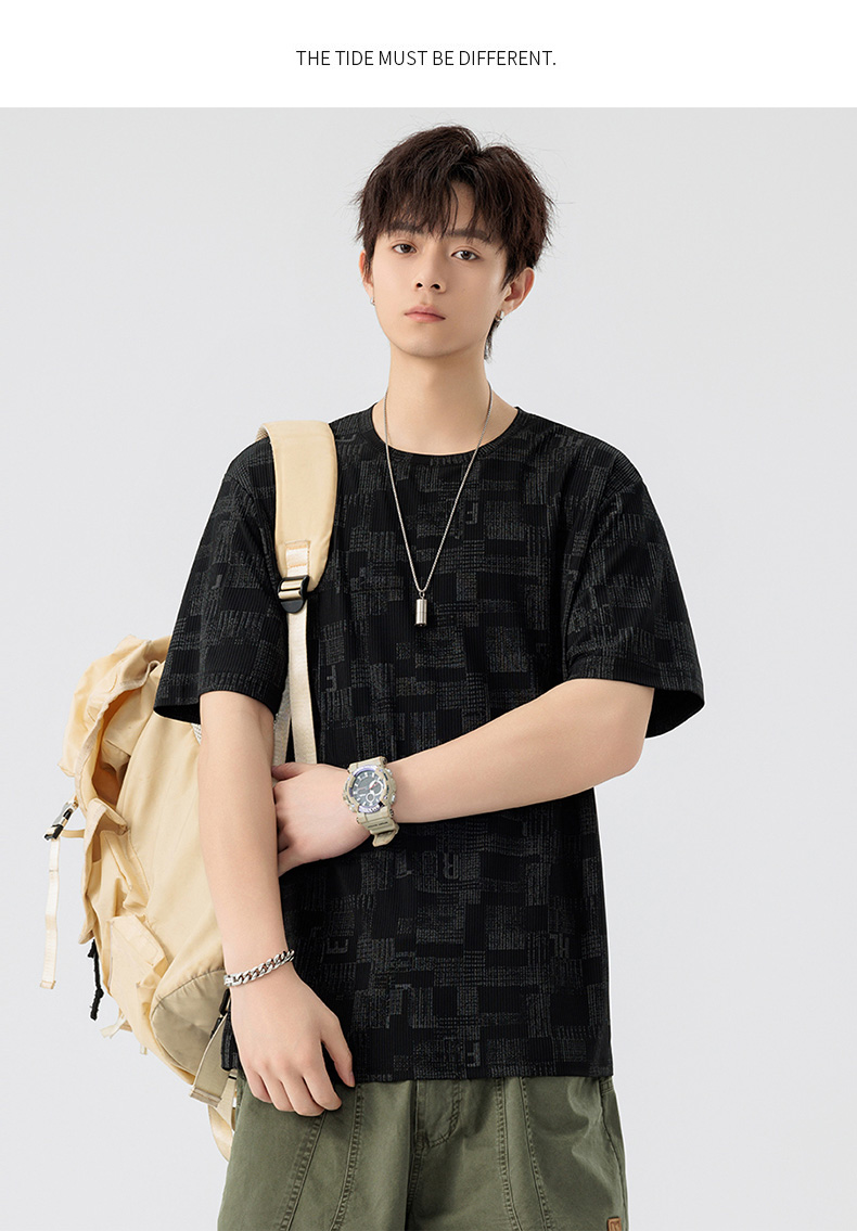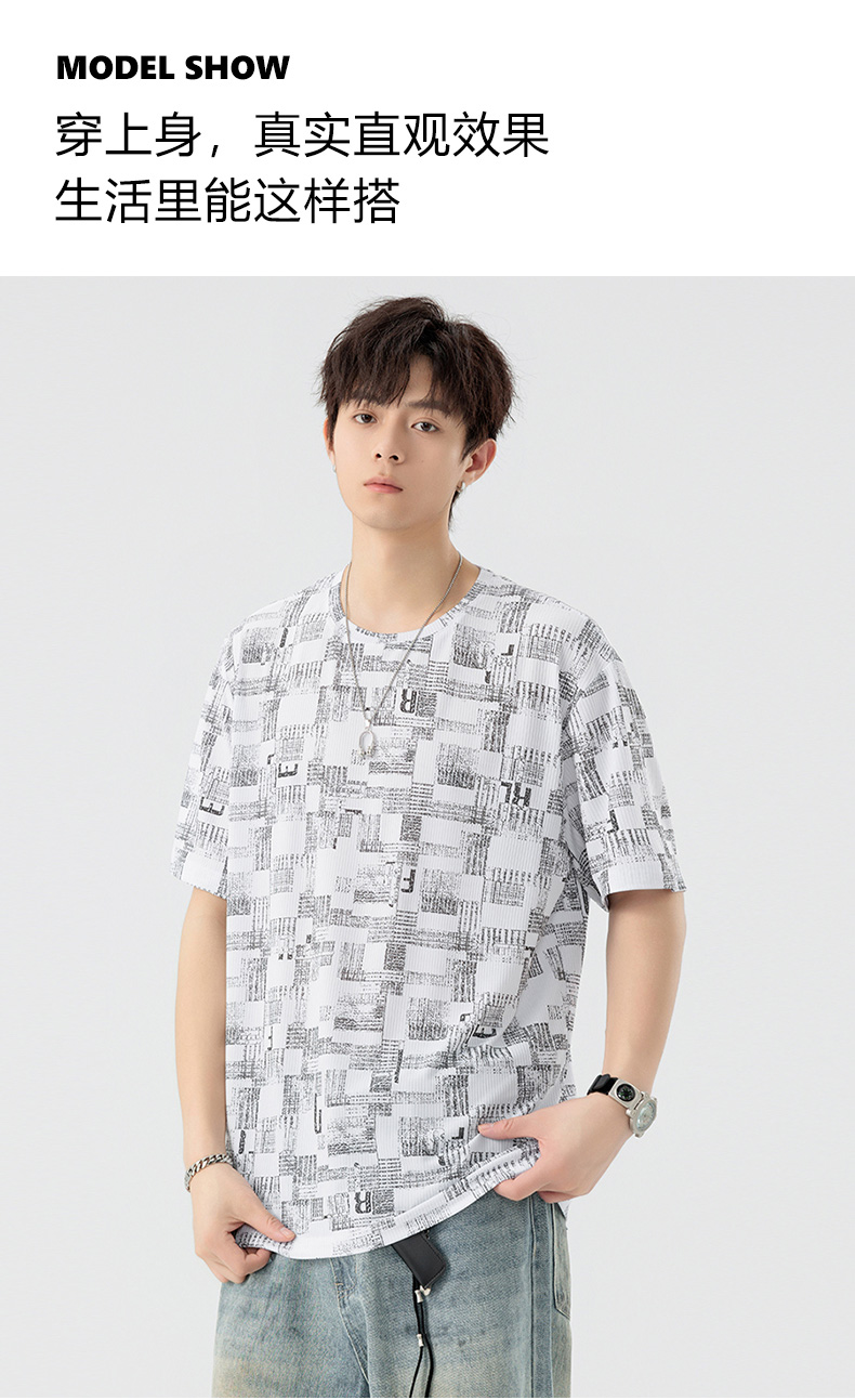 【DSL】大依优型大码圆领短袖T恤夏季加肥加大肥佬休闲宽松透气弹力男装上衣潮款 商品图8
