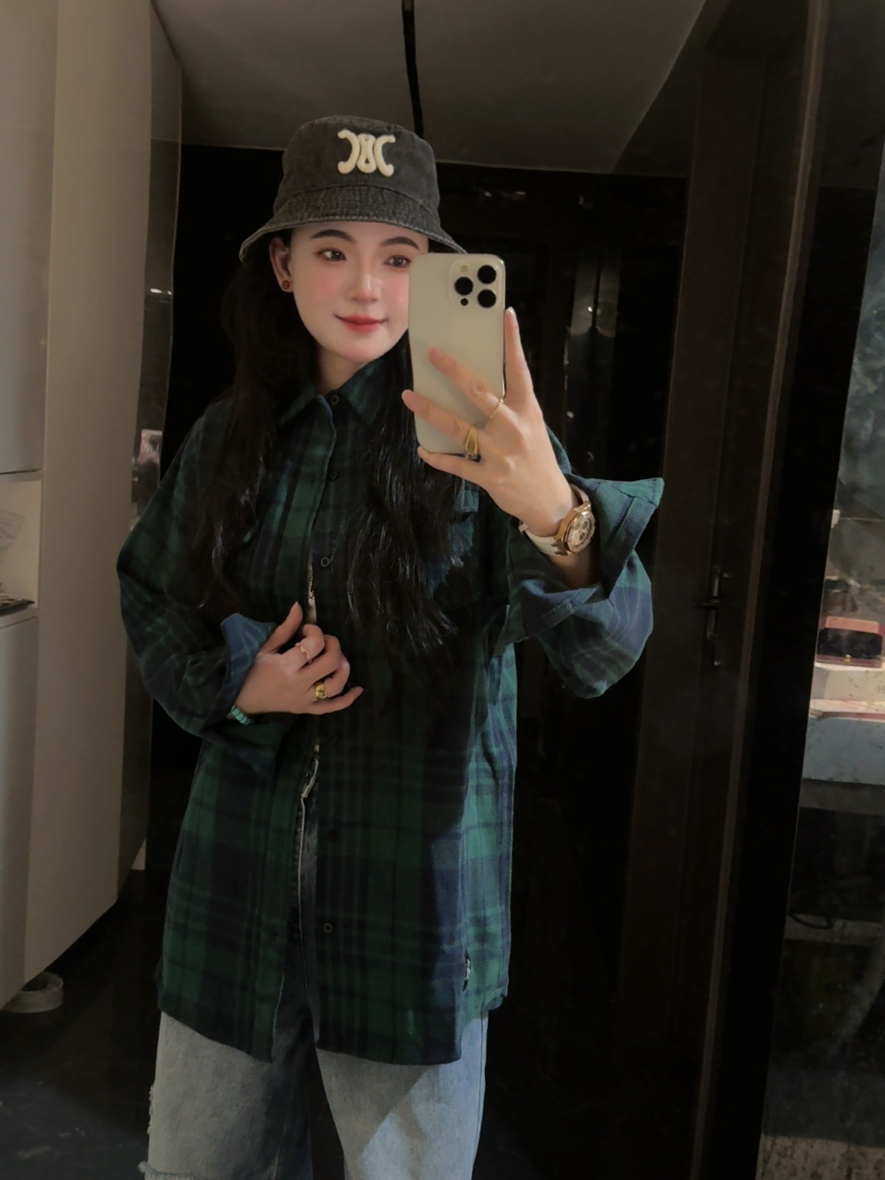 小众品牌纯原单‼️男女同款 🔥加厚磨毛巨巨巨高级的货!MED&IUM绿色格子衬衫 这款绿色格子衬衫,经典格纹+棉质涤纶,柔软又保暖,秋冬穿超合适!宽松版型+翻领+胸前口袋,实用又有型。绿色蓝色配色,文艺复古感满满,日系City Boy风轻松拿捏~可单穿or叠穿,通勤、休闲、户外都OK,搭配牛仔裤或工装裤,随性又有细节感,是潮流穿搭必备单品!吊牌可以扫码进官网🔥