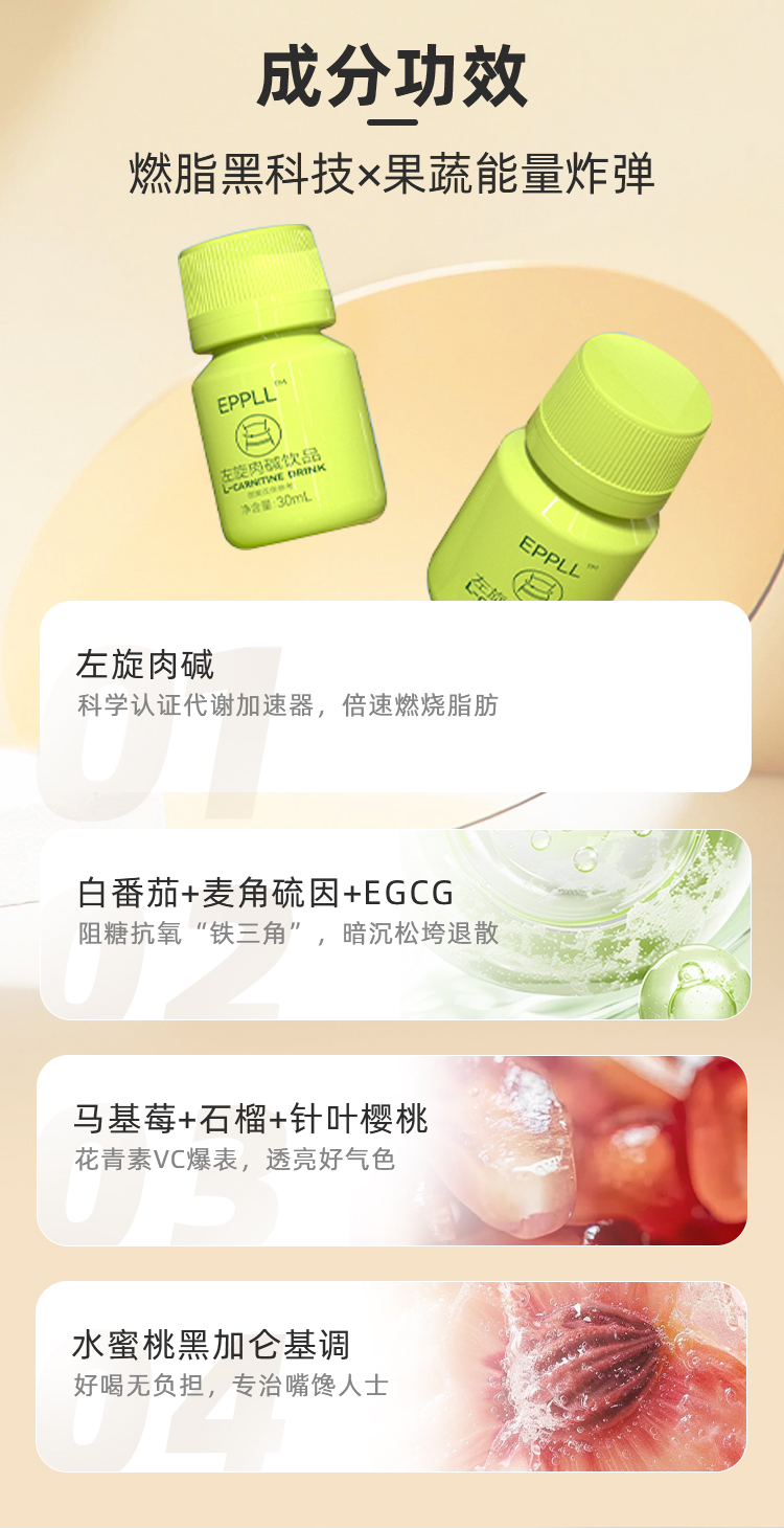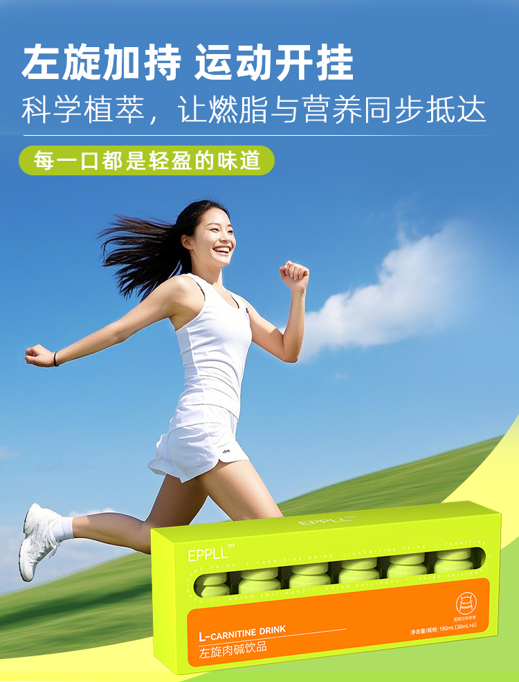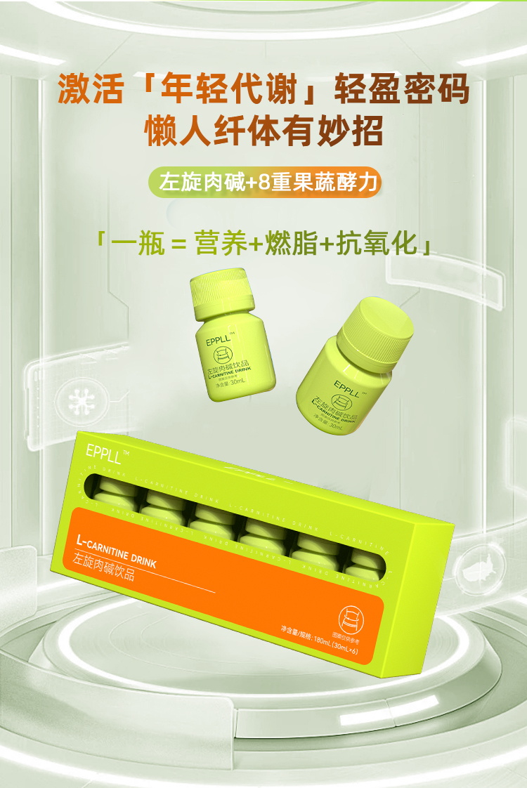 EPPLL 左旋肉碱饮品 30ml*6支 左旋肉碱+8重果蔬酵力,每一口都是轻盈的味道