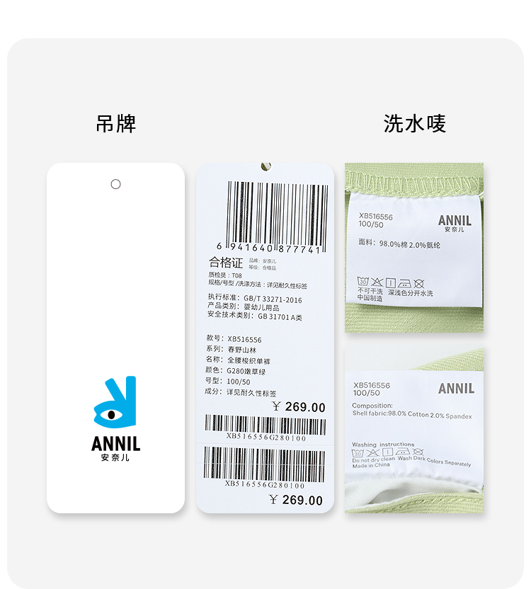 男童全腰梭织单裤春季新款安奈儿童装实体店同款XB516556