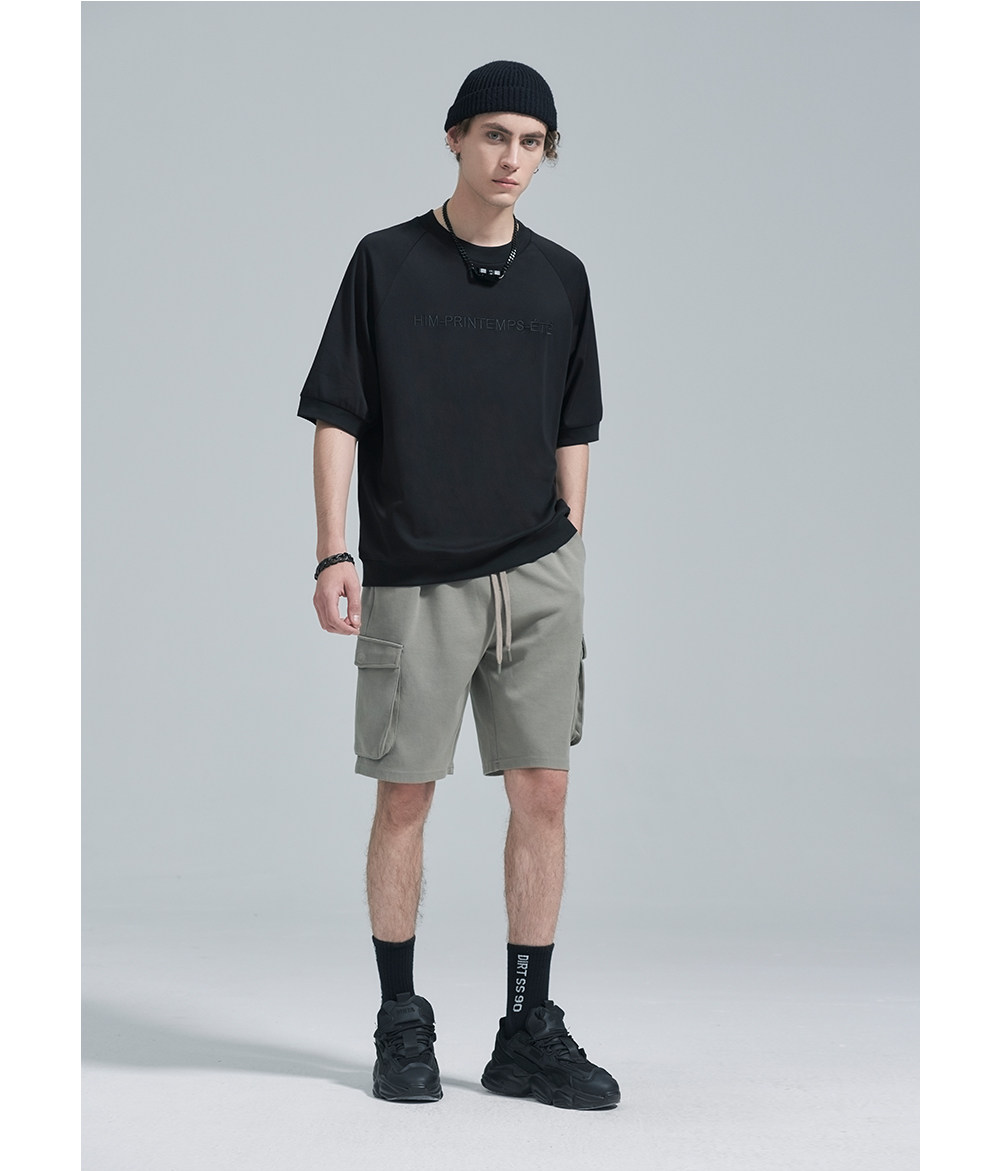 HIM漢崇 简约压印休闲短裤男士舒适透气直筒运动五分裤 2026夏季