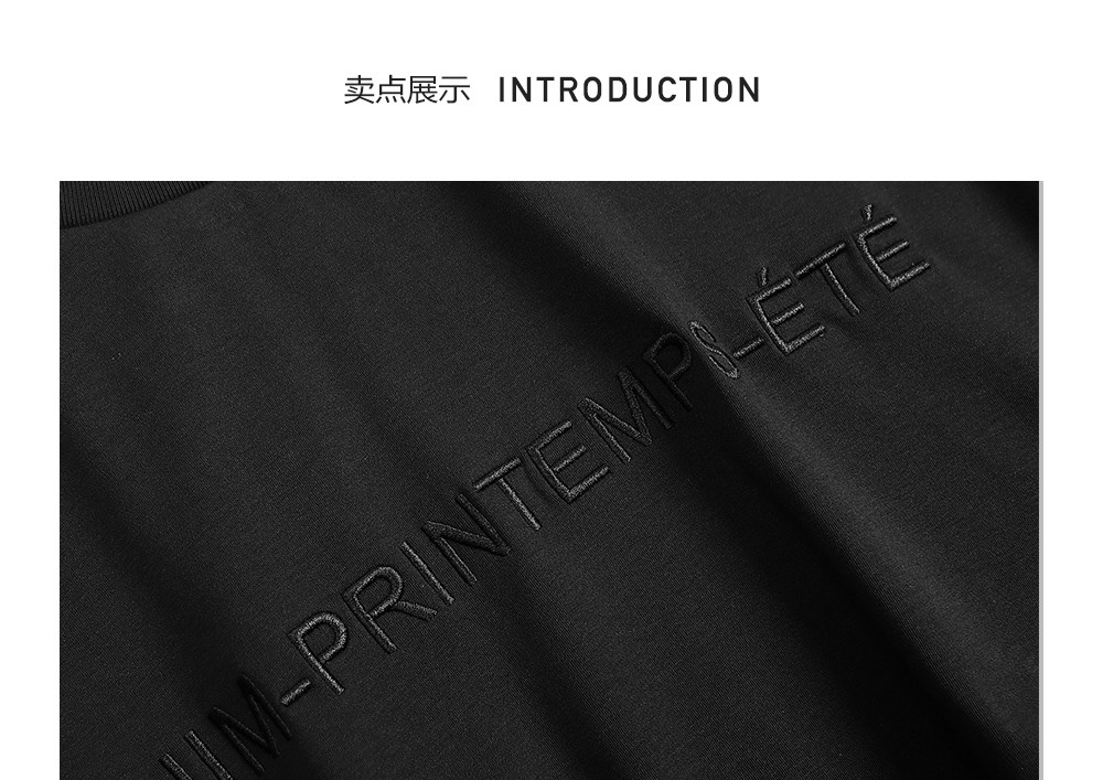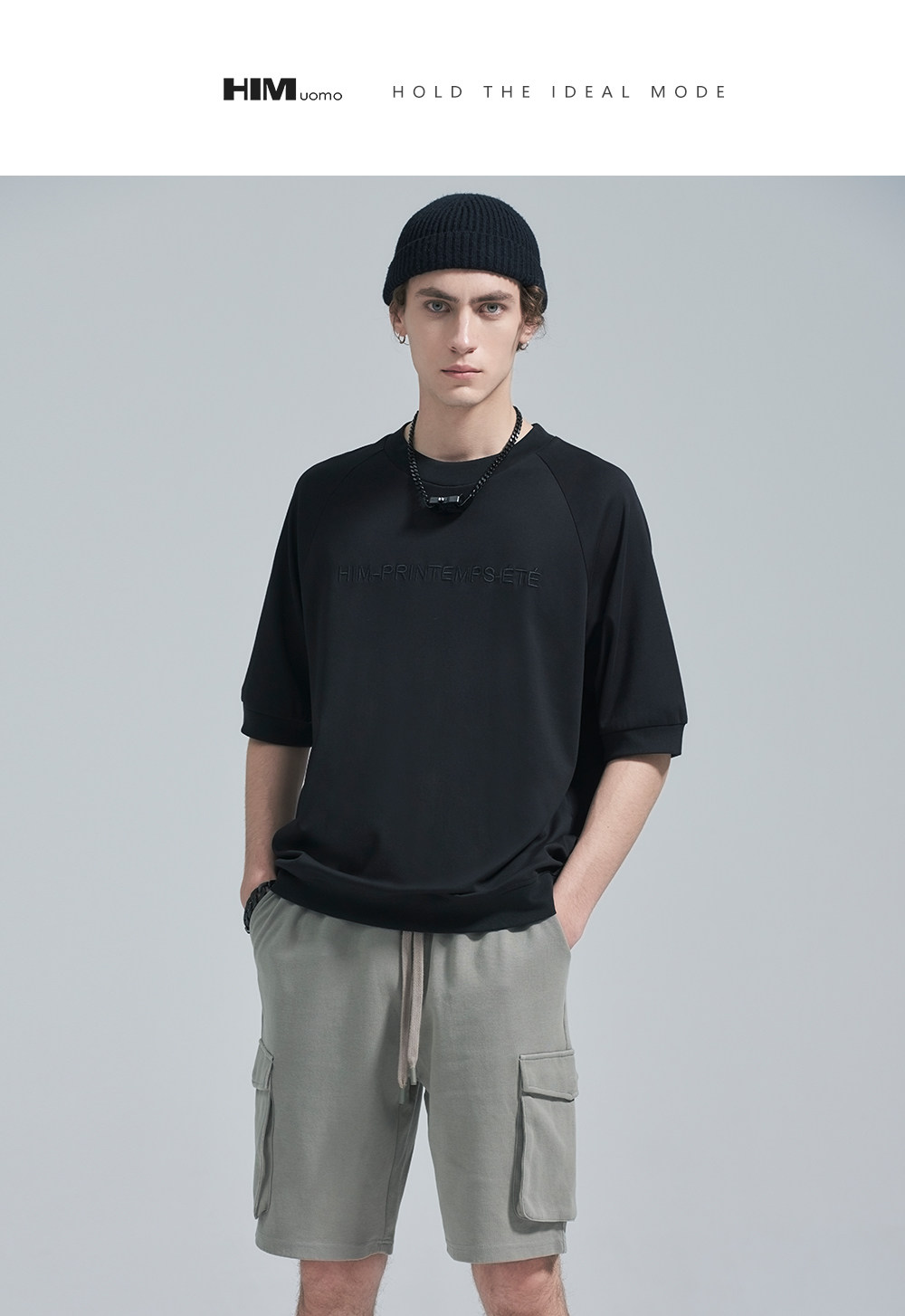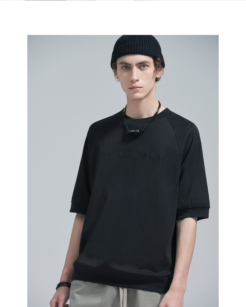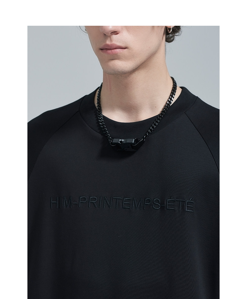 HIM漢崇 丝光线绣花卫衣男休闲宽松插肩袖圆领短袖T恤 2024夏季