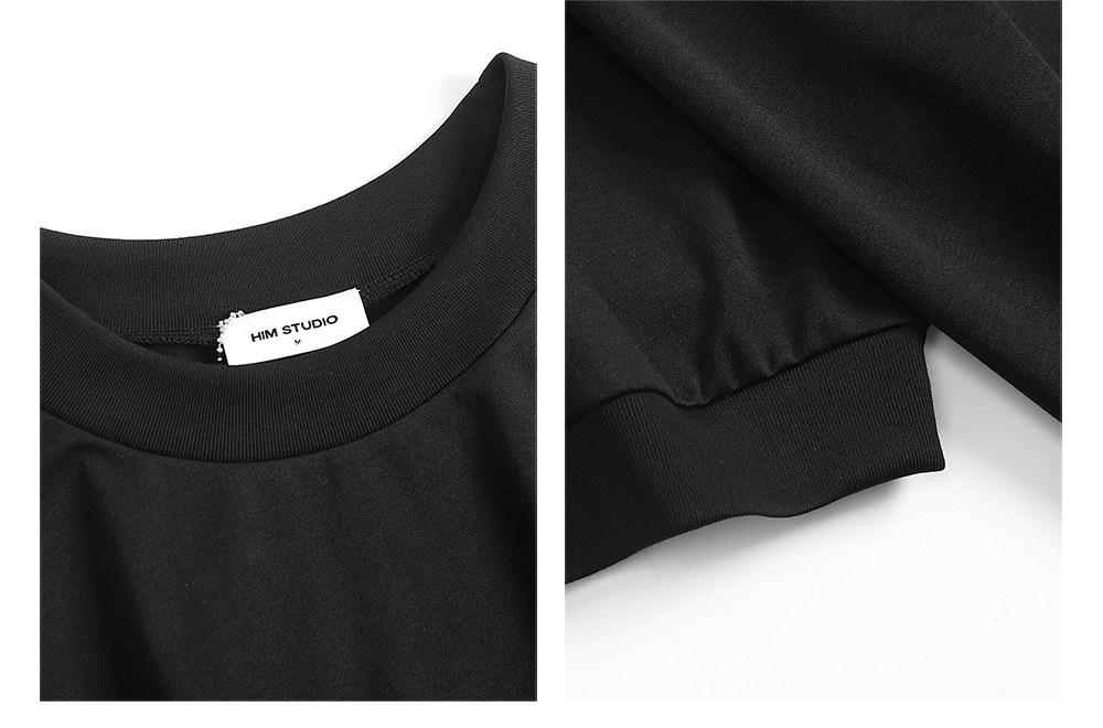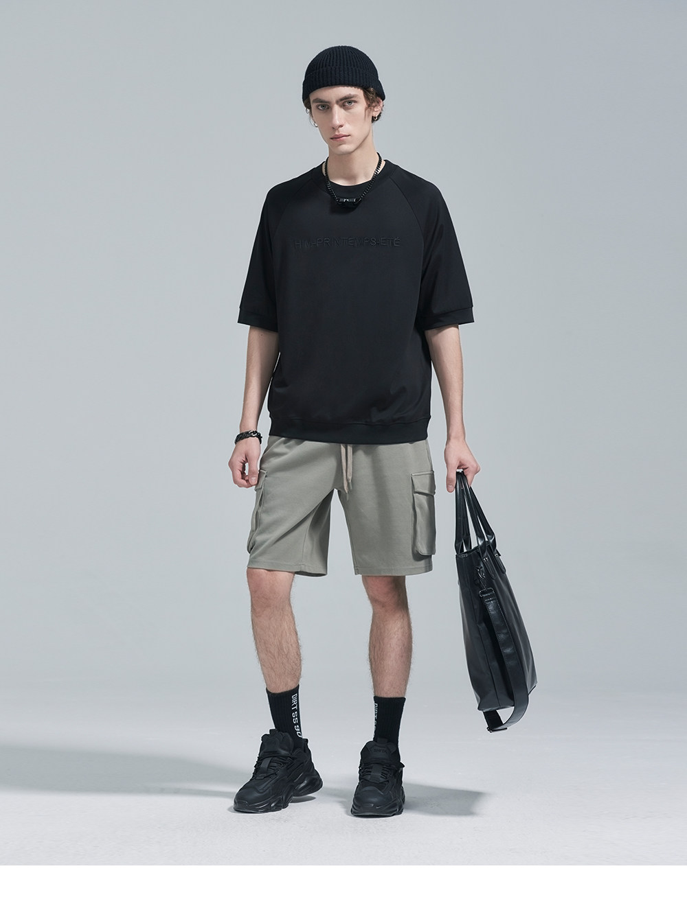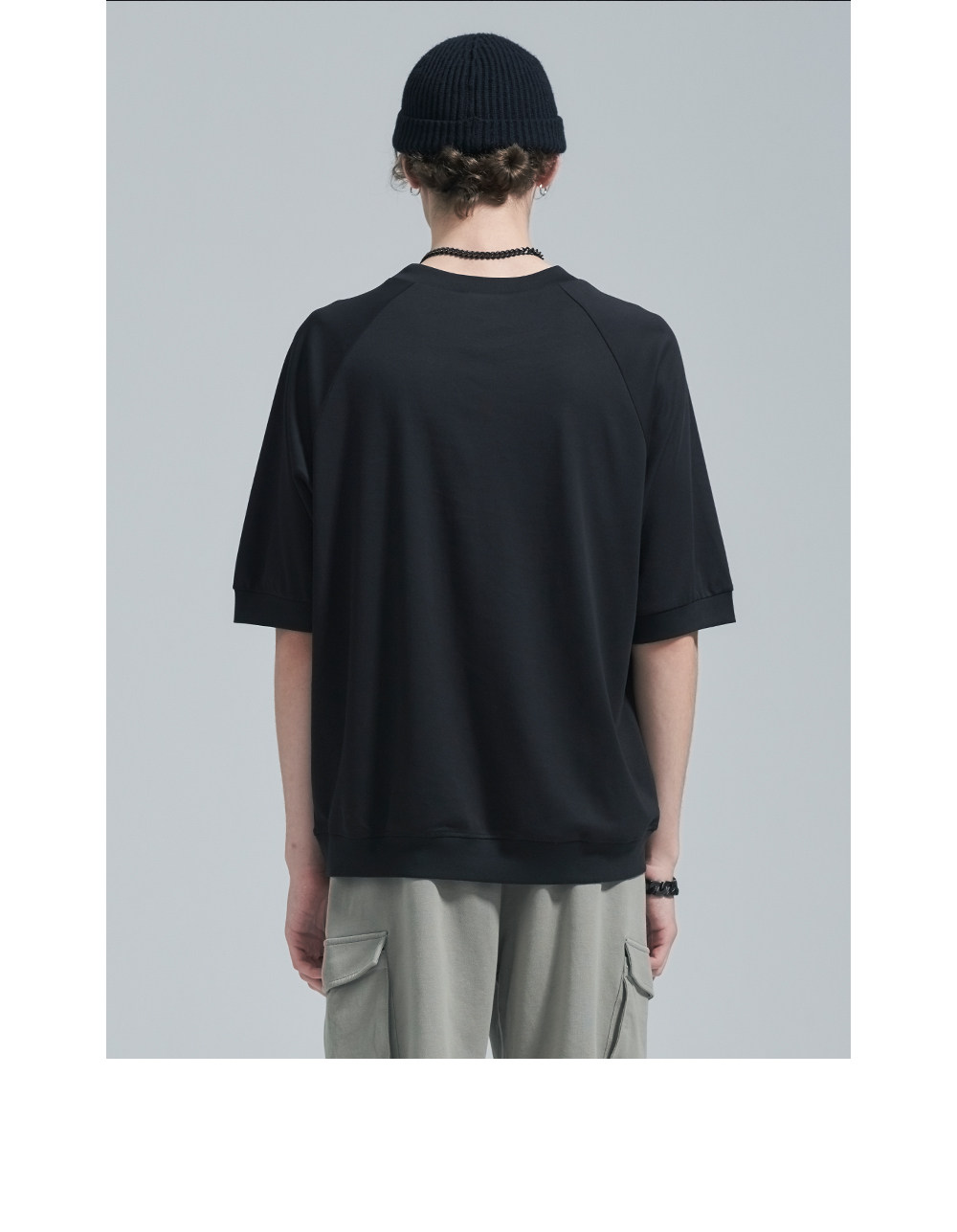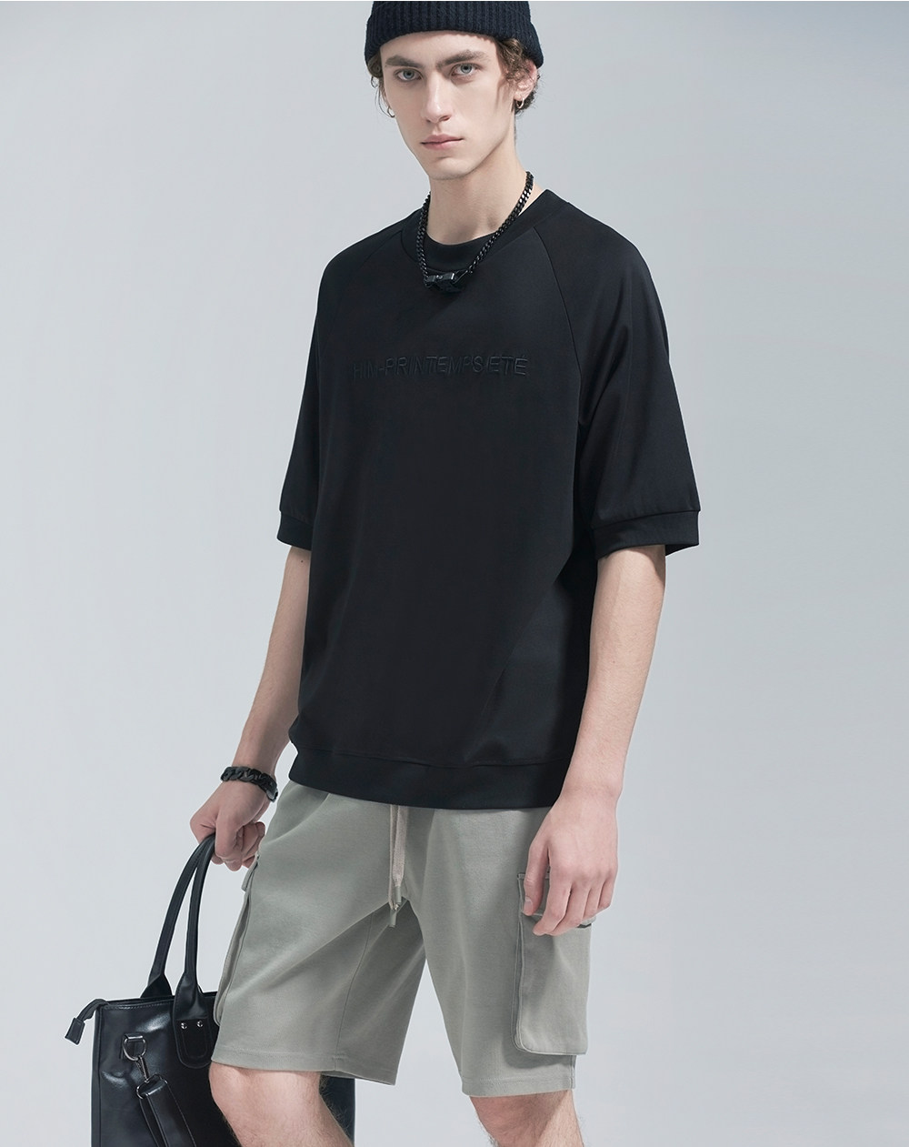 HIM漢崇 丝光线绣花卫衣男休闲宽松插肩袖圆领短袖T恤 2024夏季