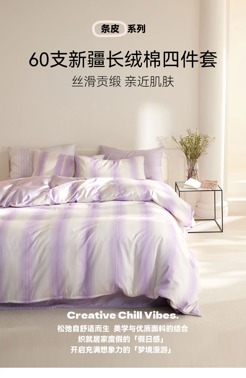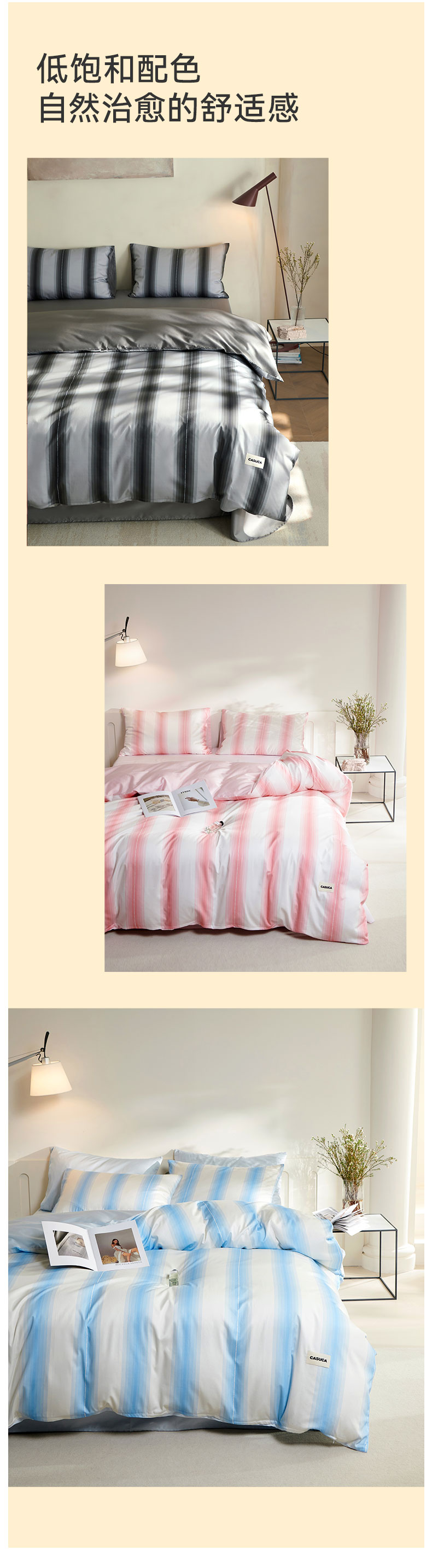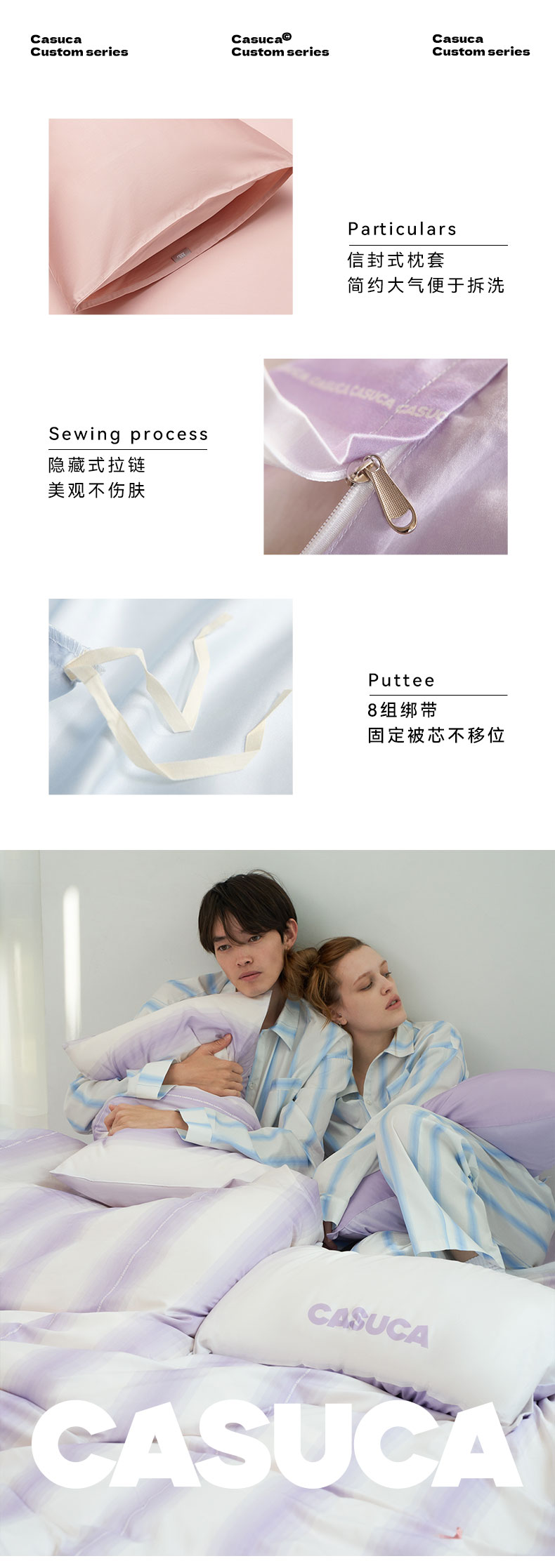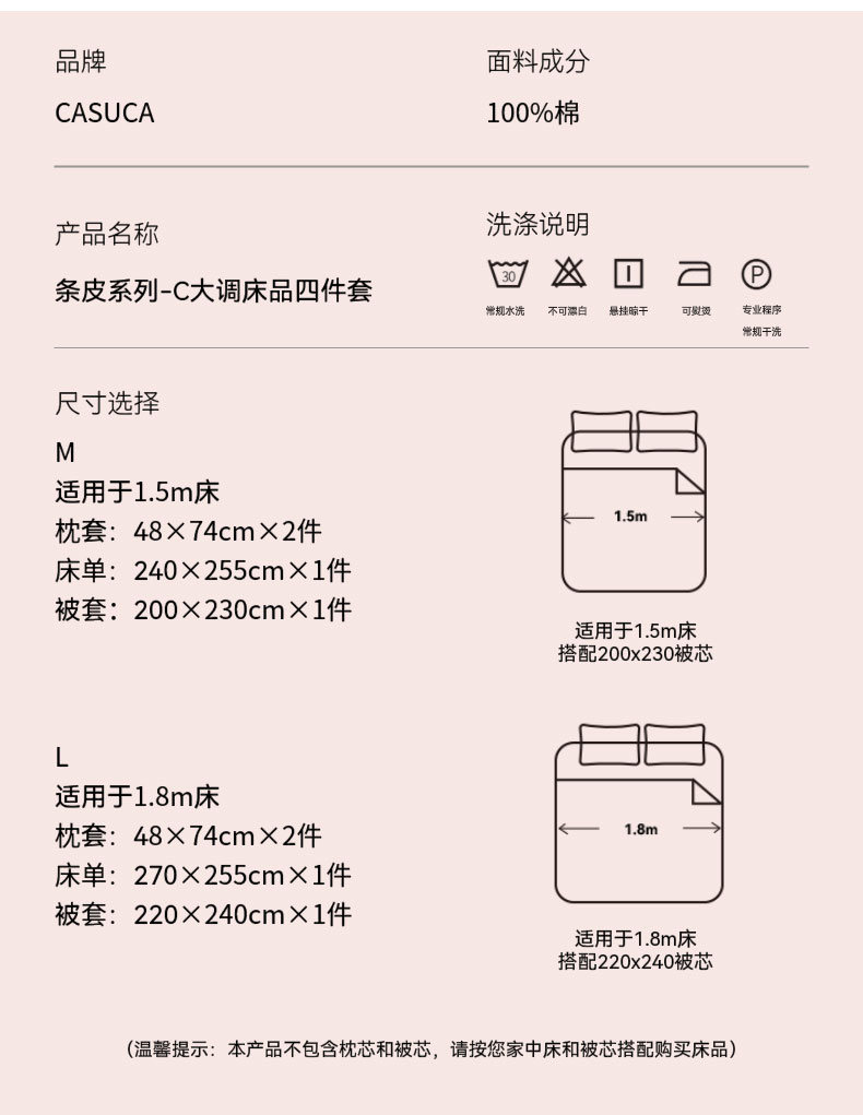 CASUCA C大调床品全棉纯棉春夏季纯色被套床单条纹四件套