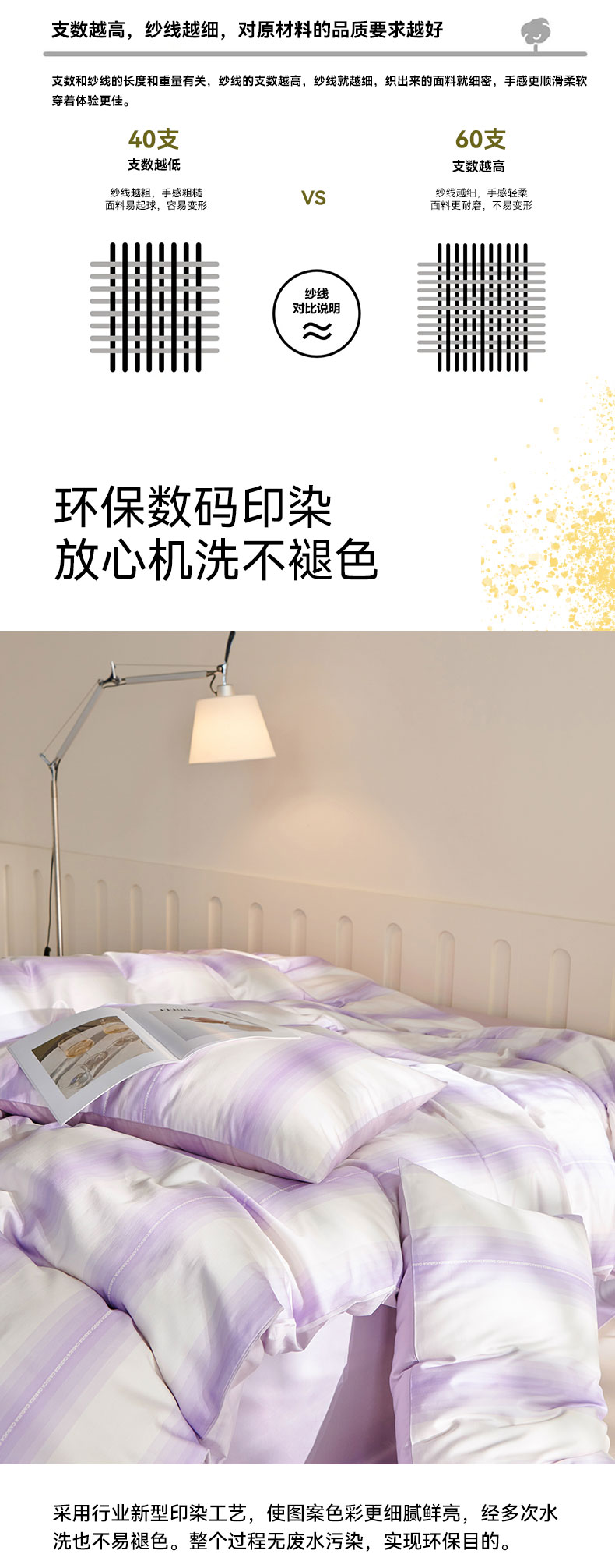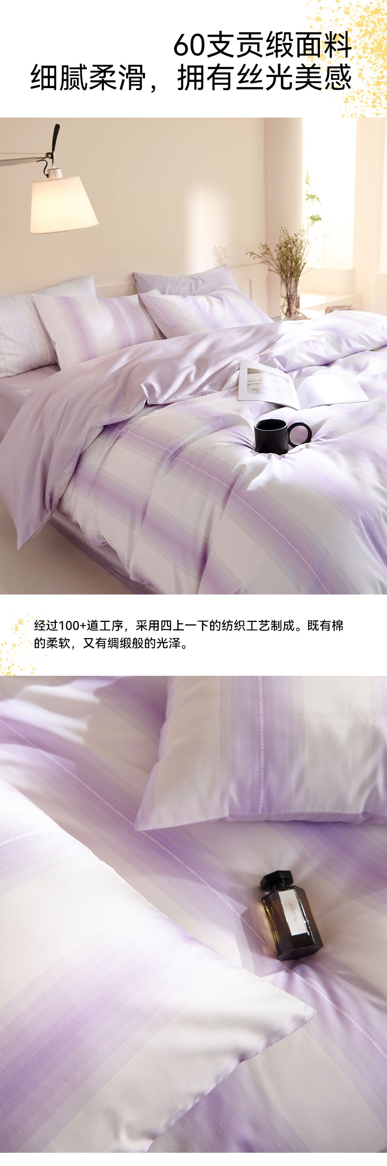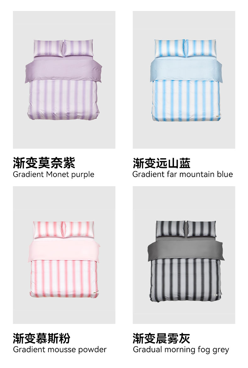 CASUCA C大调床品全棉纯棉春夏季纯色被套床单条纹四件套