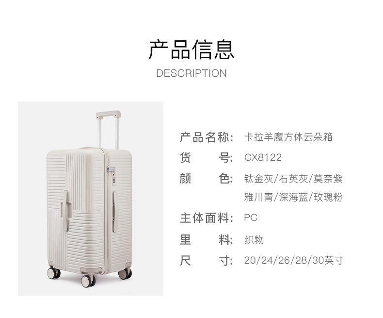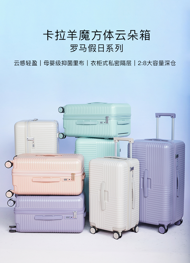 卡拉羊魔方体云朵箱纯PC防刮抗摔行李箱 罗马假日CX8122