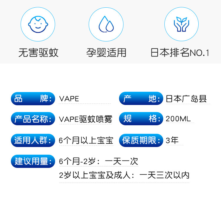【长效驱蚊孕婴适用】日本未来VAPE驱蚊喷雾宝宝防蚊液婴儿防蚊虫叮咬儿童驱蚊神器便携