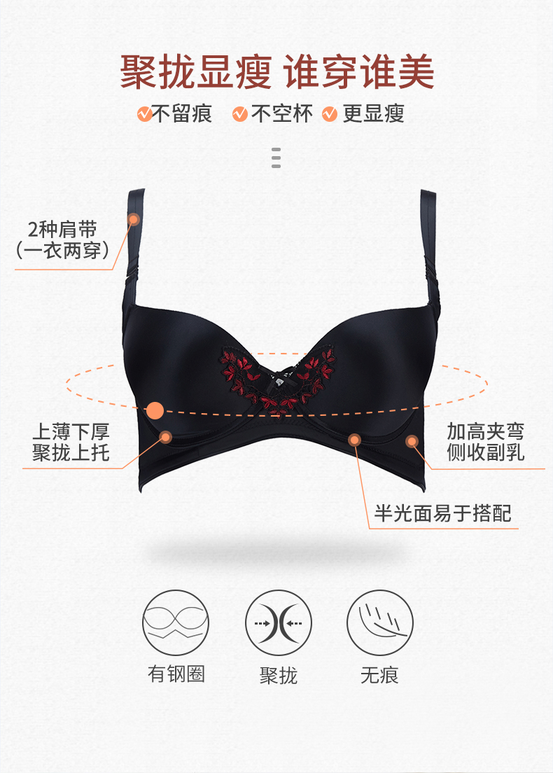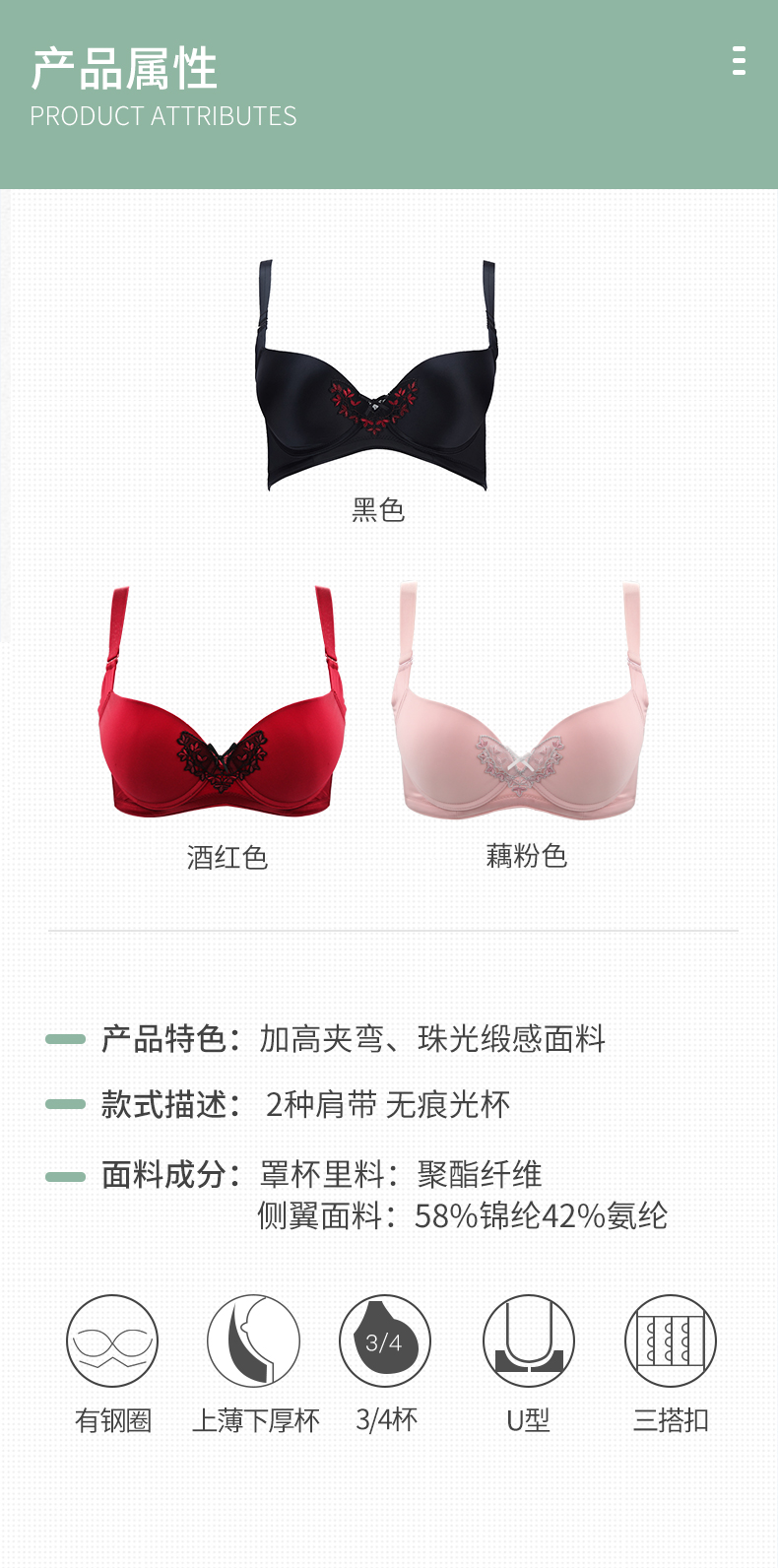 贝佳人新品珠光缎面优雅女士文胸上薄下厚小胸聚拢提升内衣BW91706