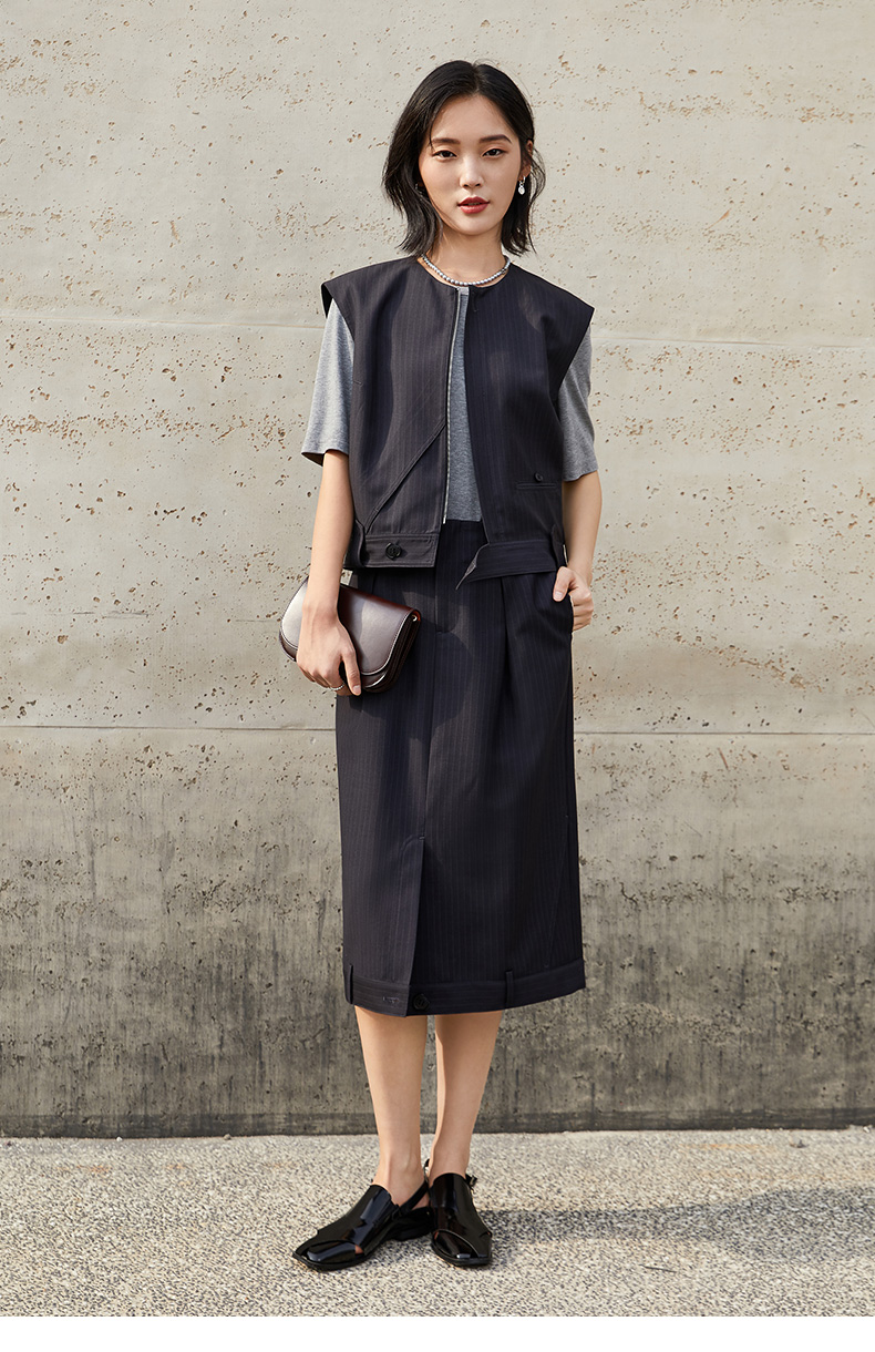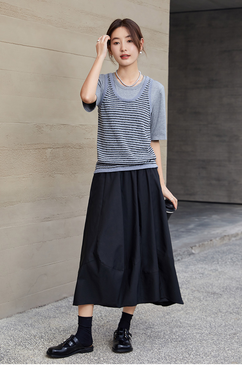 学院风假两件条纹针织衫 背心拼接短袖设计 复古减龄显瘦上衣