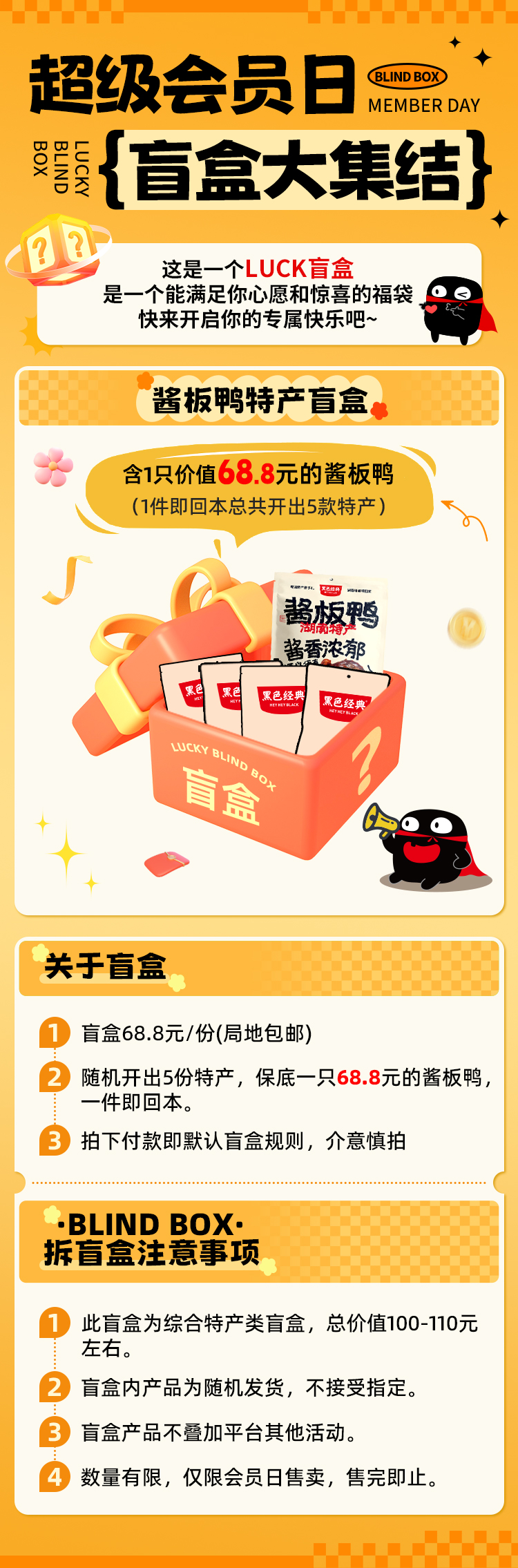 【盲盒】会员日超值酱板鸭盲盒(内含至少1只价值68.8的酱板鸭)