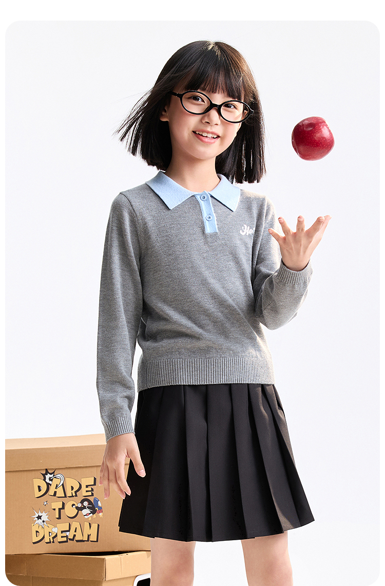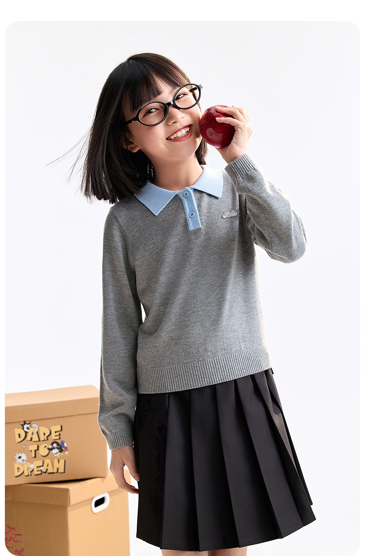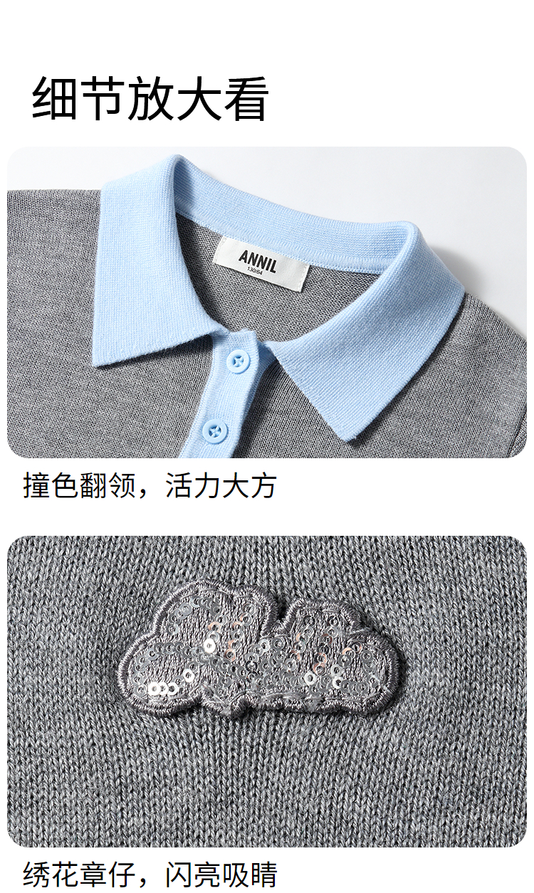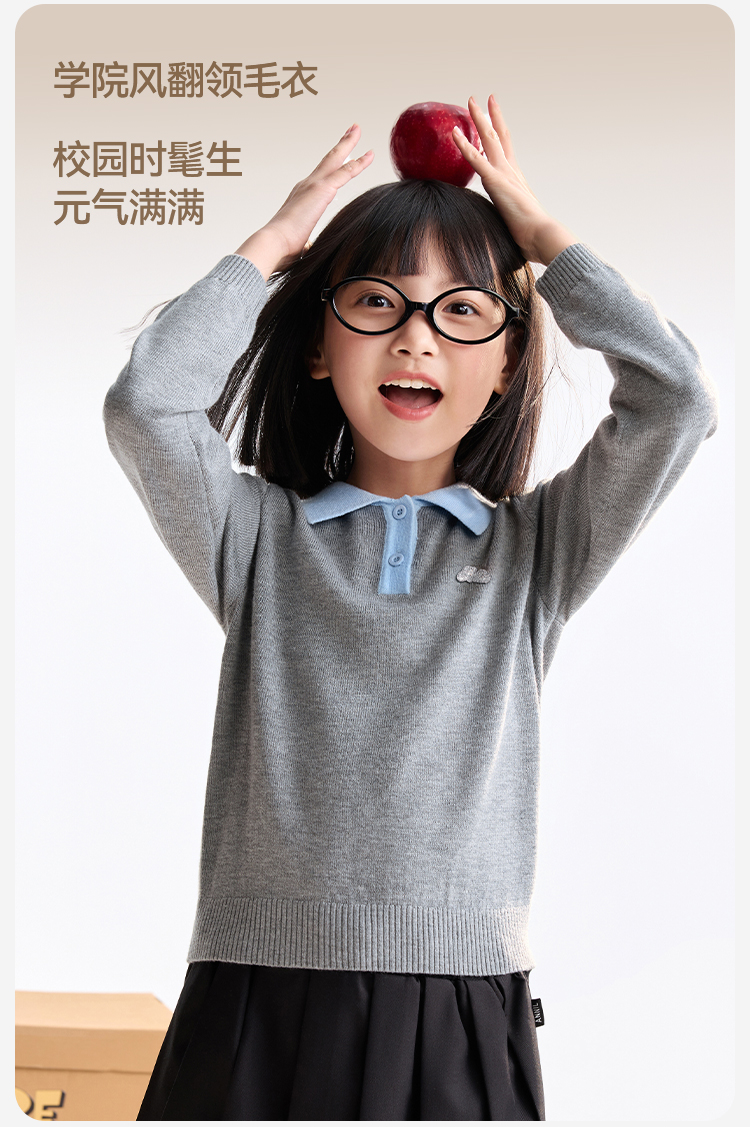 【含羊毛/学院风毛衫】女童翻领长袖针织衫冬季新款安奈儿童装EG544536