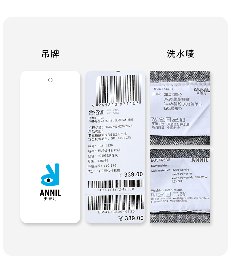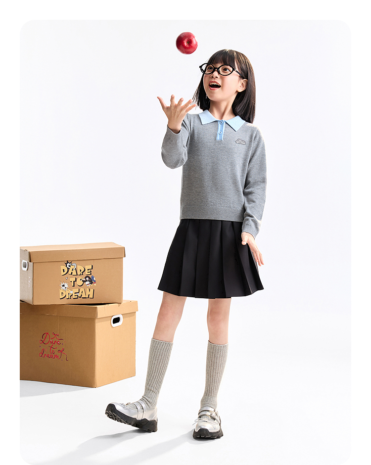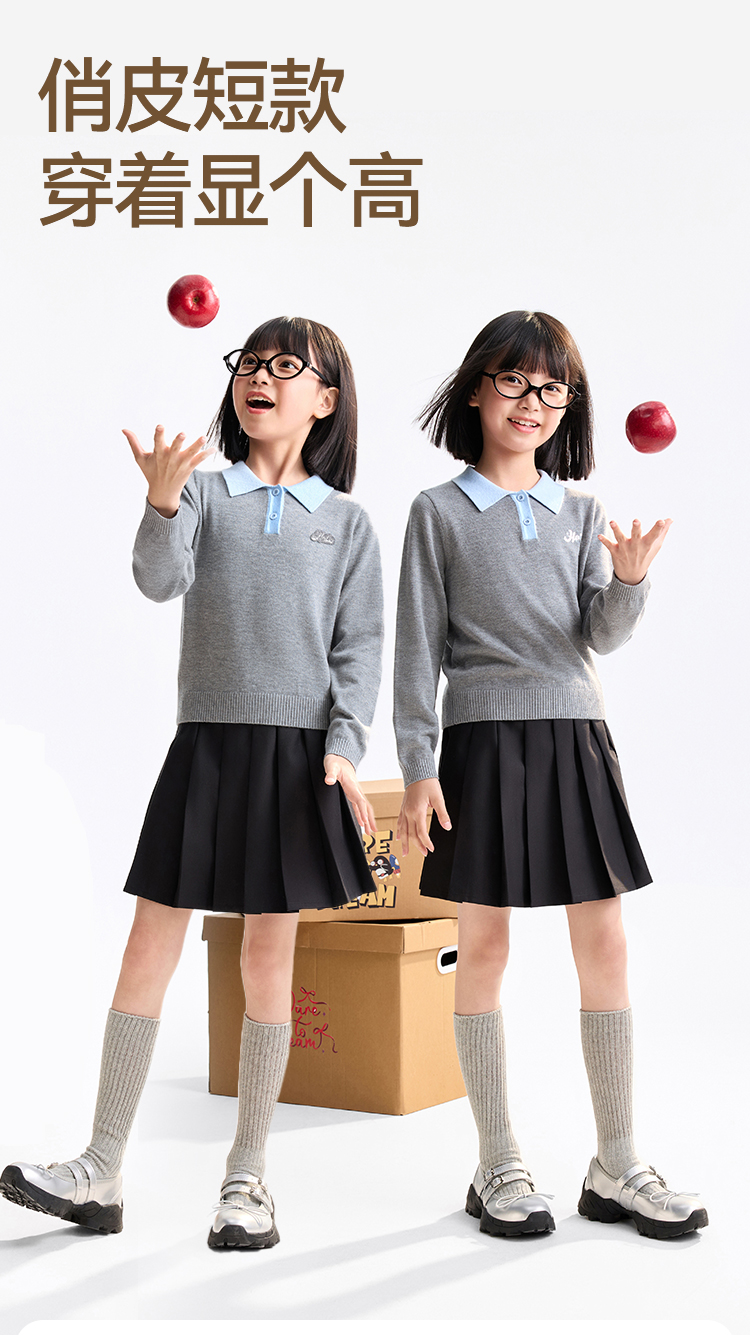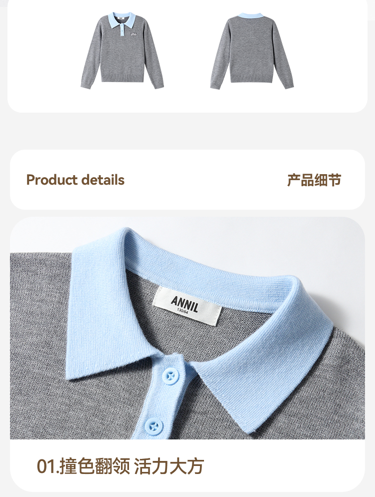 【含羊毛/学院风毛衫】女童翻领长袖针织衫冬季新款安奈儿童装EG544536