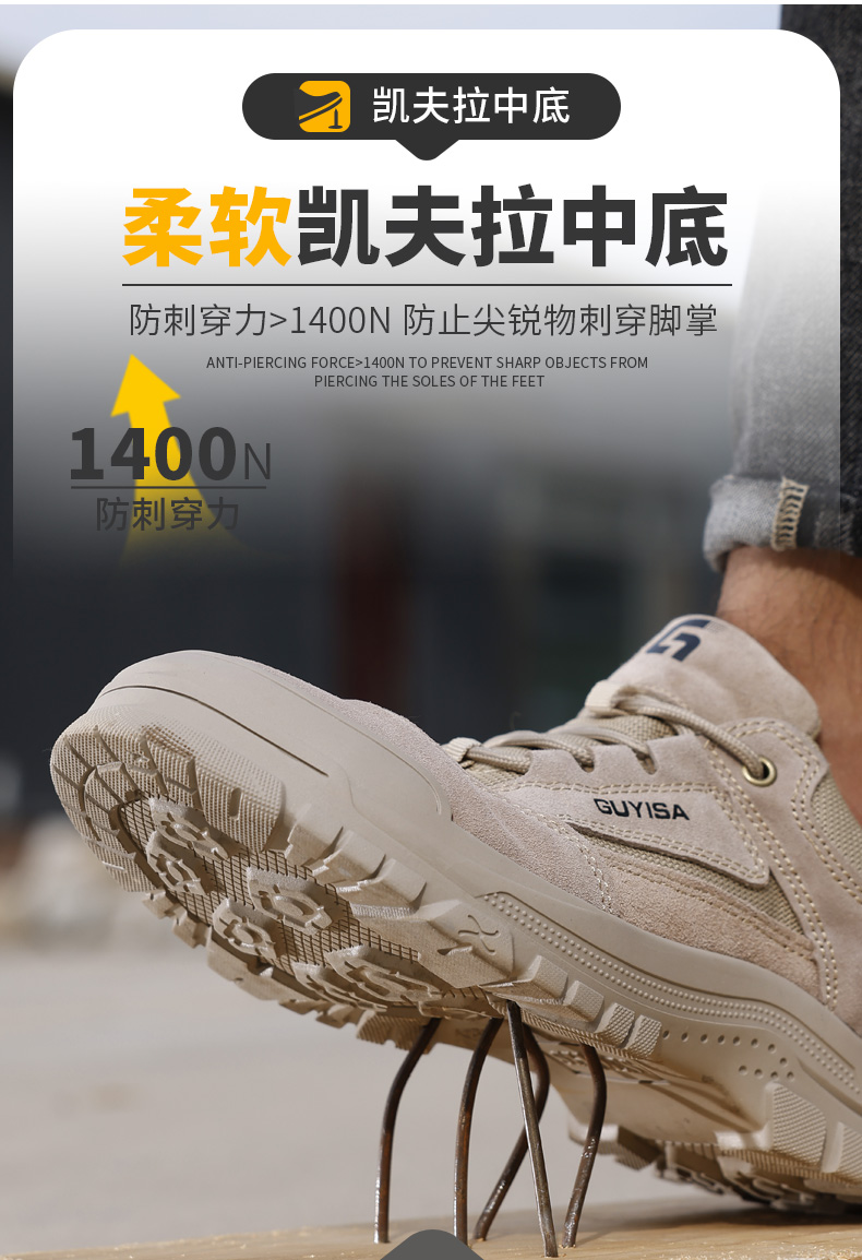 劳保鞋男防砸防刺安全鞋橡胶底四季款钢包头工作鞋