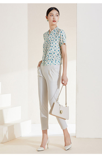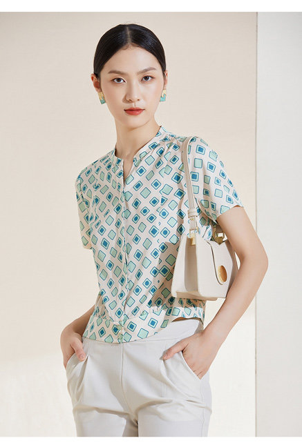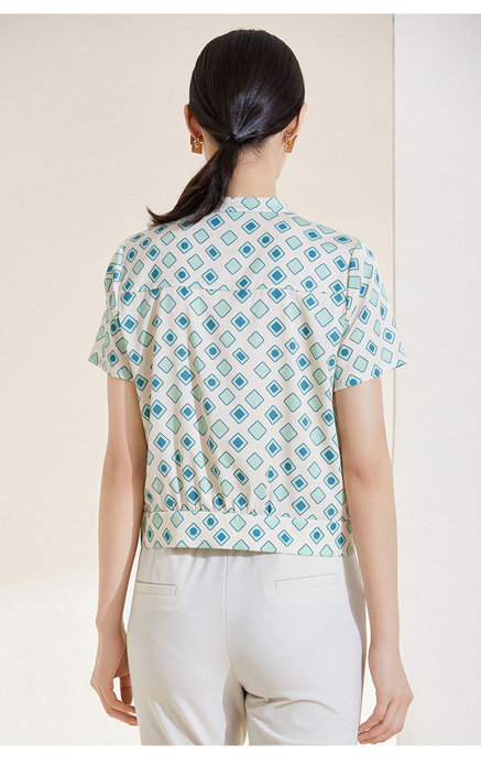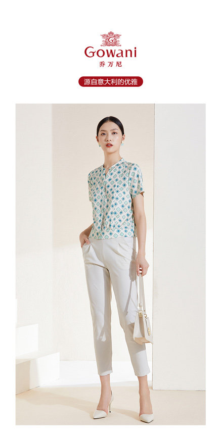 乔万尼夏季新款真丝衬衫V领设计短款衬衣EI2C809