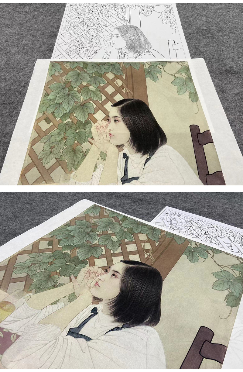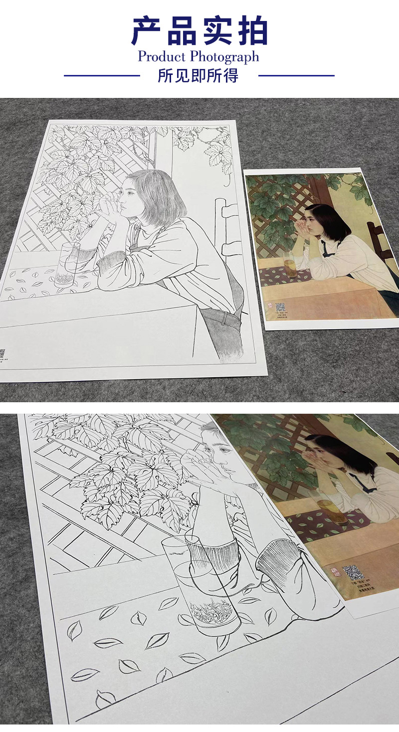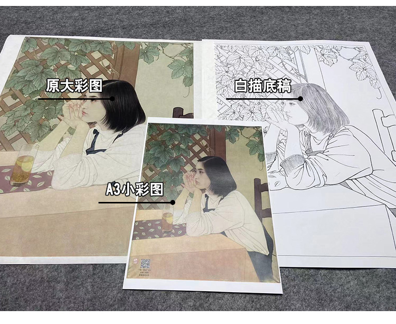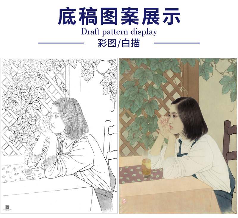 【大彩图】何家英工笔画白描底稿《心语》高清打印稿人物线稿ZV21