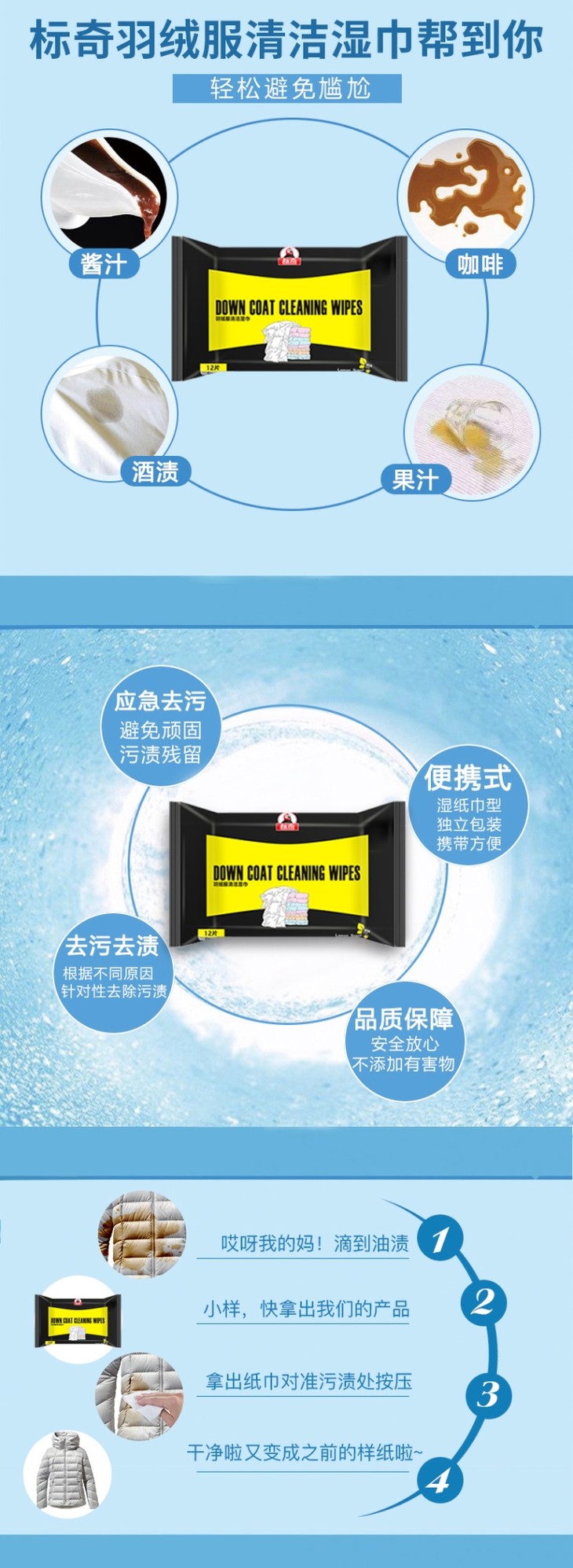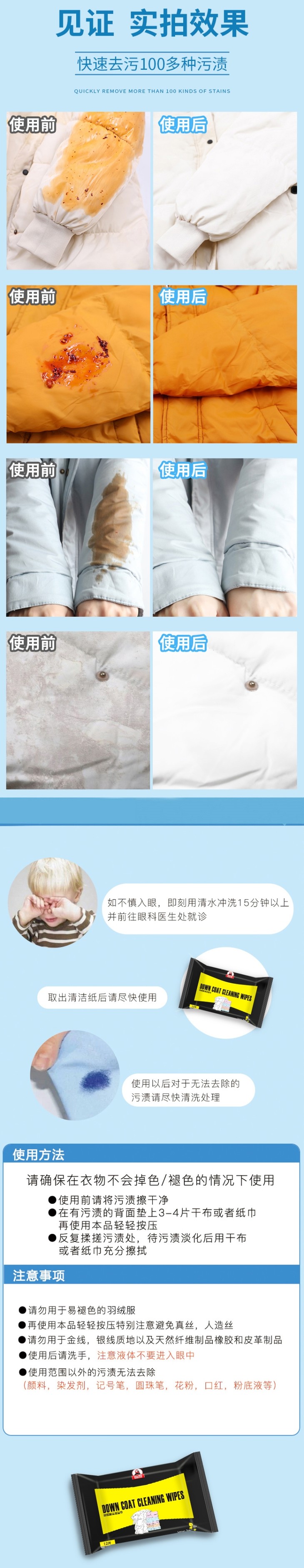 【羽绒服清洁湿巾】免水洗去污!随时随处避免尴尬,携带方便,护手不伤衣
