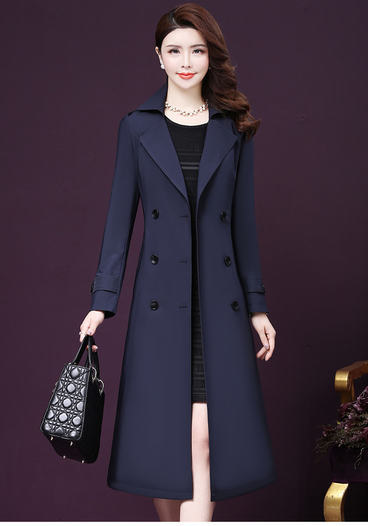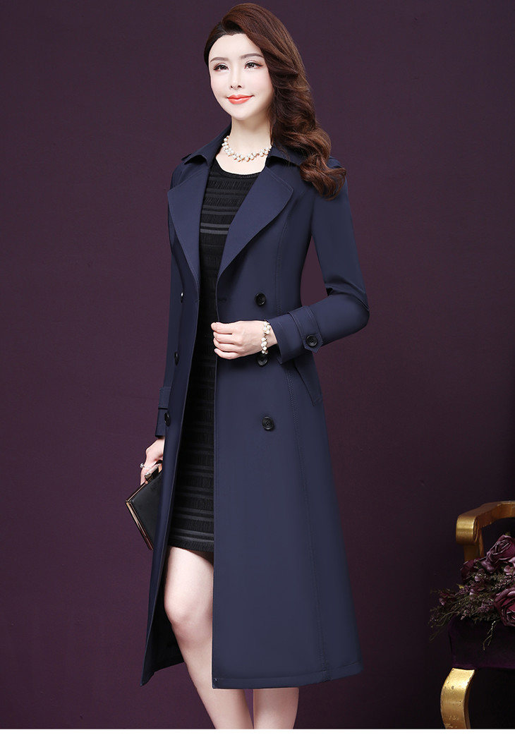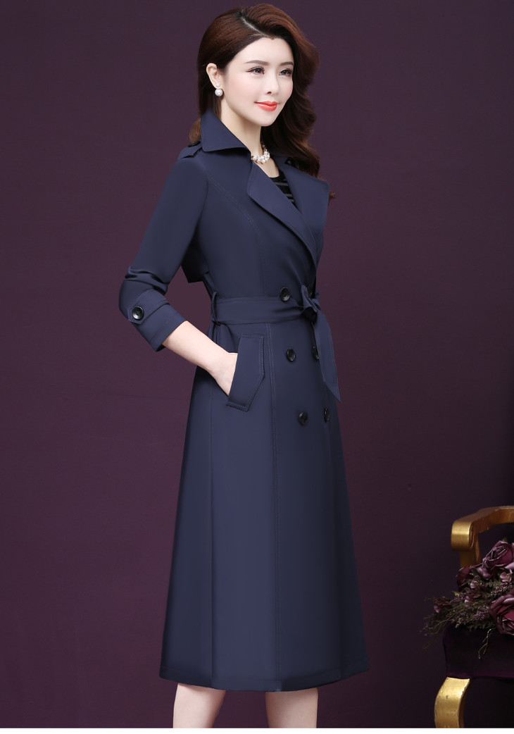 WXY-W-AHH-817X秋装修身显瘦双排扣收腰中长款大码百搭女风衣外套