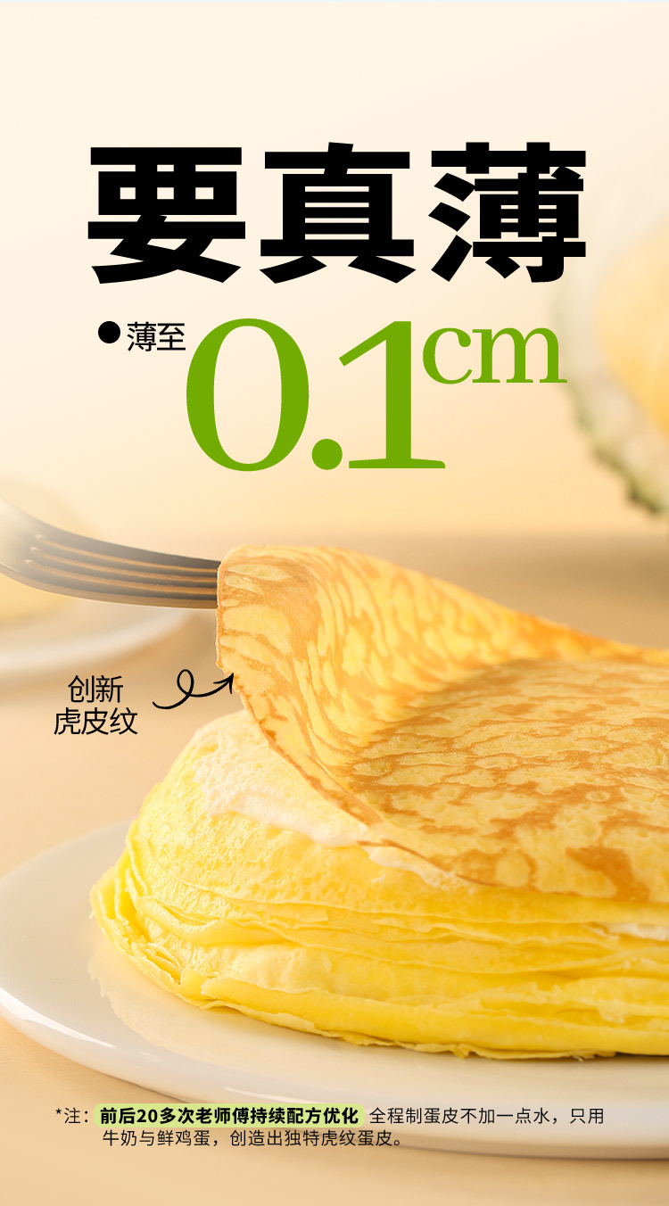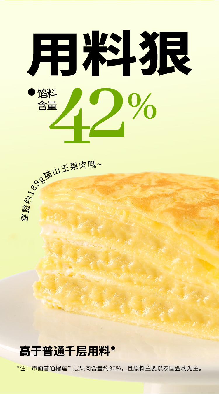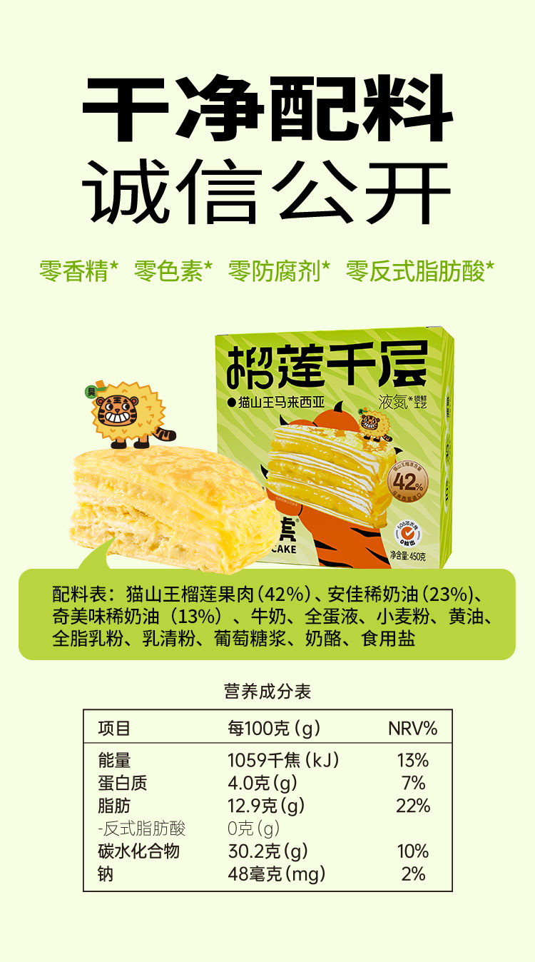 【爆单预售 顺丰】真材实料 配方干净 | 臭老虎 马来西亚A级猫山王榴莲果肉千层/无添加虎皮蛋糕 安佳动物奶油 不加一滴水 0色素香精防腐剂 减糖糕点甜品 450g/盒*1盒/2盒