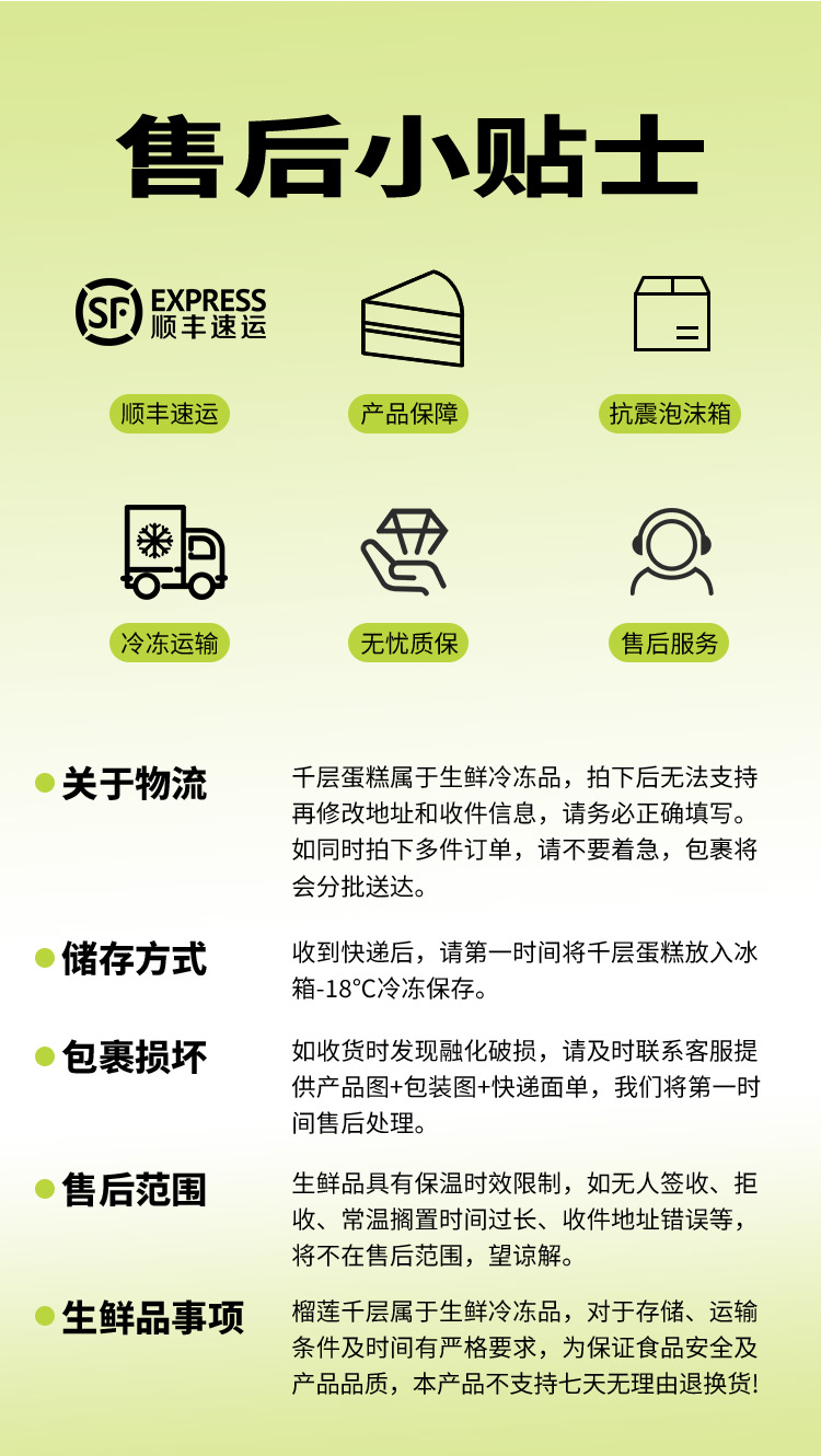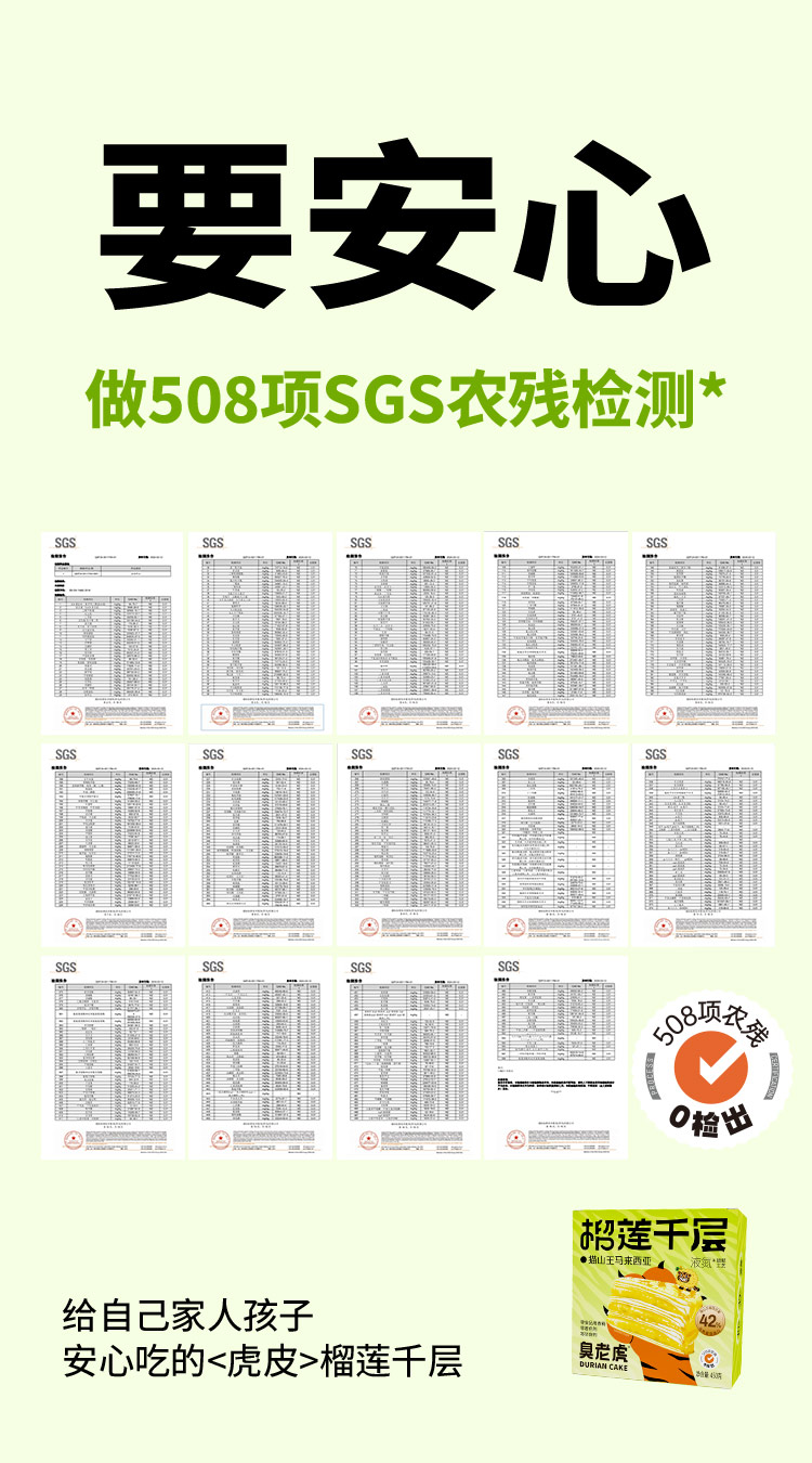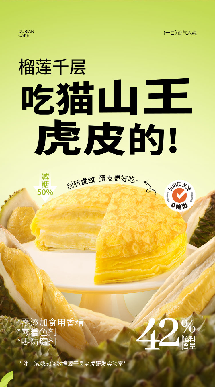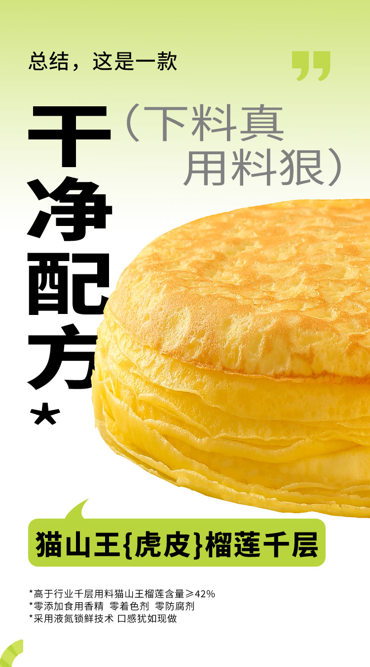 【爆单预售 顺丰】真材实料 配方干净 | 臭老虎 马来西亚A级猫山王榴莲果肉千层/无添加虎皮蛋糕 安佳动物奶油 不加一滴水 0色素香精防腐剂 减糖糕点甜品 450g/盒*1盒/2盒