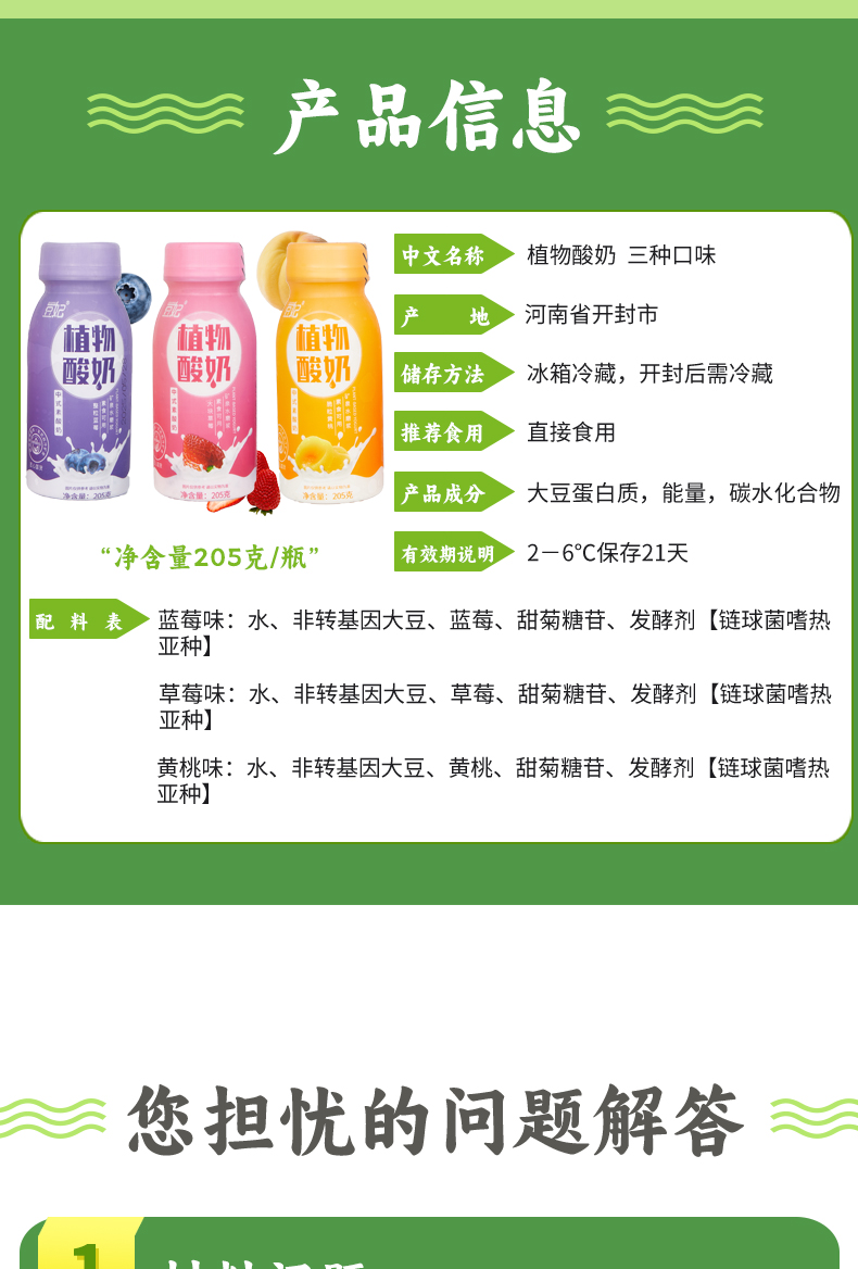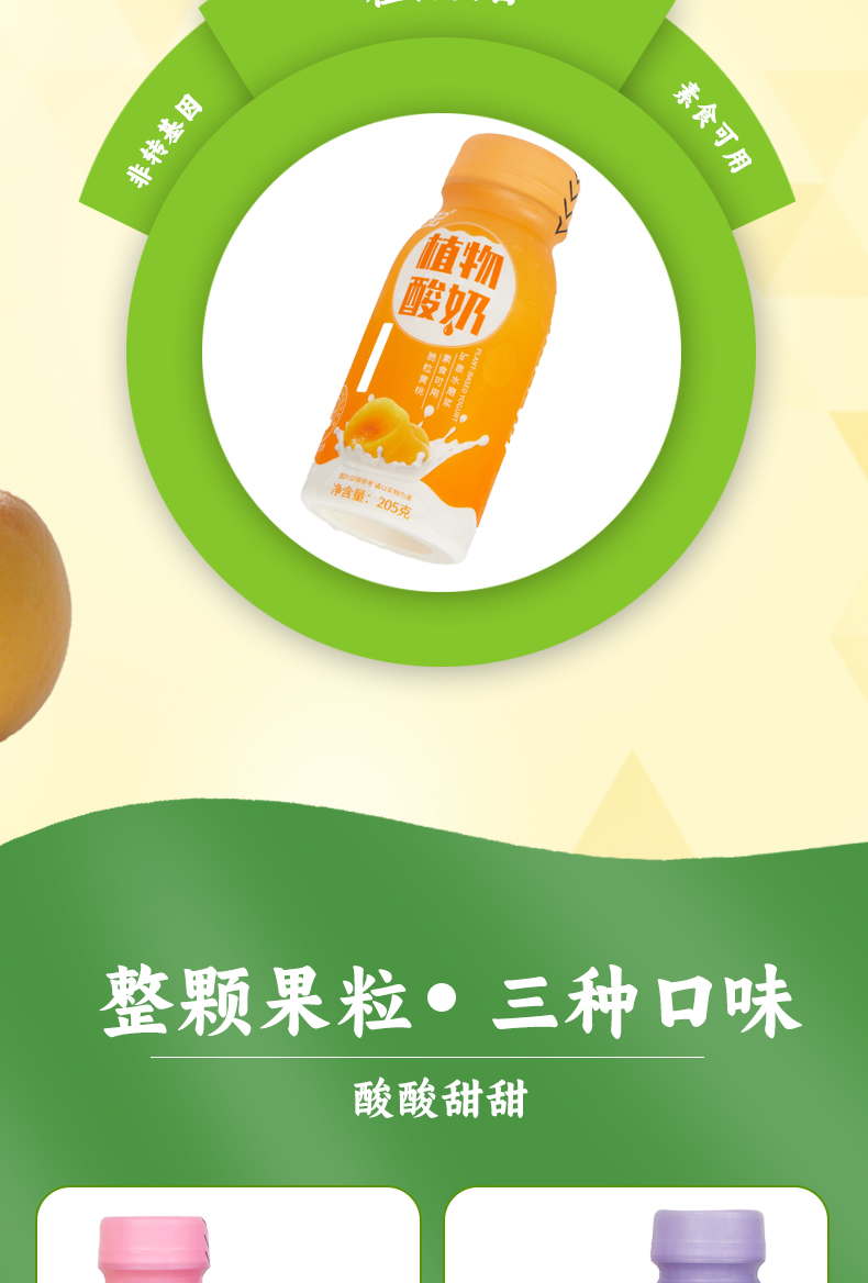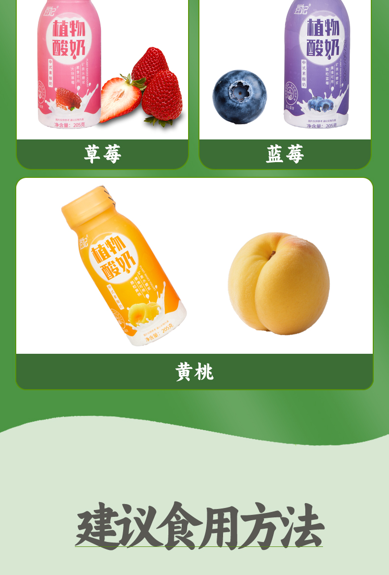 植物果粒酸奶 | 205g*6瓶 黄桃/草莓/蓝莓 植物蛋白 大果肉 豆妃「下单后72小时内发货」