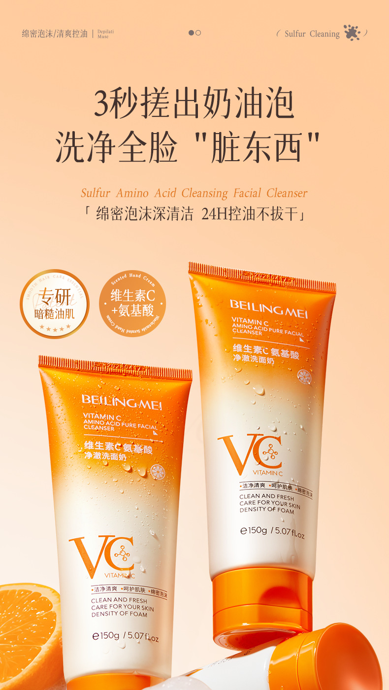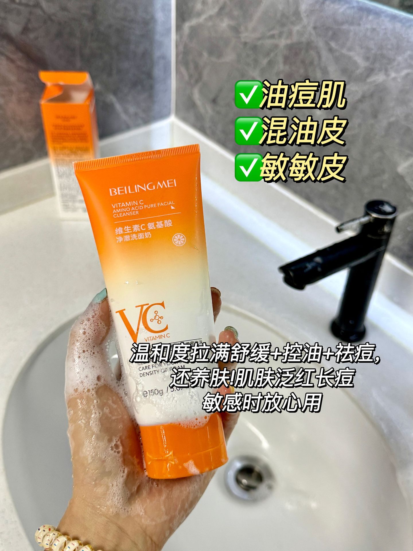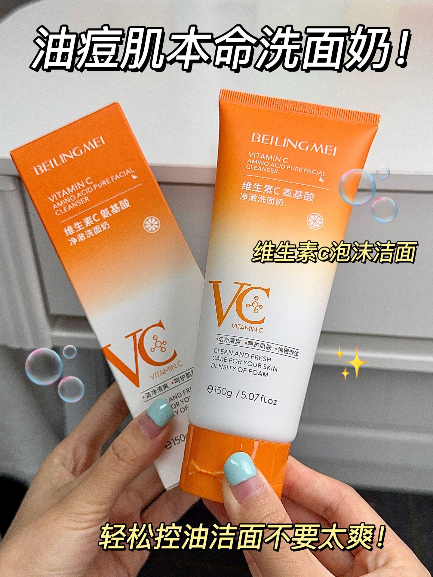 【洗卸养三合一】维生素C洗面奶淡黄提亮控油补水控痘去痘印去黑头收缩毛孔洁面乳。xa