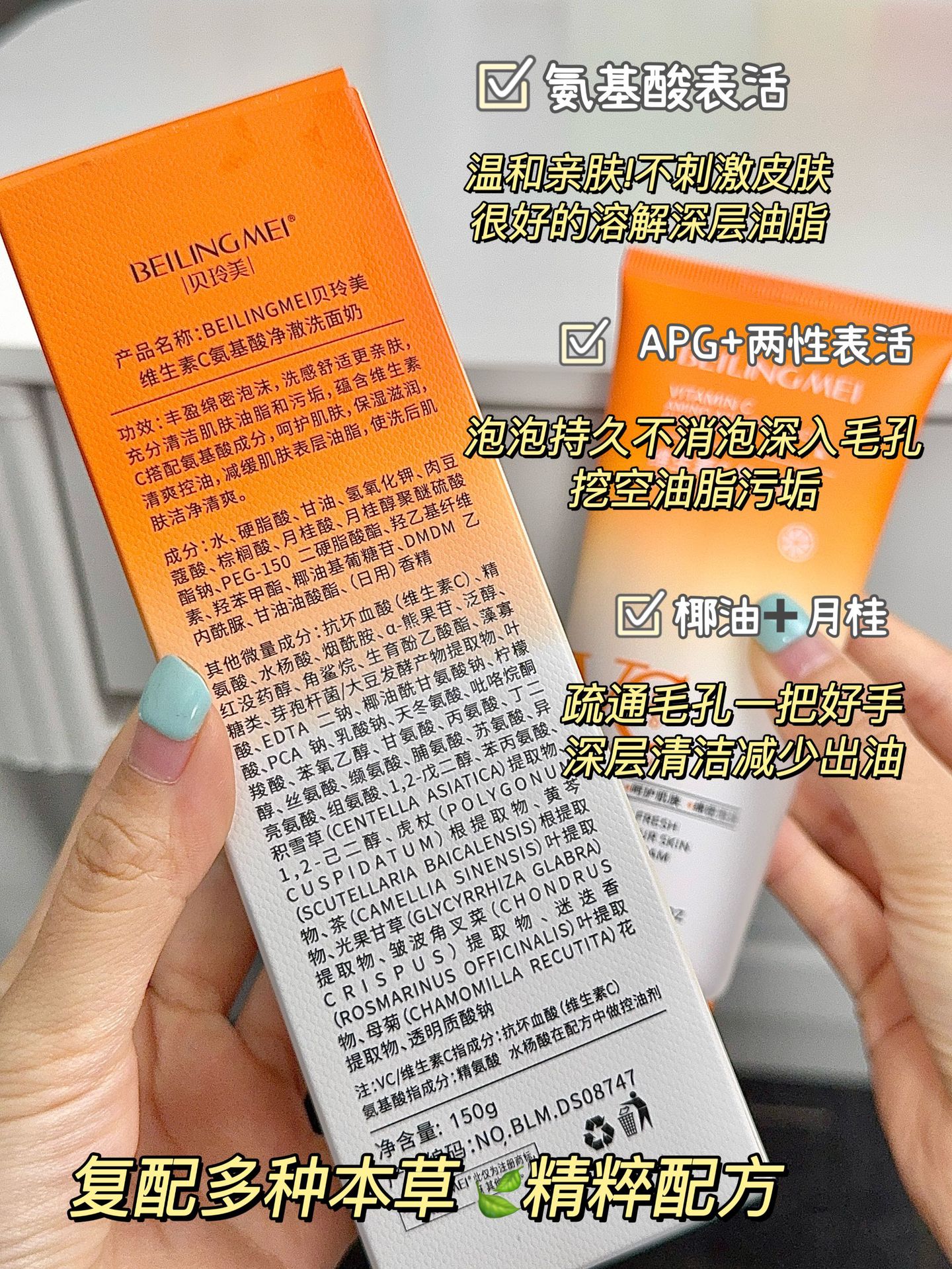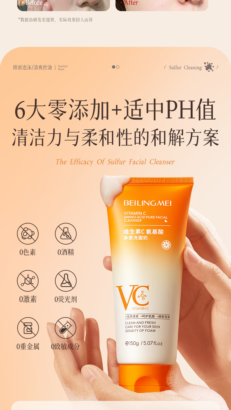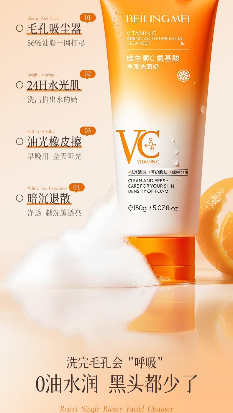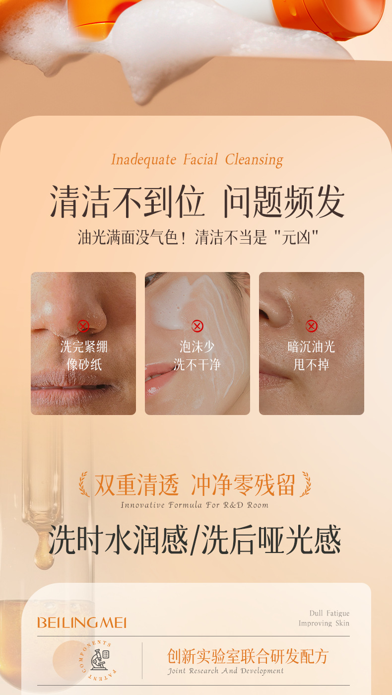 【洗卸养三合一】维生素C洗面奶淡黄提亮控油补水控痘去痘印去黑头收缩毛孔洁面乳。xa