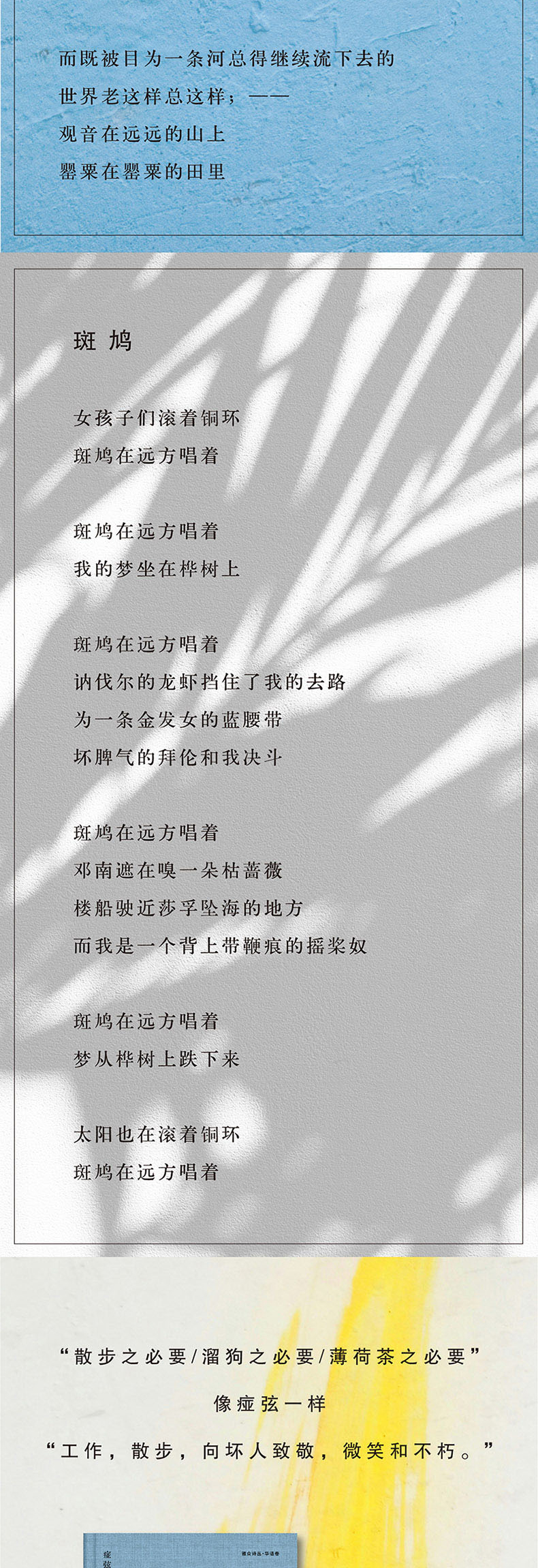 3.绝版多年,经典重出,完整涵盖痖弦创作生涯代表诗作,再度点亮华语诗歌的光辉版图。