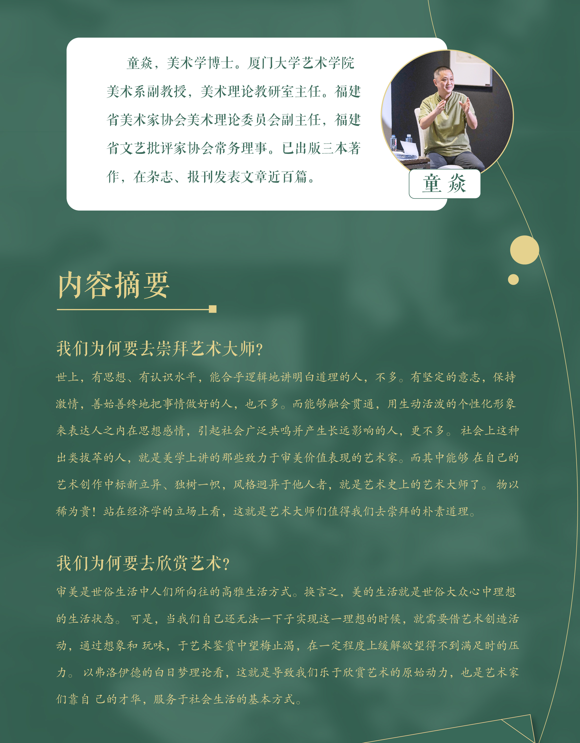 厦门大学美术理论的教授,对艺术家生平如数家珍,理性、科学、辩证的艺术批评信手拈来,更能一眼参透迷惑的艺术现象。一起翻开书,看破这些伎俩与奥秘。