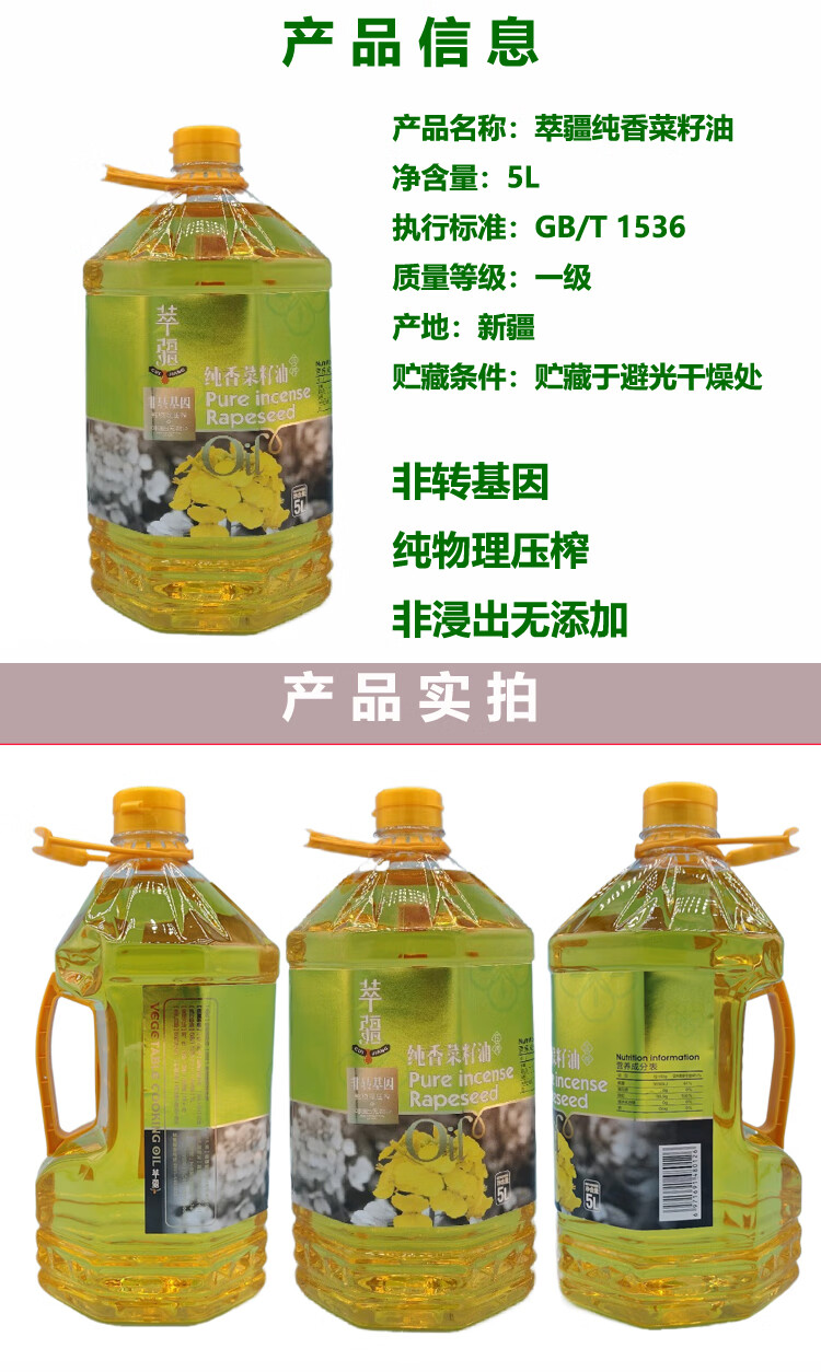 萃疆·纯香菜籽油5L 物理压榨家用烹饪油