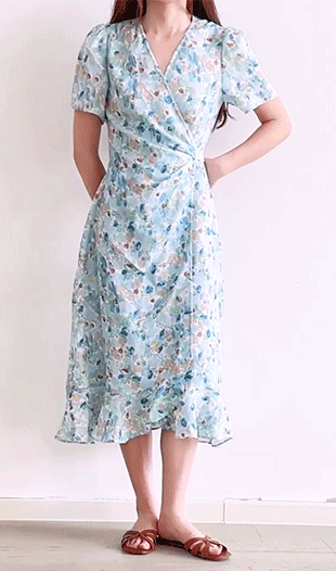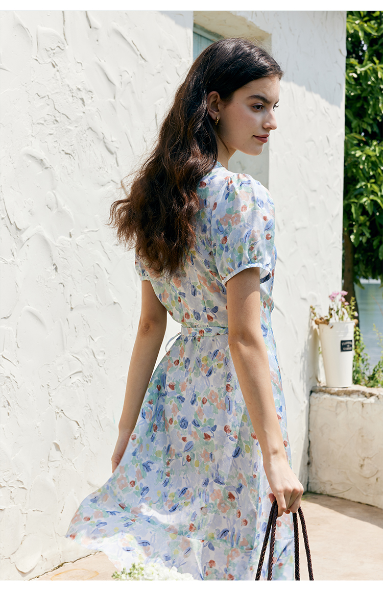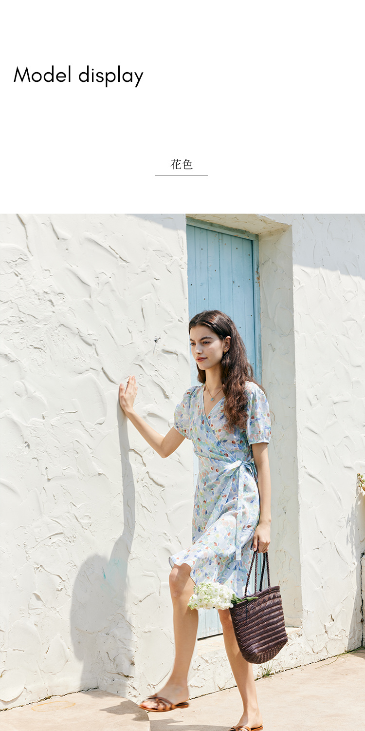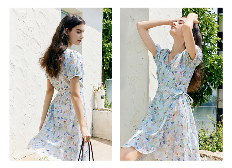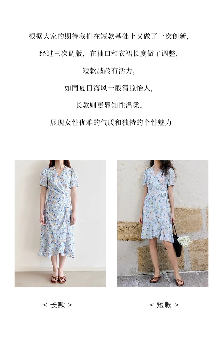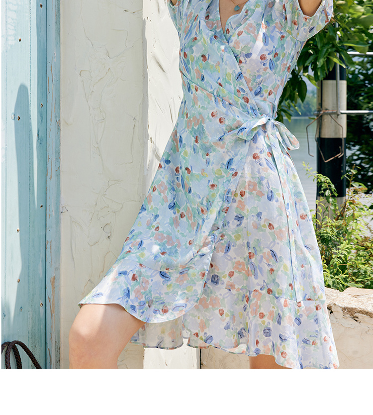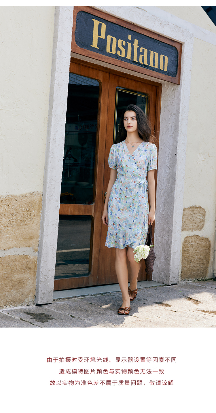 HeyDres法式裹身碎花连衣裙女夏季抽褶收腰设计气质荷叶边裙子