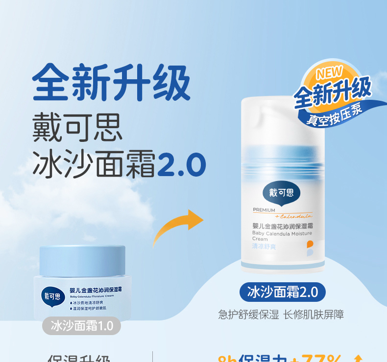戴可思婴儿按压款沁润冰沙面霜金盏花夏季宝宝面霜儿童清爽保湿霜50g----25年新款