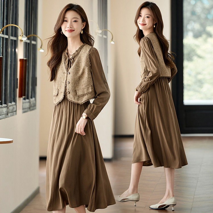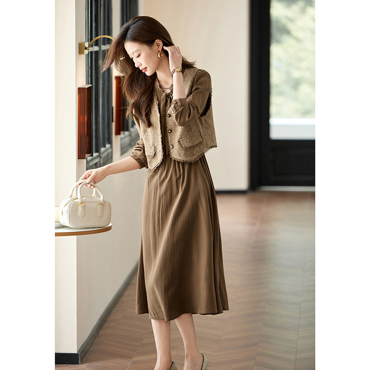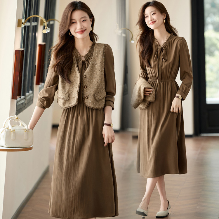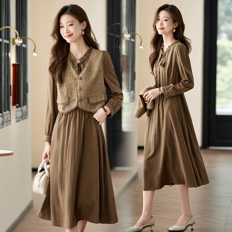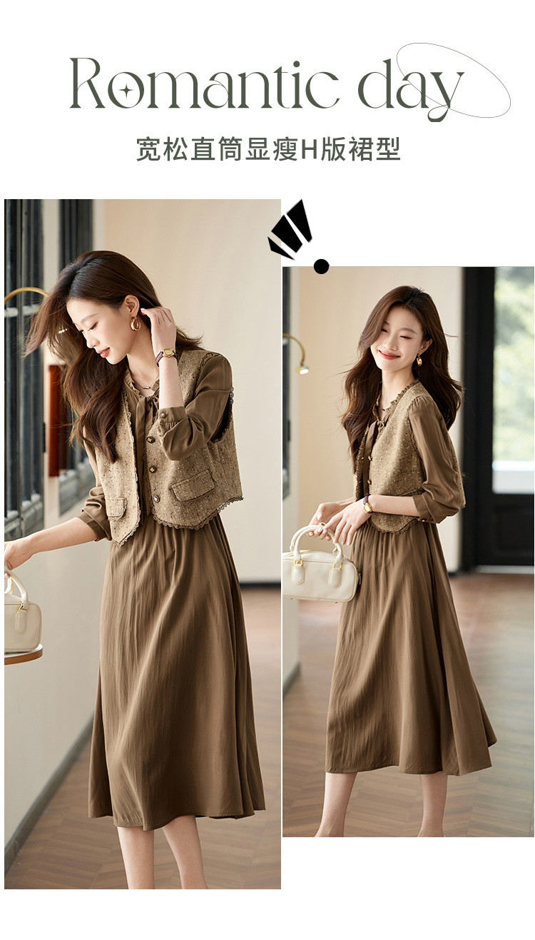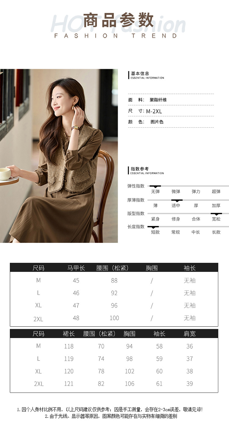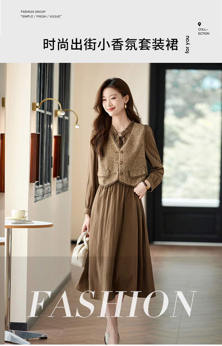【预售3天】PY-秋季新款小香风气质马甲荷叶边领中长裙两件套连衣裙&50681