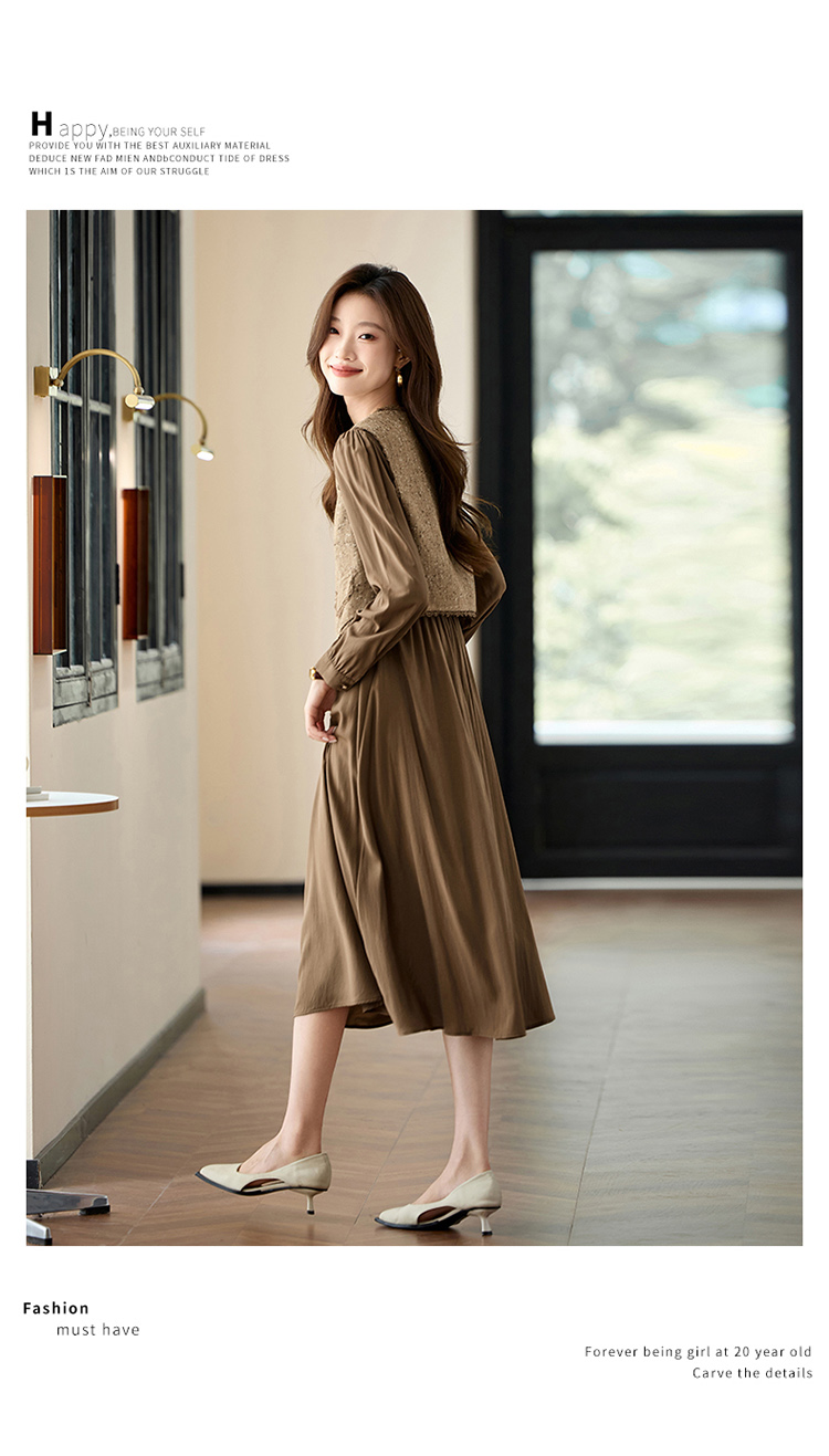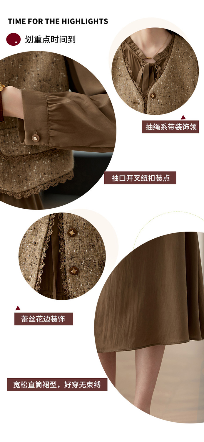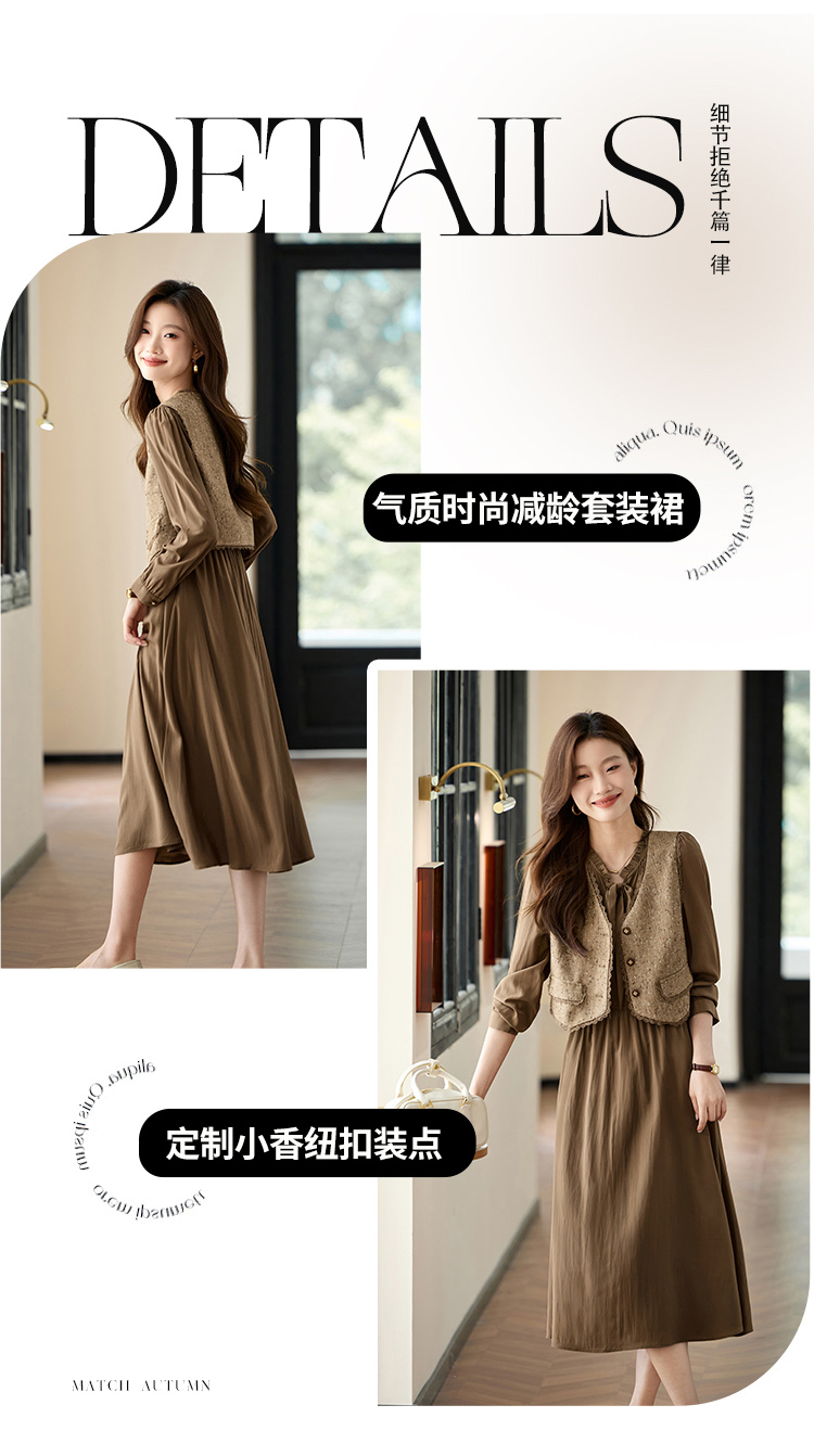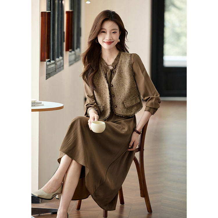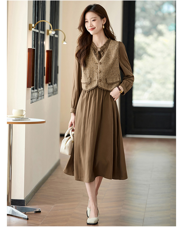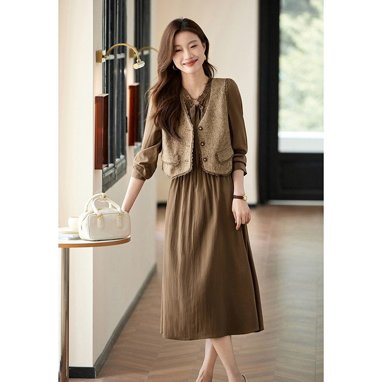 【预售3天】PY-秋季新款小香风气质马甲荷叶边领中长裙两件套连衣裙&50681