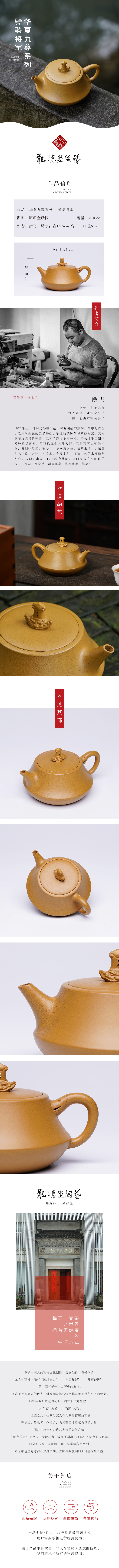 龙德堂陶艺 徐飞制 《华夏九尊系列-骠骑将军》原矿金砂段 270cc 库存请咨询客服