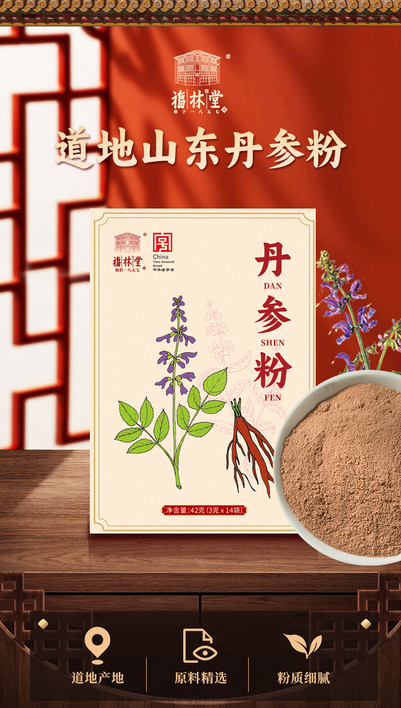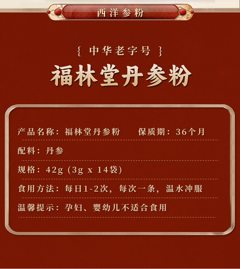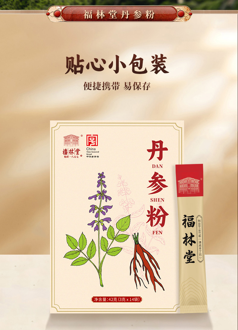 福林堂 中华老字号丹参粉中老年滋补打粉 3g*14条/盒