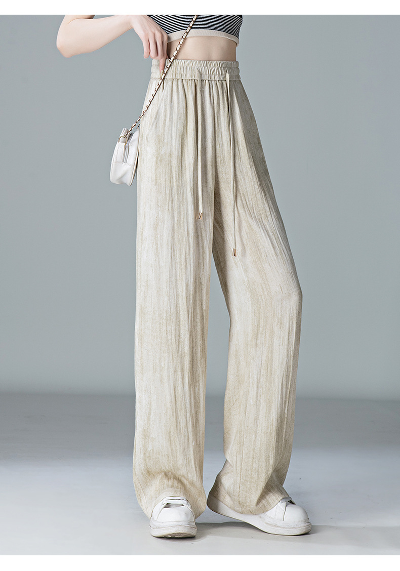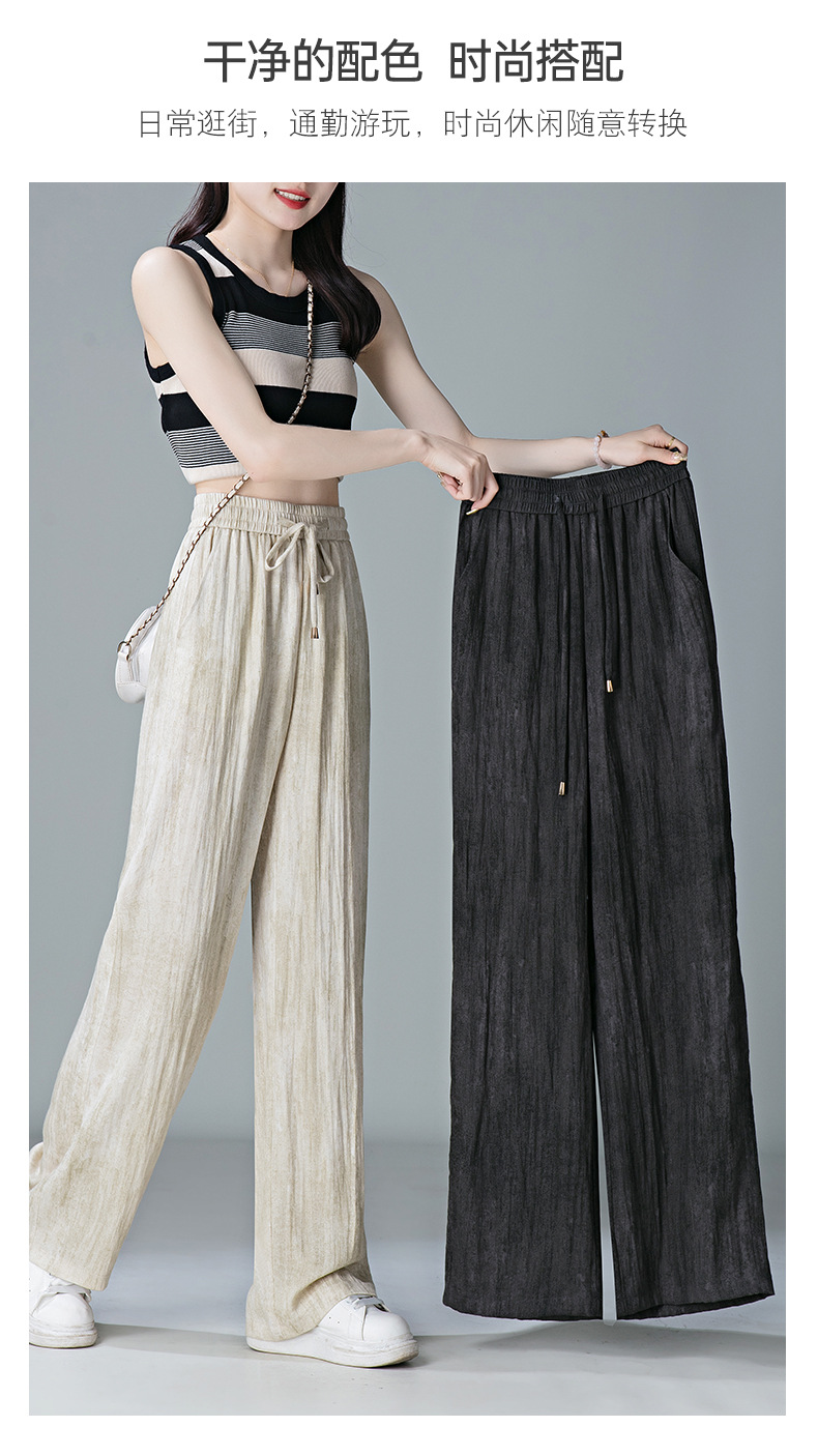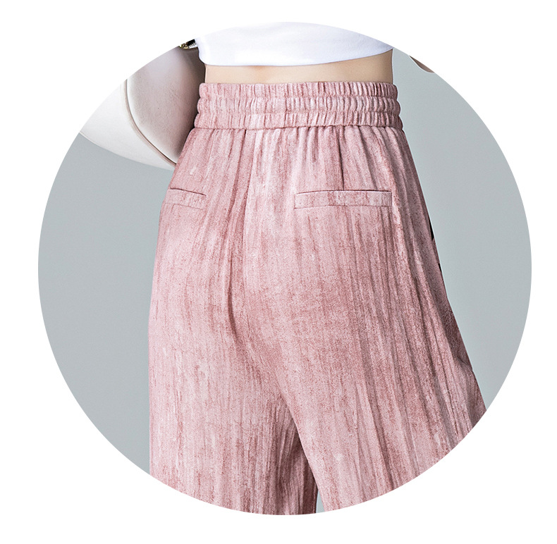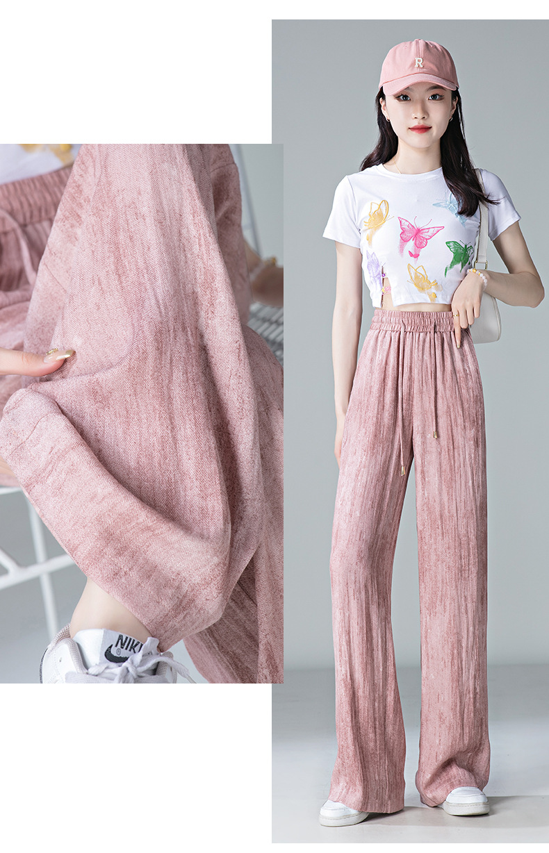 福利款~雀说 亚麻粉色晕染休闲裤女松紧腰夏季薄款宽松窄版阔腿长裤子4ZF-2865