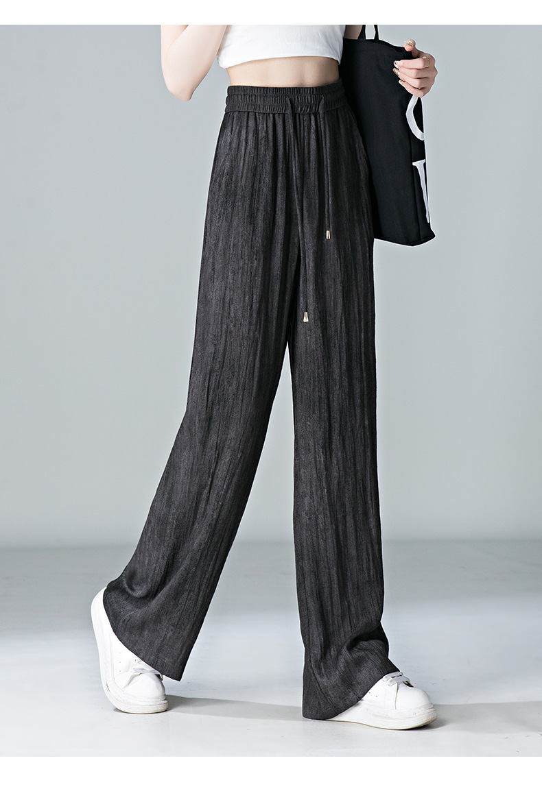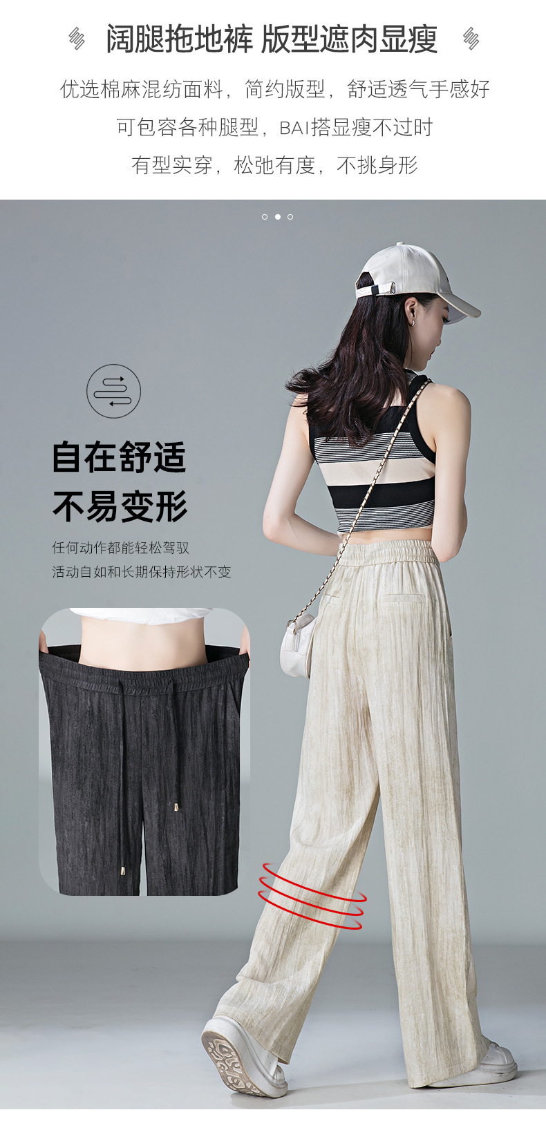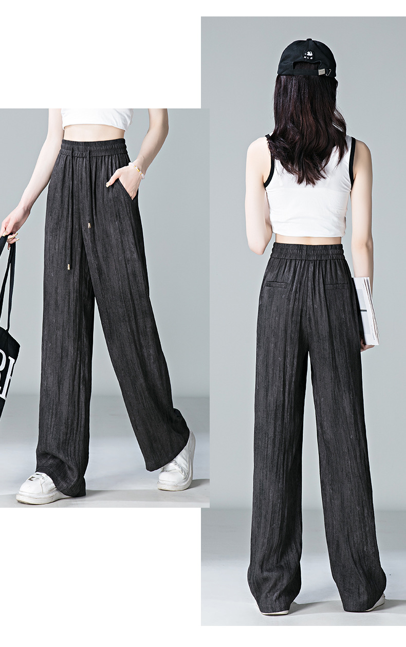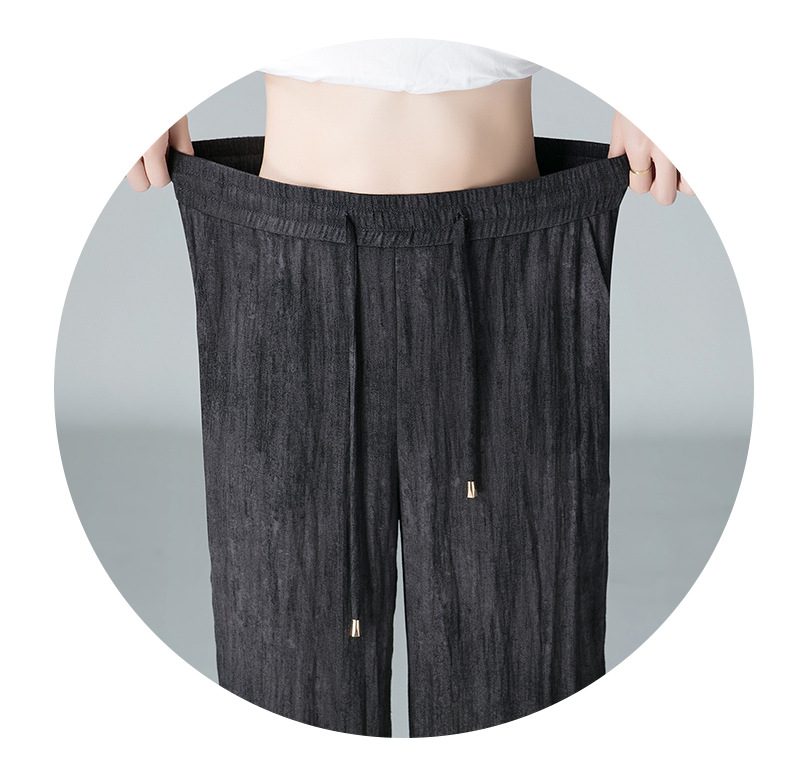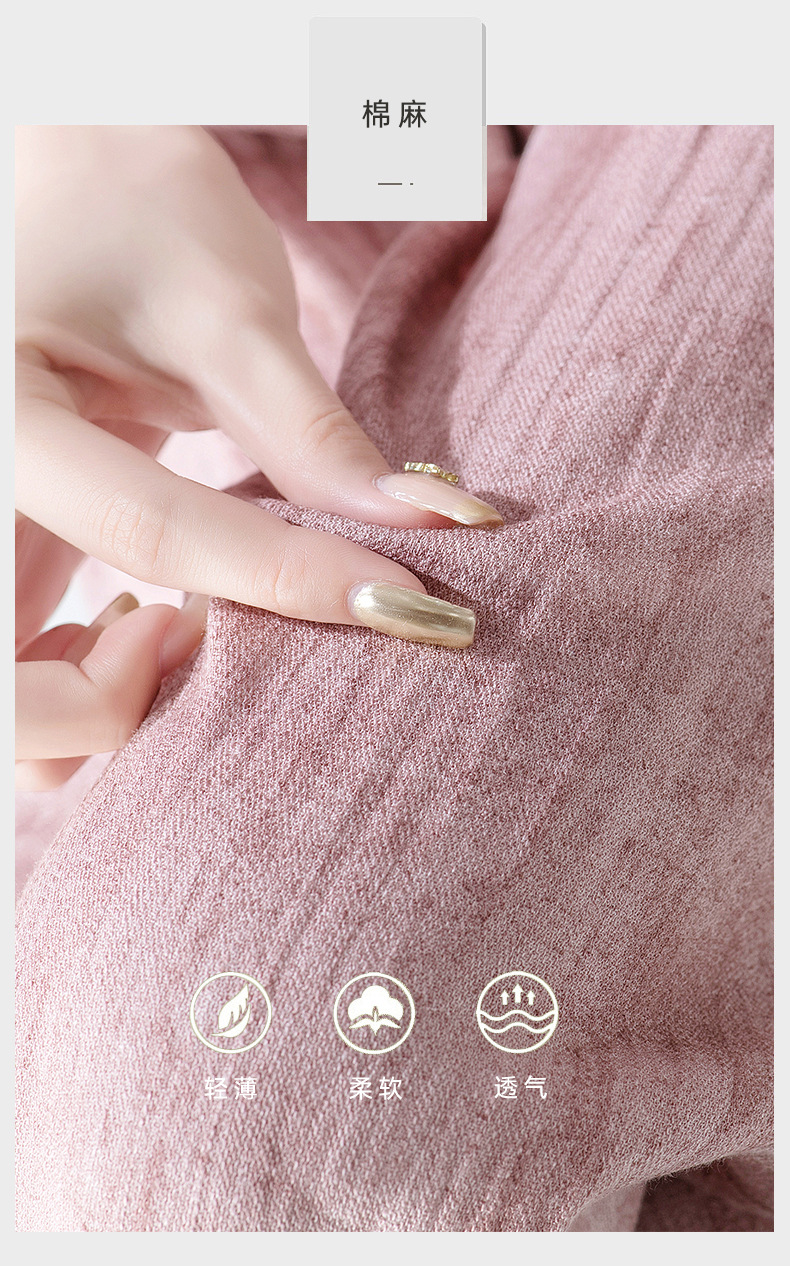福利款~雀说 亚麻粉色晕染休闲裤女松紧腰夏季薄款宽松窄版阔腿长裤子4ZF-2865