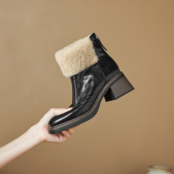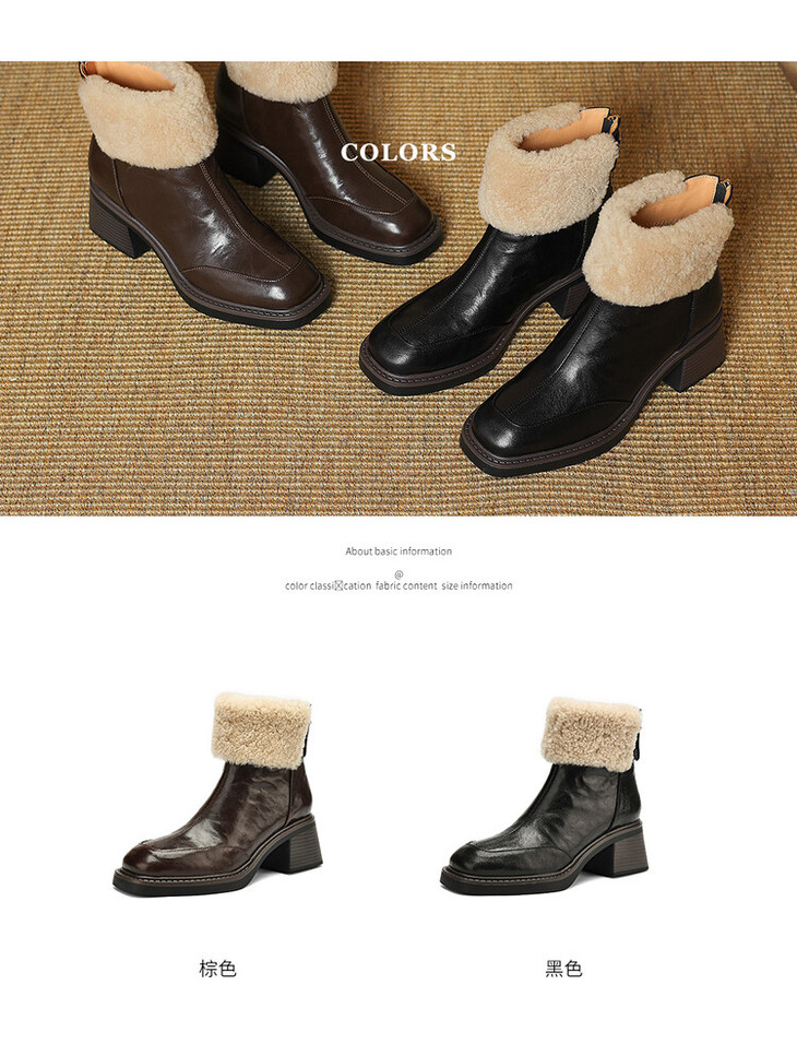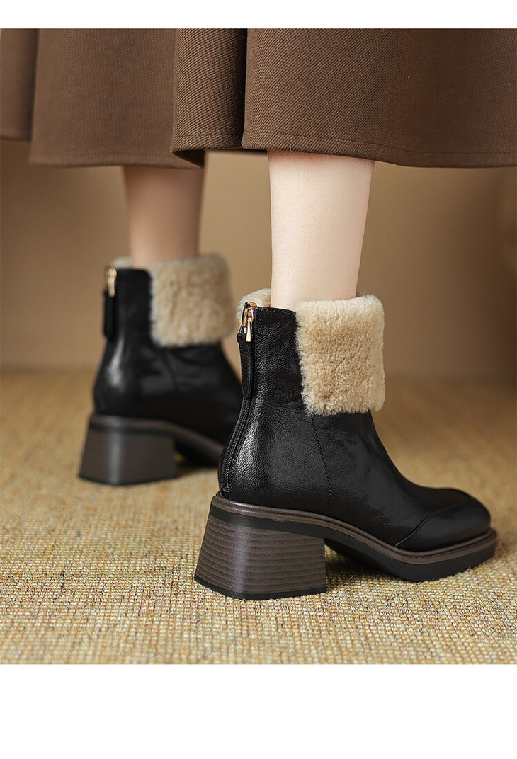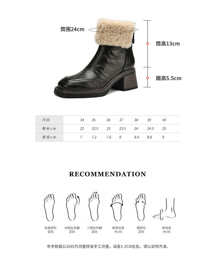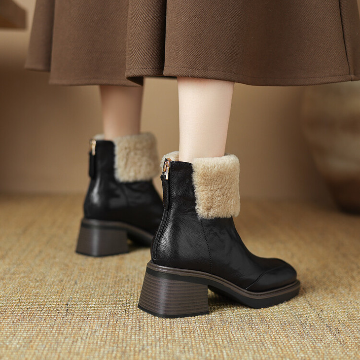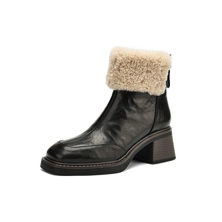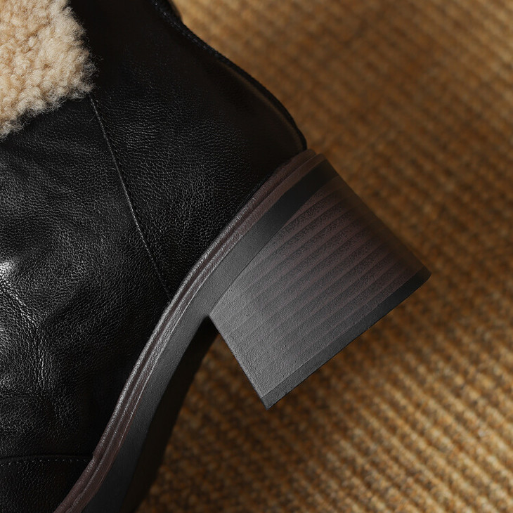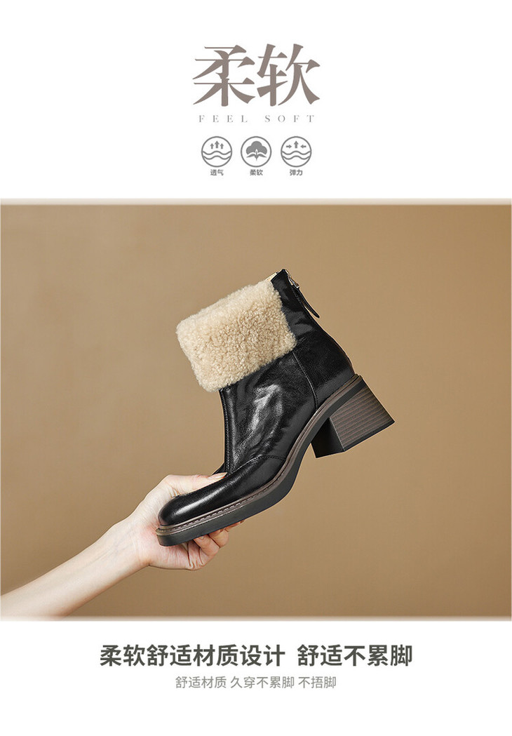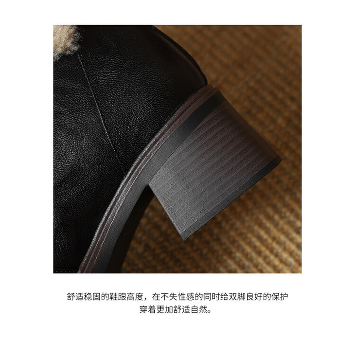 【预售5天】英伦风复古圆头粗跟短靴5.5cm厚底后拉链真皮羊羔毛领口短靴LD&6994
