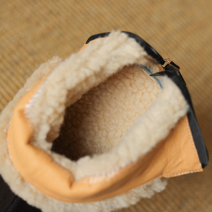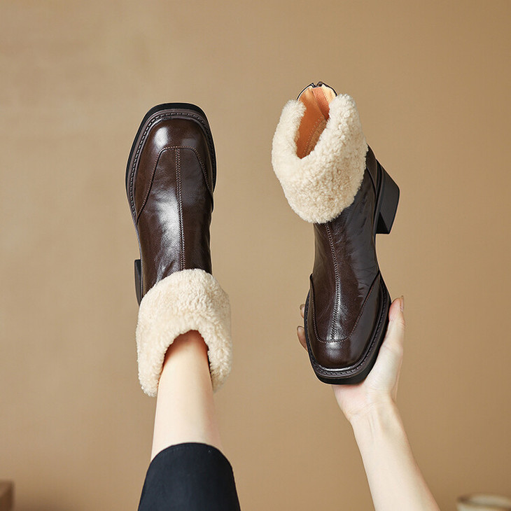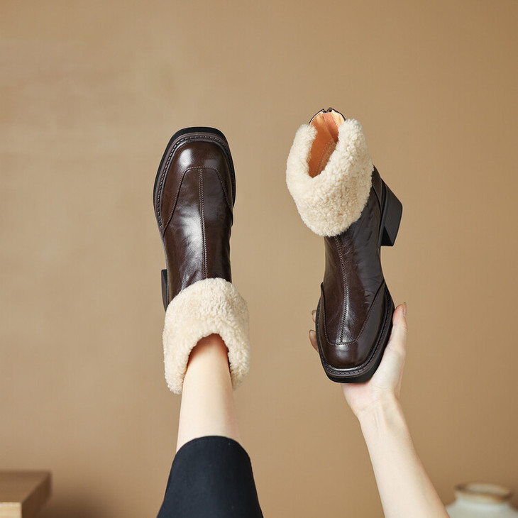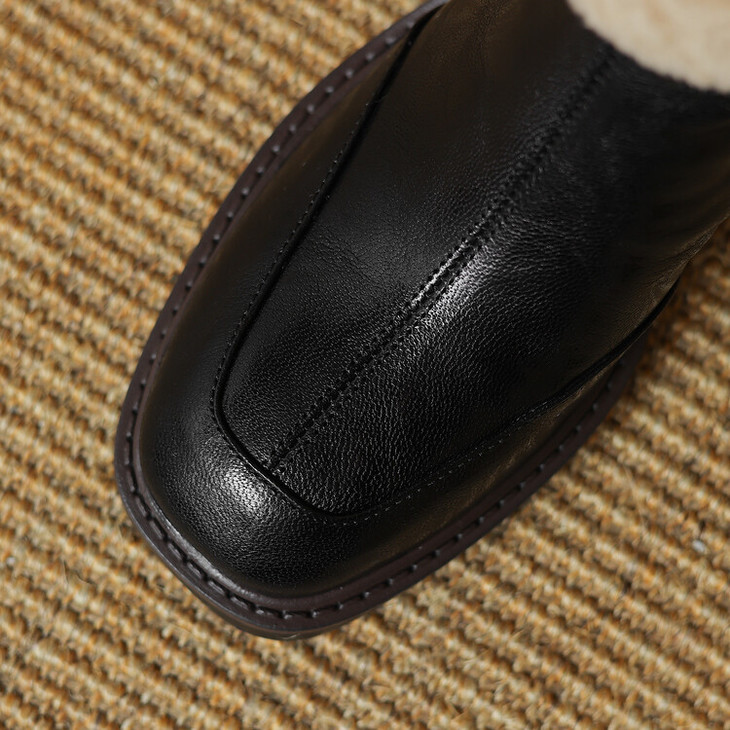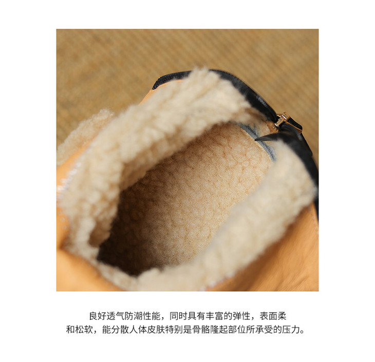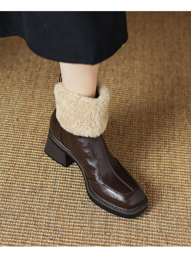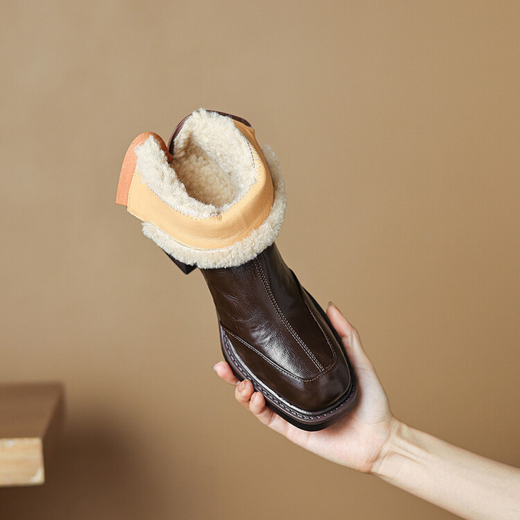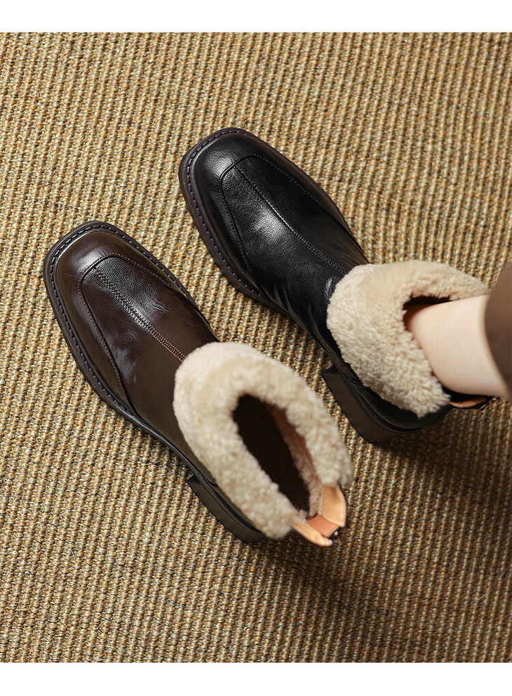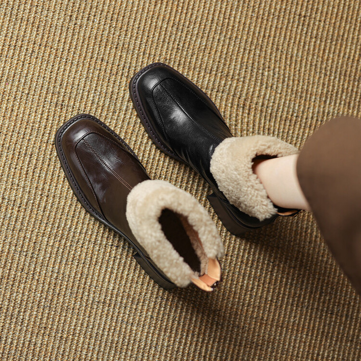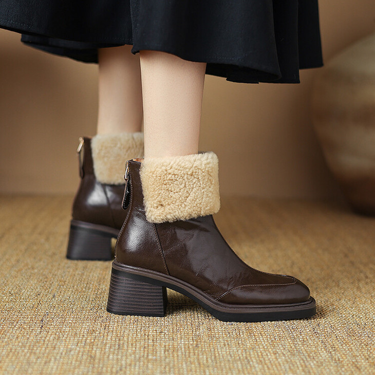 【预售5天】英伦风复古圆头粗跟短靴5.5cm厚底后拉链真皮羊羔毛领口短靴LD&6994