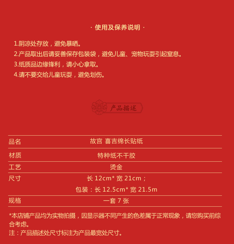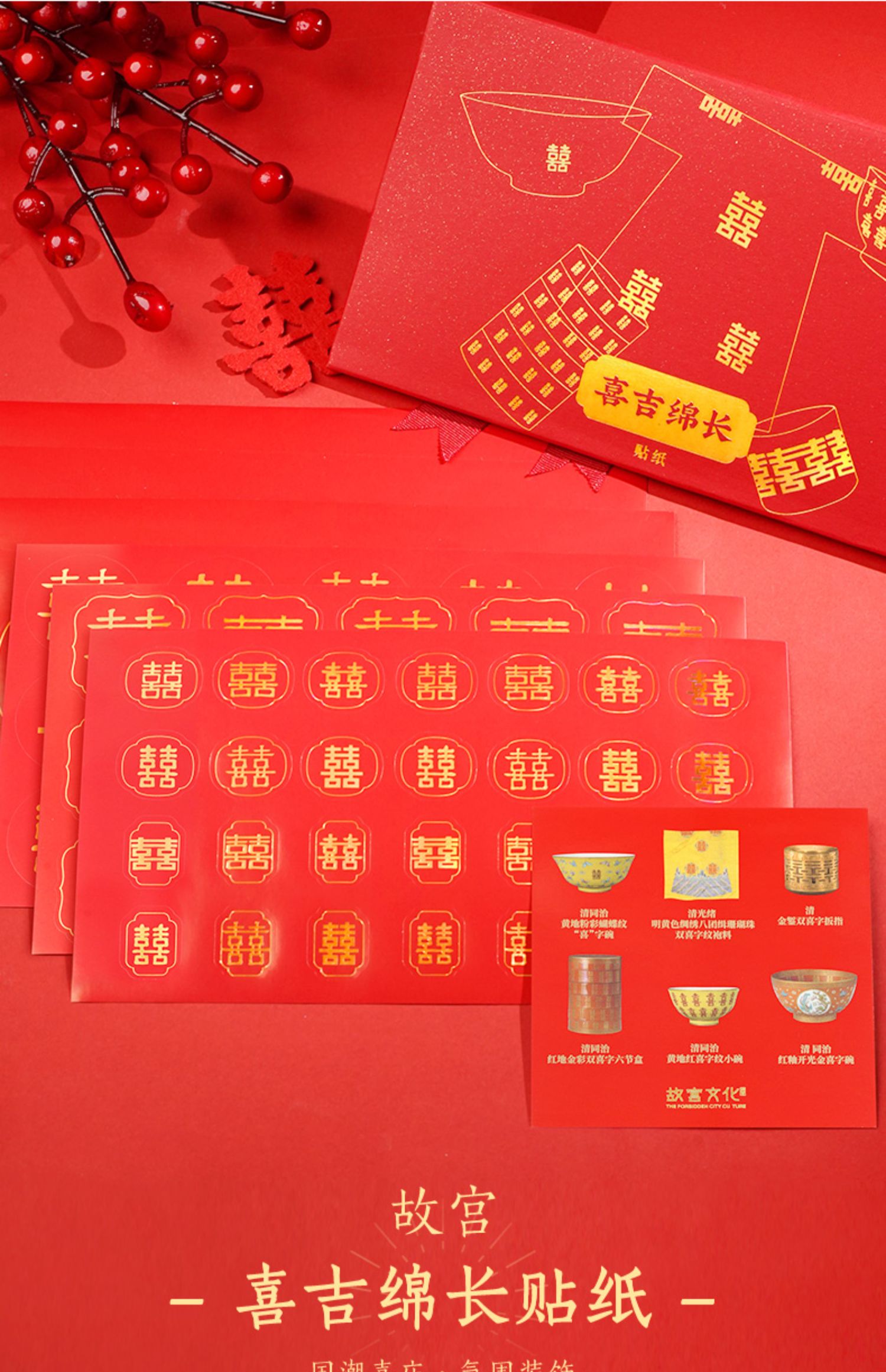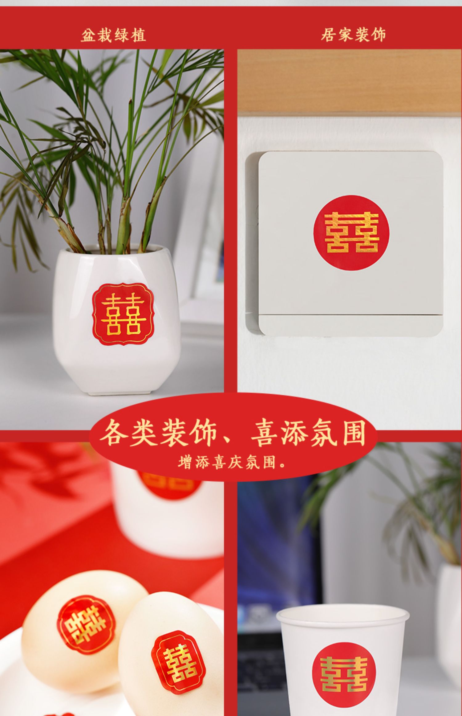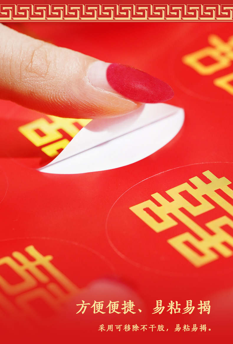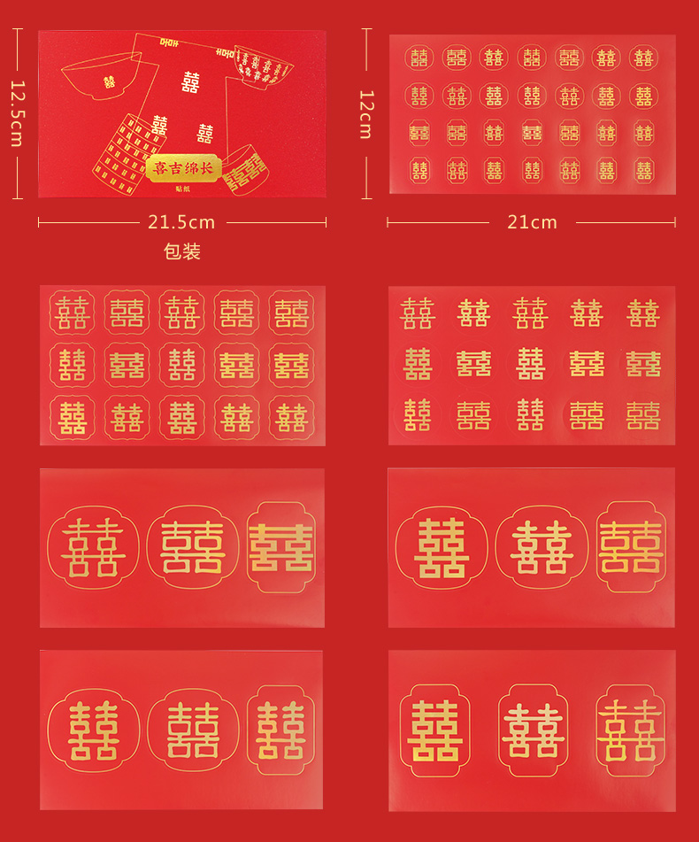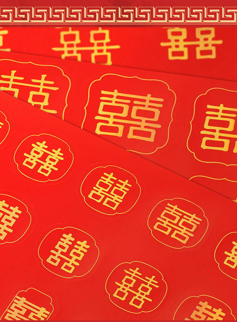 喜吉绵长贴纸 一套7张烫金工艺 婚房装饰贴画