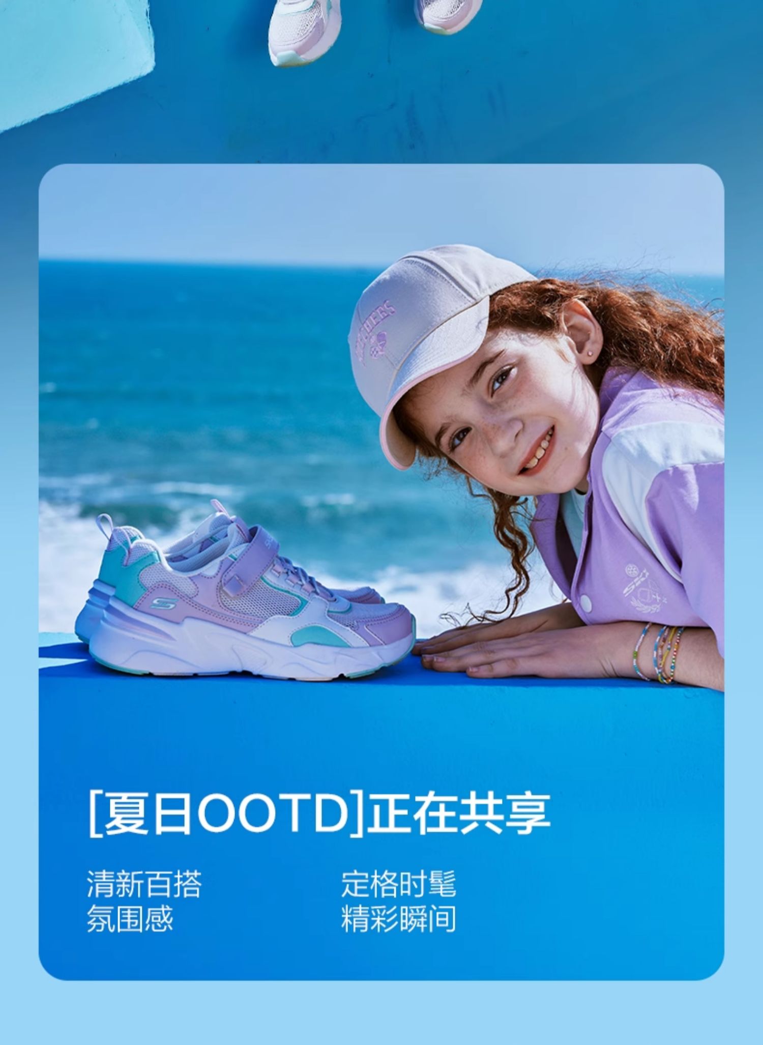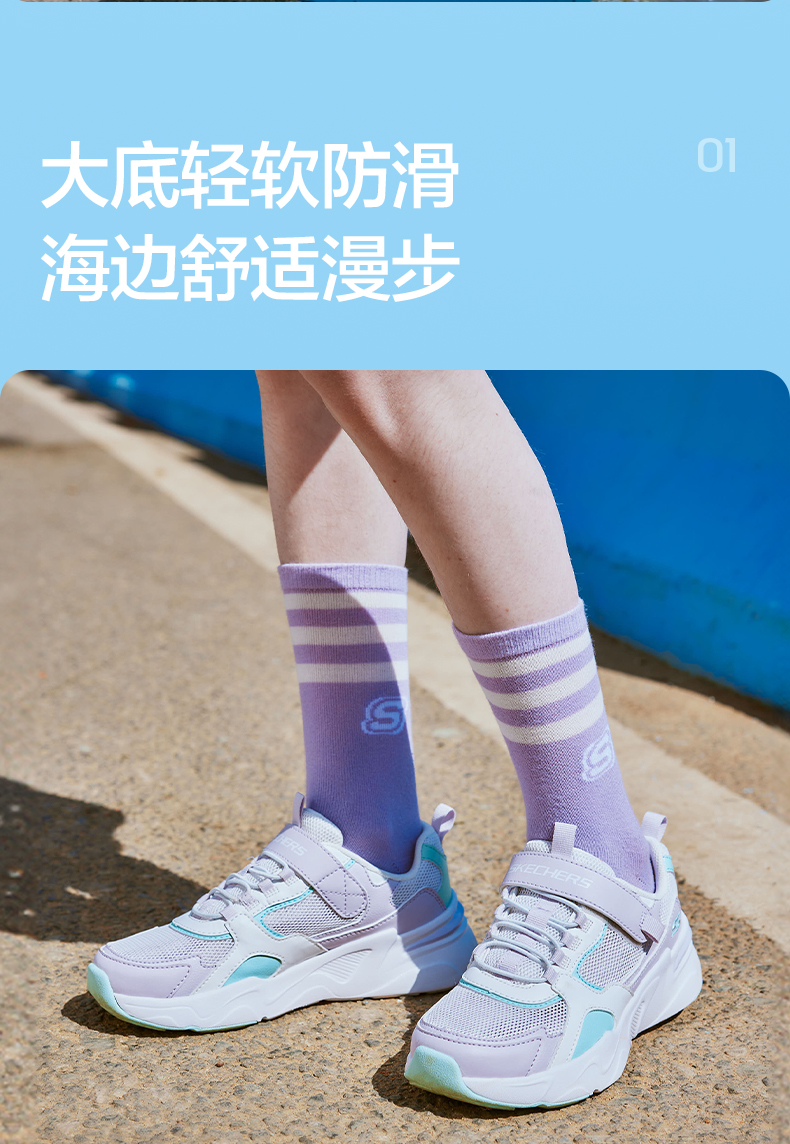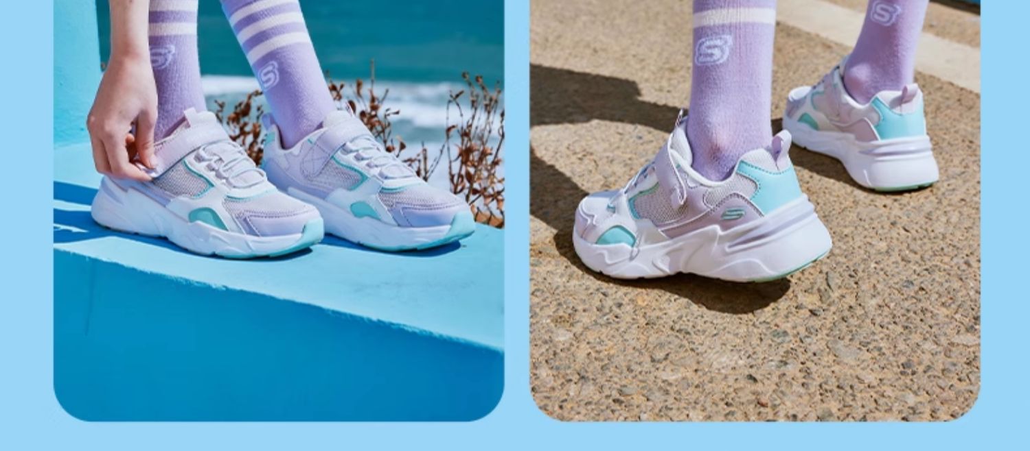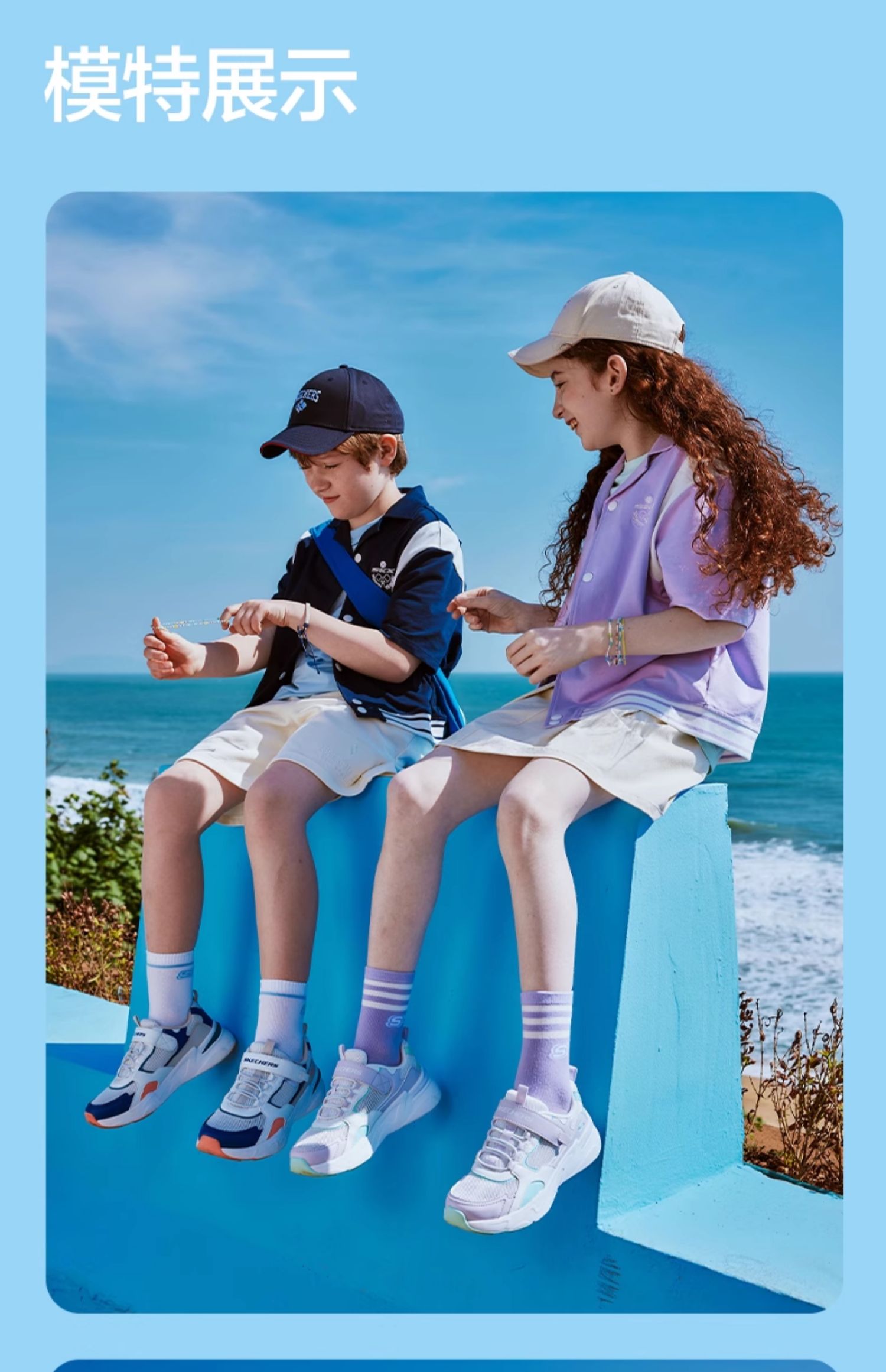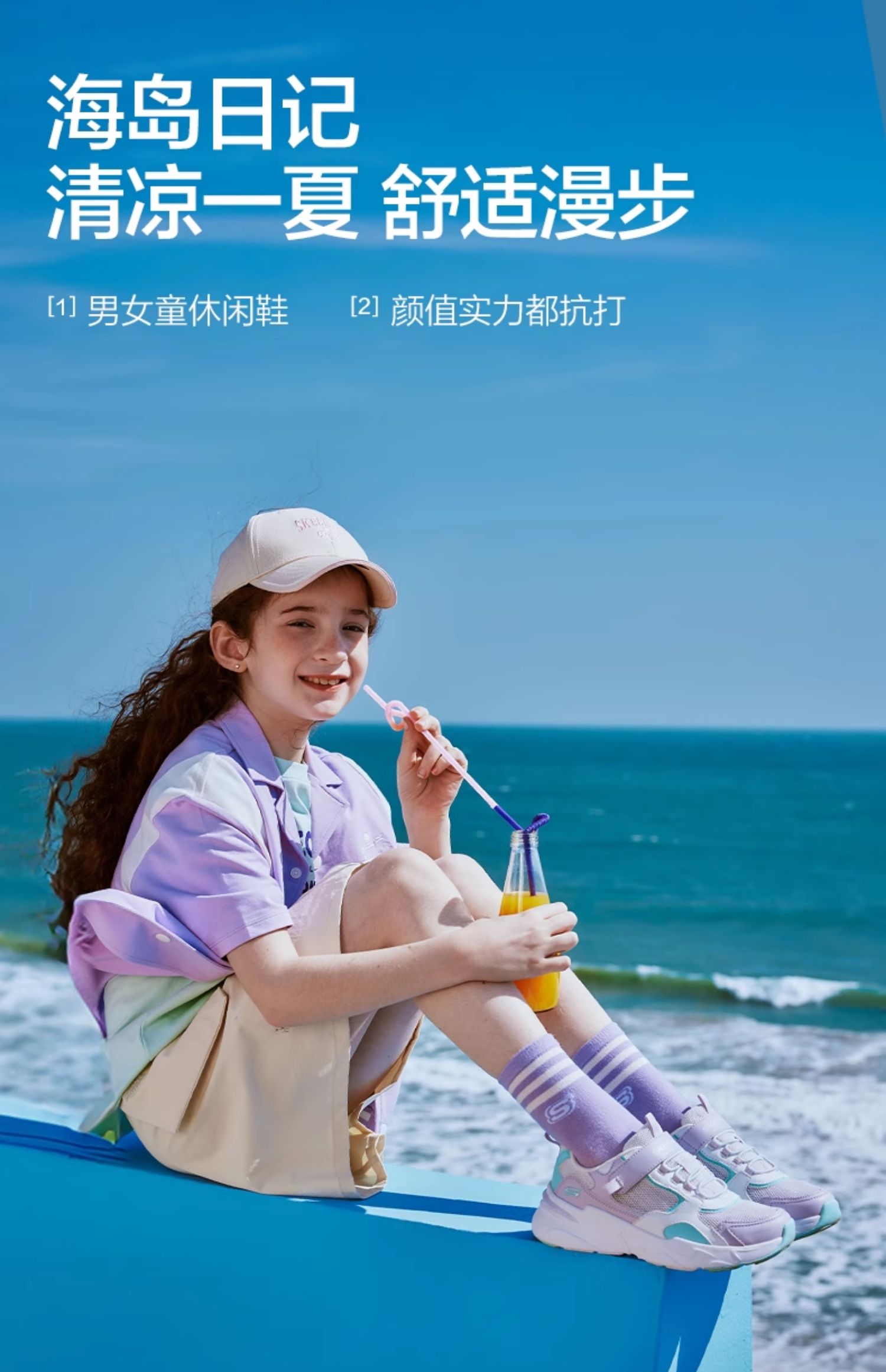 Skechers斯凯奇儿童时尚老爹鞋春夏网面透气女童舒适休闲运动鞋子