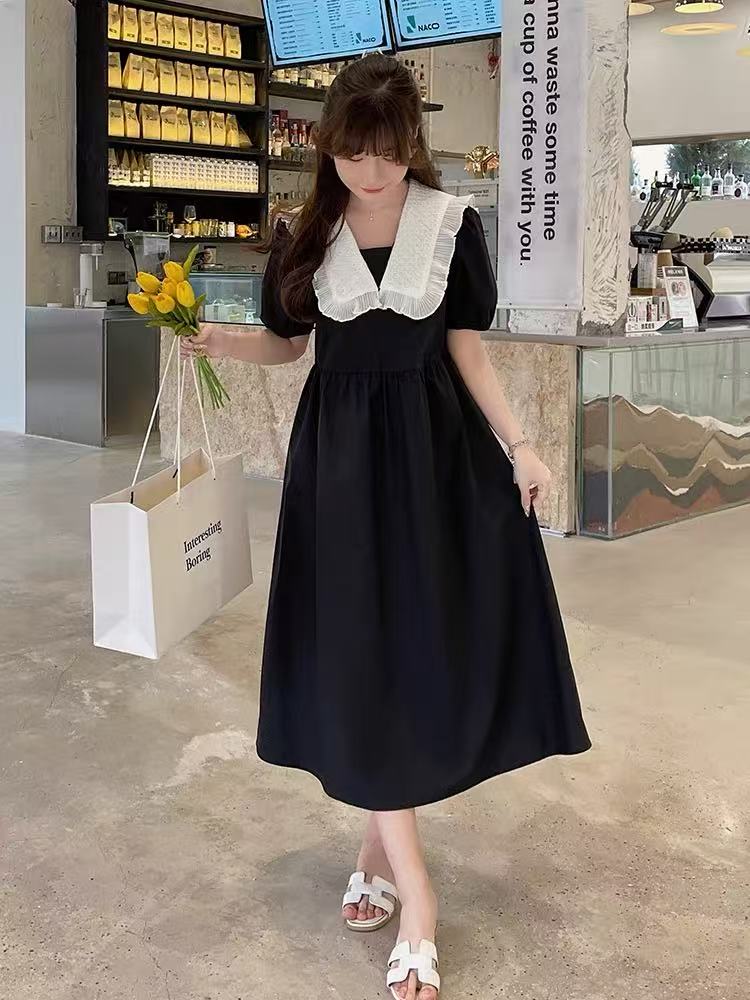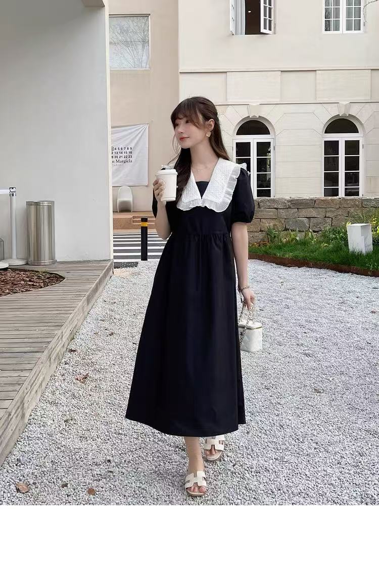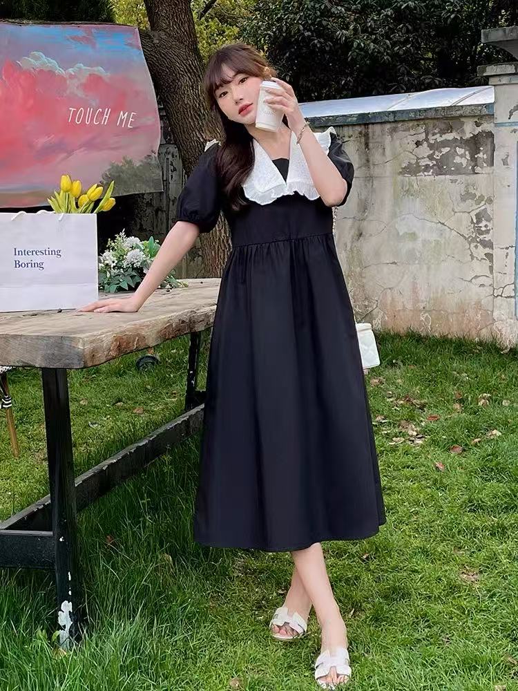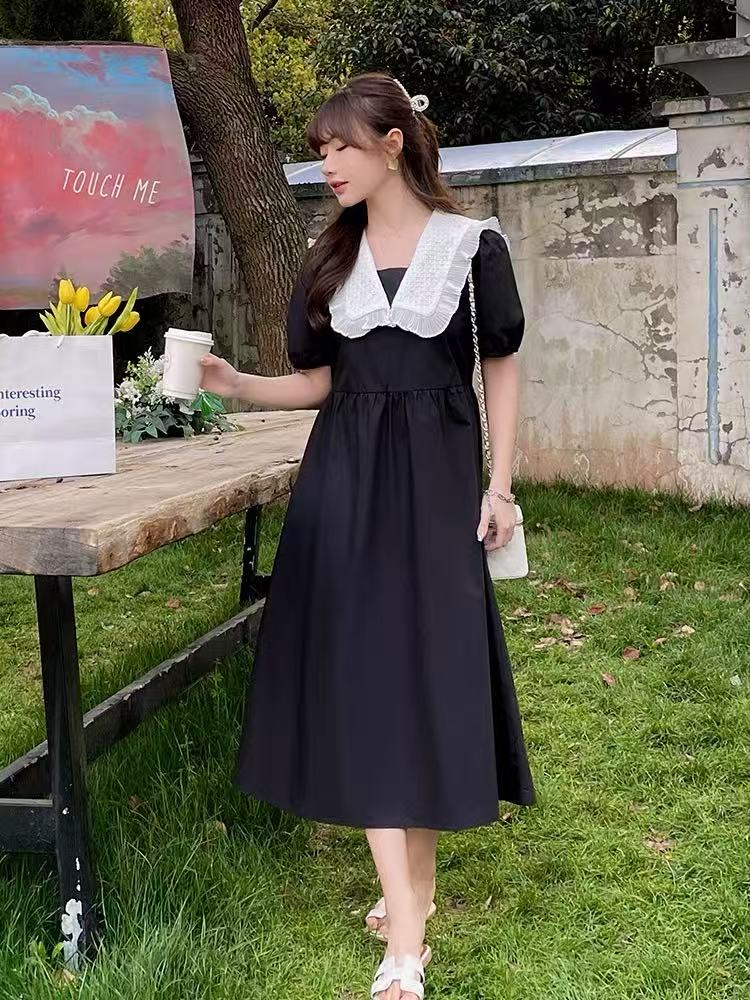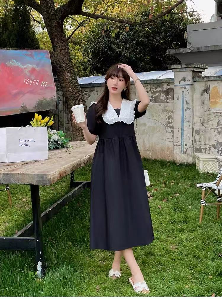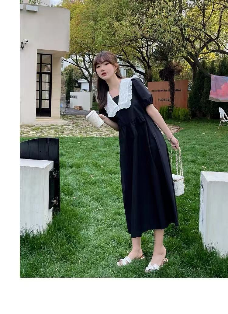 【诗铭洛可】XC409连衣裙设计感拼重工刺绣娃娃领裙子B18-3