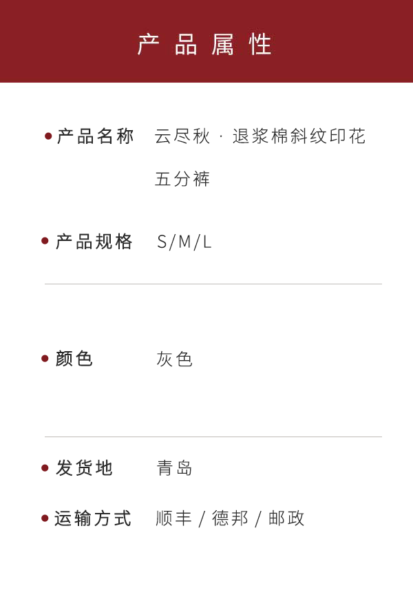 不裁 云尽秋·退浆棉斜纹印花五分裤