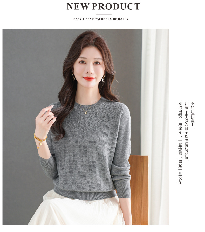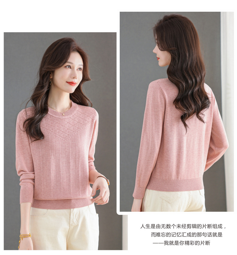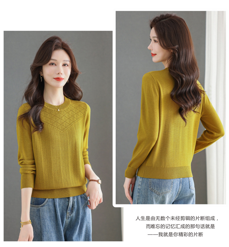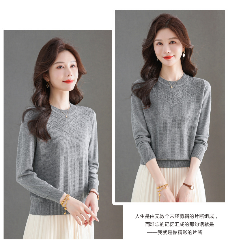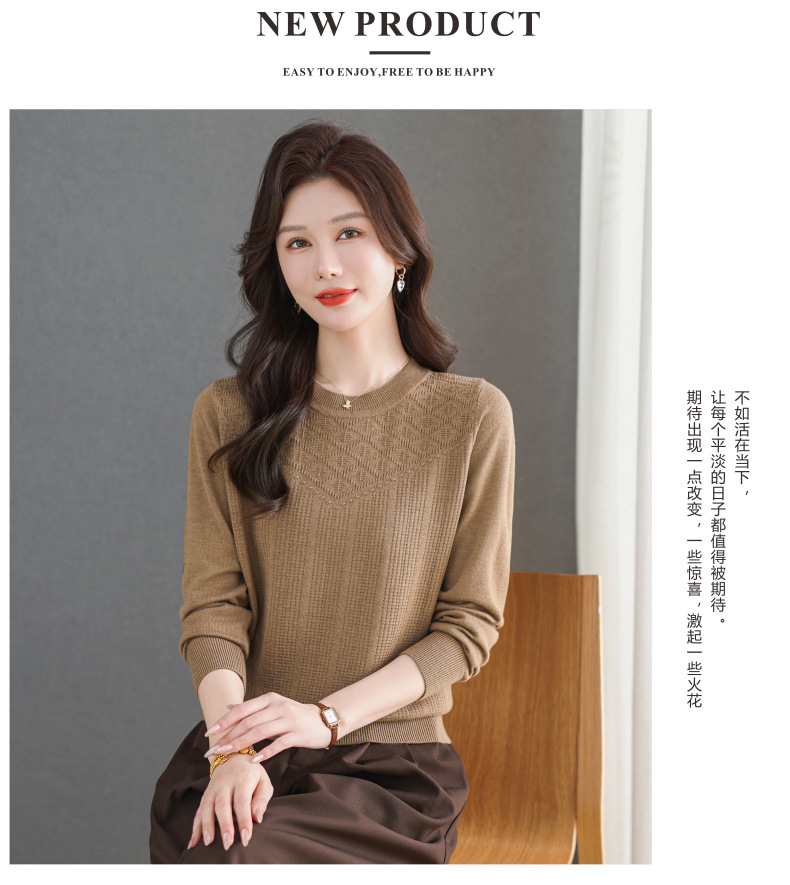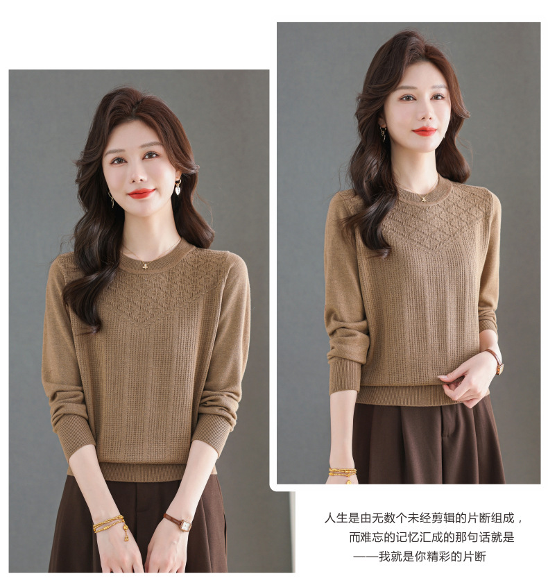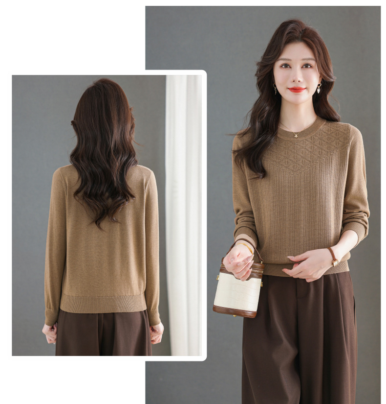 CC针织长袖上衣春秋2025新款复古风女宽松气质圆领毛衣打底衫