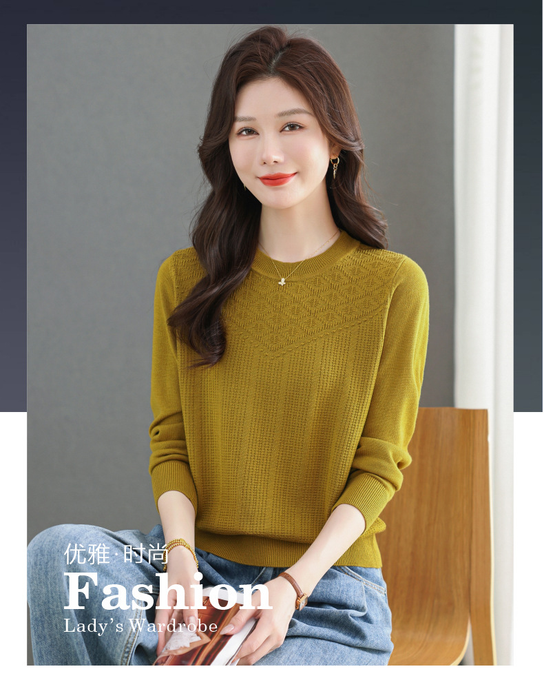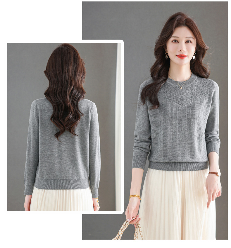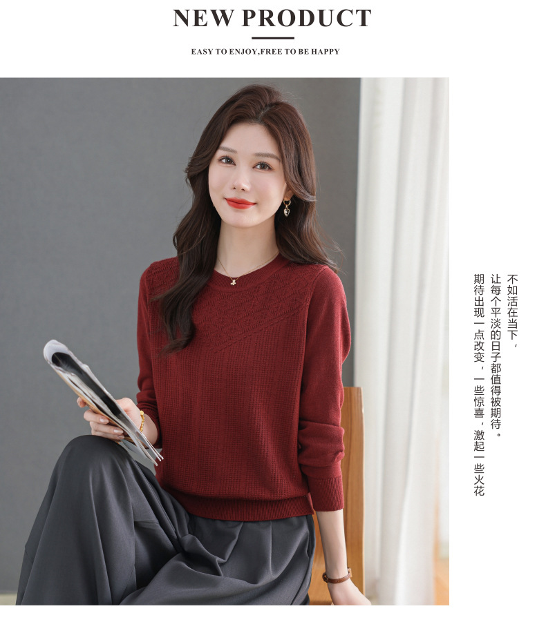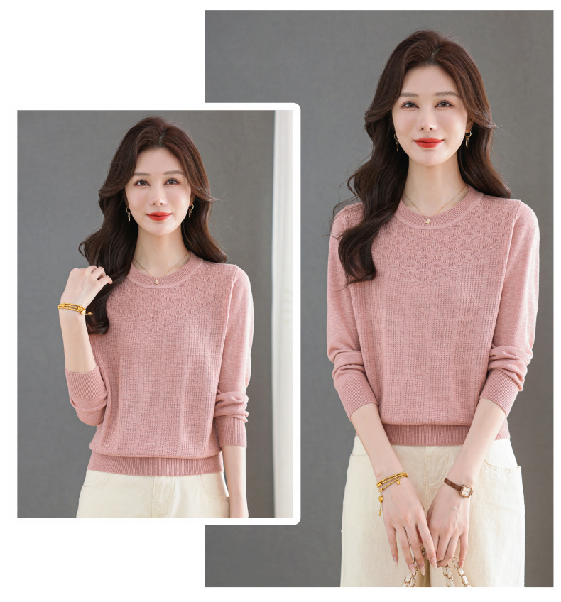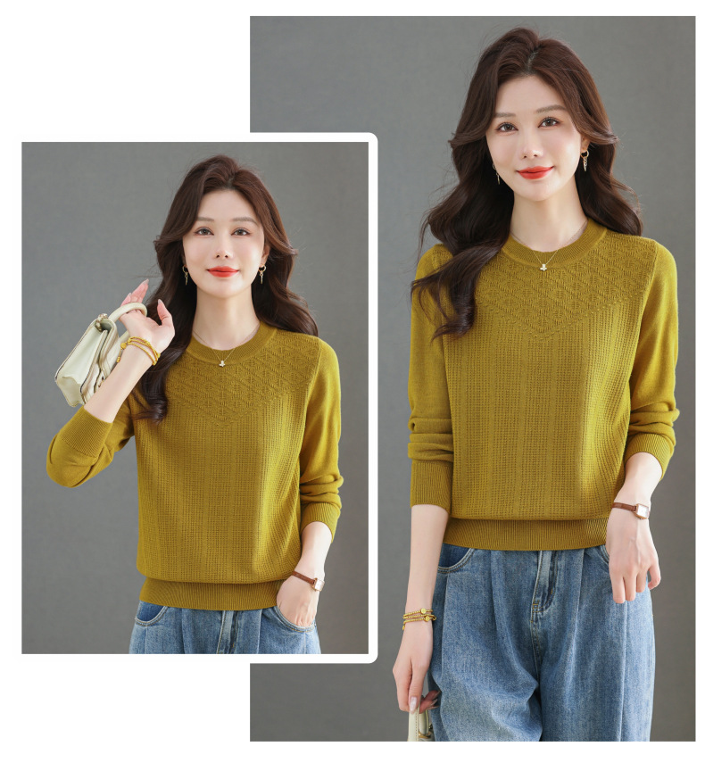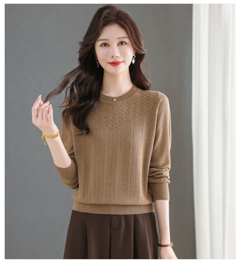 CC针织长袖上衣春秋2025新款复古风女宽松气质圆领毛衣打底衫