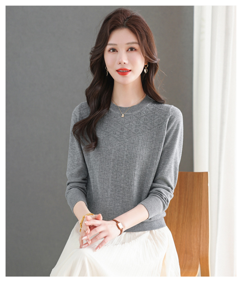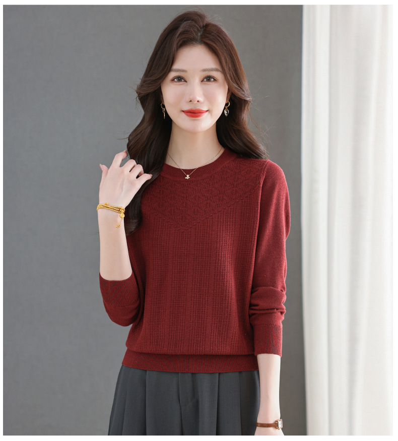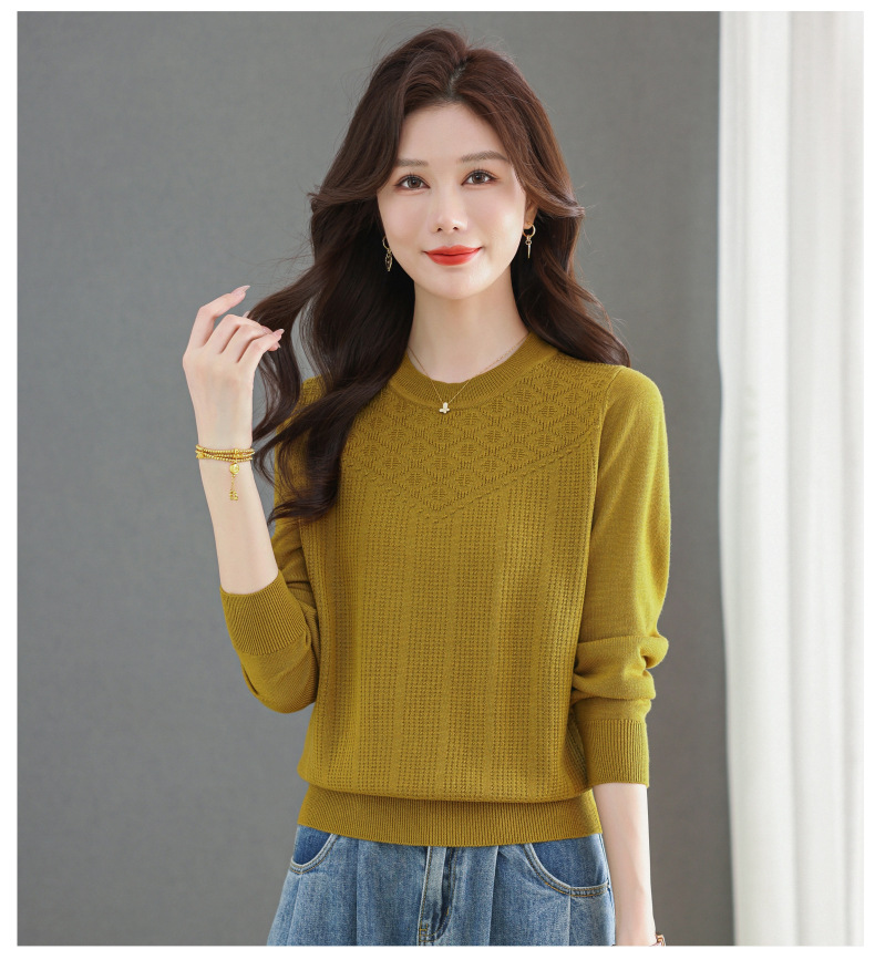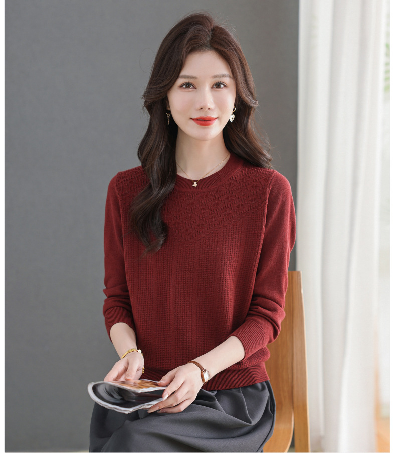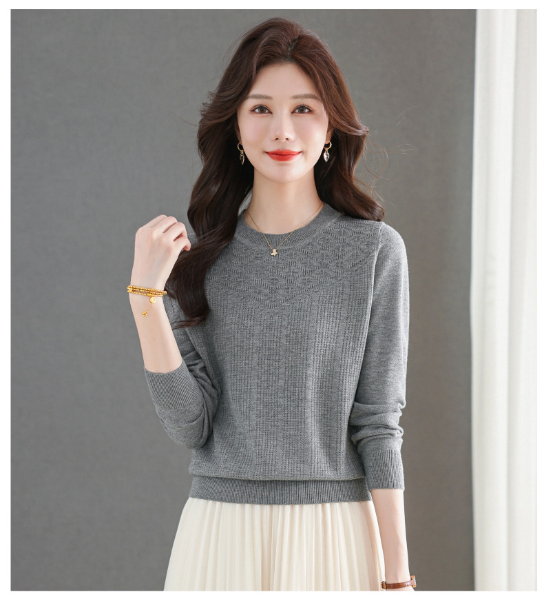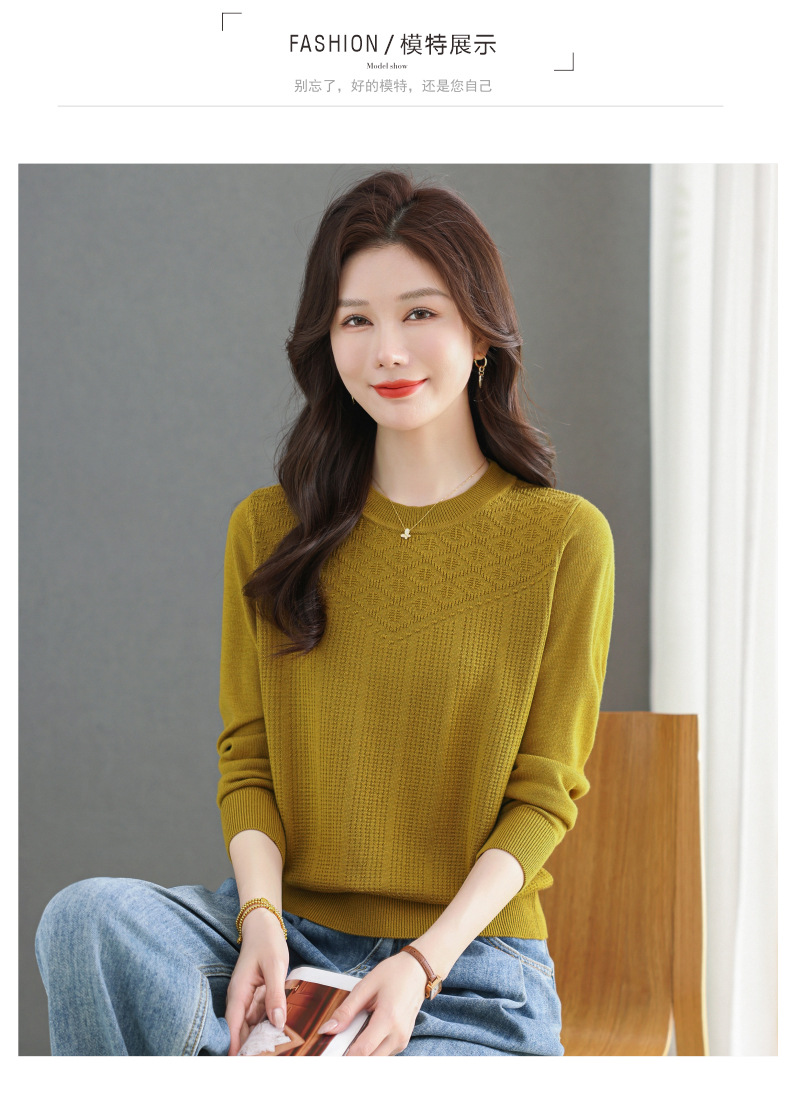CC针织长袖上衣春秋2025新款复古风女宽松气质圆领毛衣打底衫